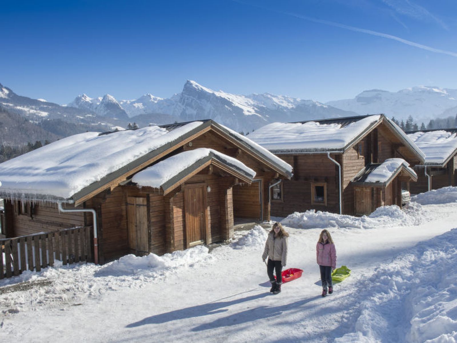 Residence "Bois de Champelle". 25 houses in the residence. 1.1 km from the centre of Morillon, on the outskirts, 4 km from the centre of Samoens, on a slope. For shared use: swimming pool, indoor pool heated (10 x 4 m, seasonal availability: 01.Jan. - 31.Dec.). In the complex: reception, WiFi, sauna, fitness room (all included), washing machine, tumble dryer (for shared use, extra). Shop 1.1 km. Mountain railway 1.6 km, ski bus stop 100 m. Please note: the photograph shows a typical example. The holiday properties may differ in living space, floorplan, equipment and furnishing.