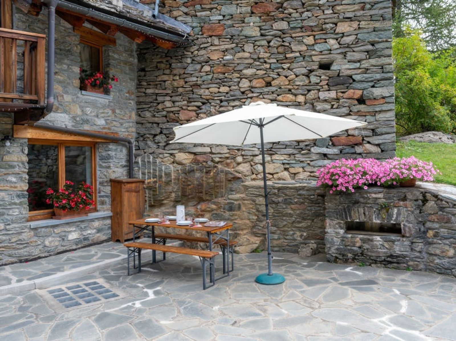 Planaval(Valgrisenche) 10 km from Arvier: Chalet "Chez Les Roset", 1'500 m a.s.l., 2 storeys, terraced, renovated. 6 km from the centre of Valgrisanche, in a quiet, sunny, elevated position, south-west facing position. Private: garden 300 m2 (not fenced), lawn for sunbathing. Table tennis, terrace, garden furniture. In the house: storage room for bicycles. Public parking 30 m. Grocery 6 km, bus stop 600 m. Nearby attractions: Aosta 25 km, Courmayeur Mont Blanc 33 km, Parco del Gran Paradiso 30 km. Please note: car recommended.