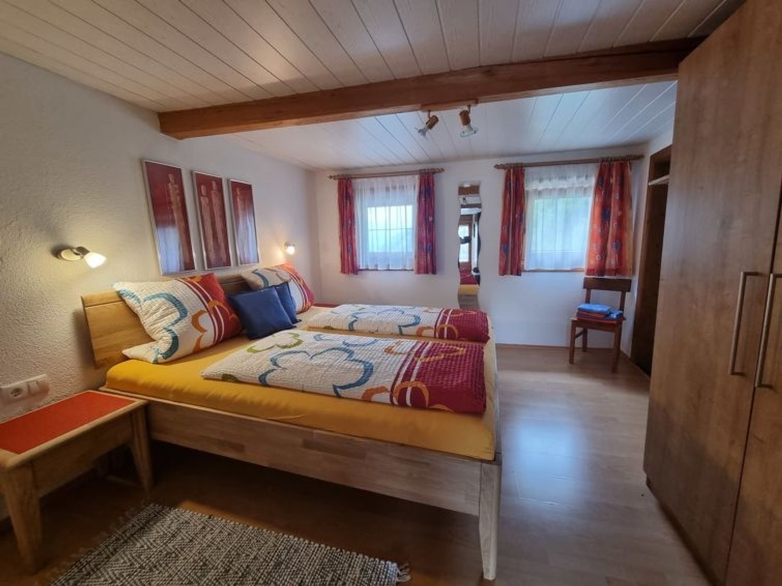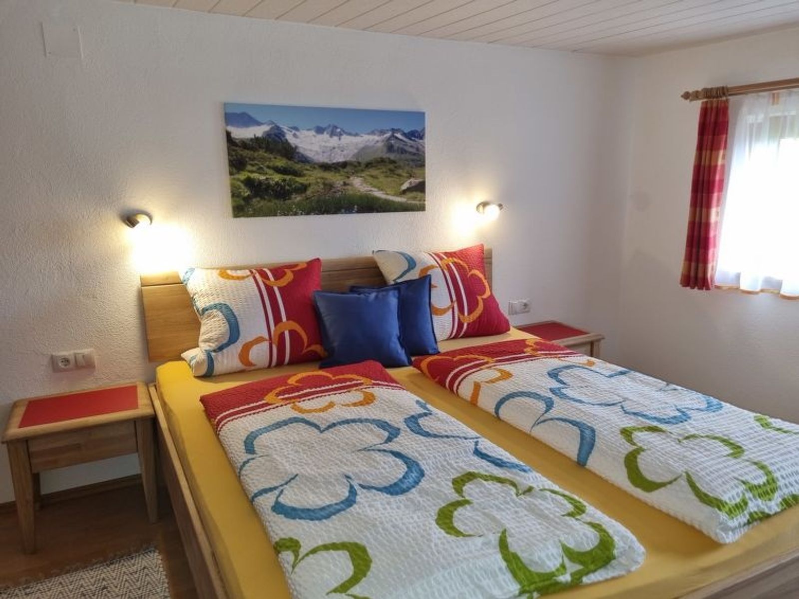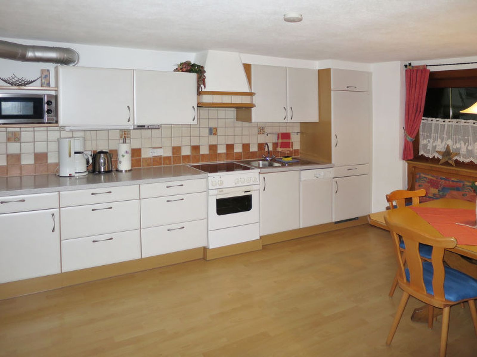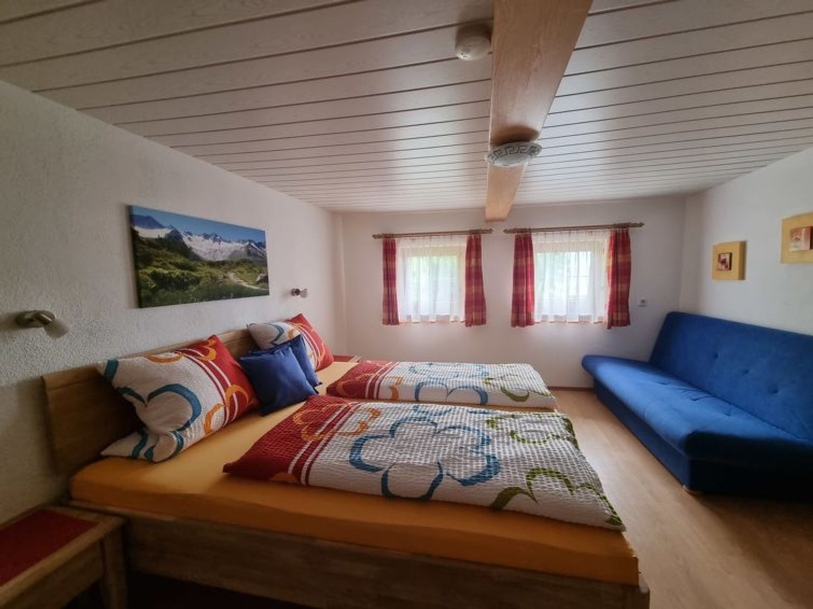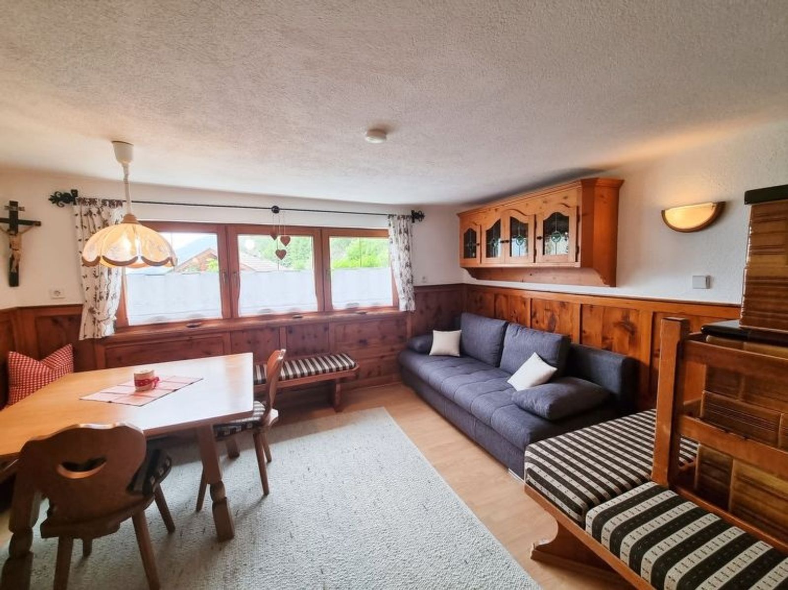 "Egger", 4-room house 110 m2 on 2 levels. Cosy furnishings: living/dining room with 1 sofabed, dining table, satellite TV and tiled stove. Kitchen (oven, dishwasher, 4 ceramic glass hob hotplates, toaster, kettle, microwave, electric coffee machine) with dining nook. Sep. WC. Upper floor: 1 double bedroom with shower and satellite TV. Walk-through room with 1 sofabed, 1 double bed and hand-basin. 1 small room with 1 french bed and shower. Exit to the balcony. Sep. WC. Balcony, terrace, patio. Terrace furniture, balcony furniture, barbecue, deck chairs (6). Marvellous panoramic view of the mountains. Facilities: washing machine, hair dryer. Internet (WiFi, free). E-charging station. Please note: non-smokers only. Private entrance, smoke alarm, fire extinguisher. When there are less than the maximum number of guests staying at the property, not all of the bedrooms will be available for use.