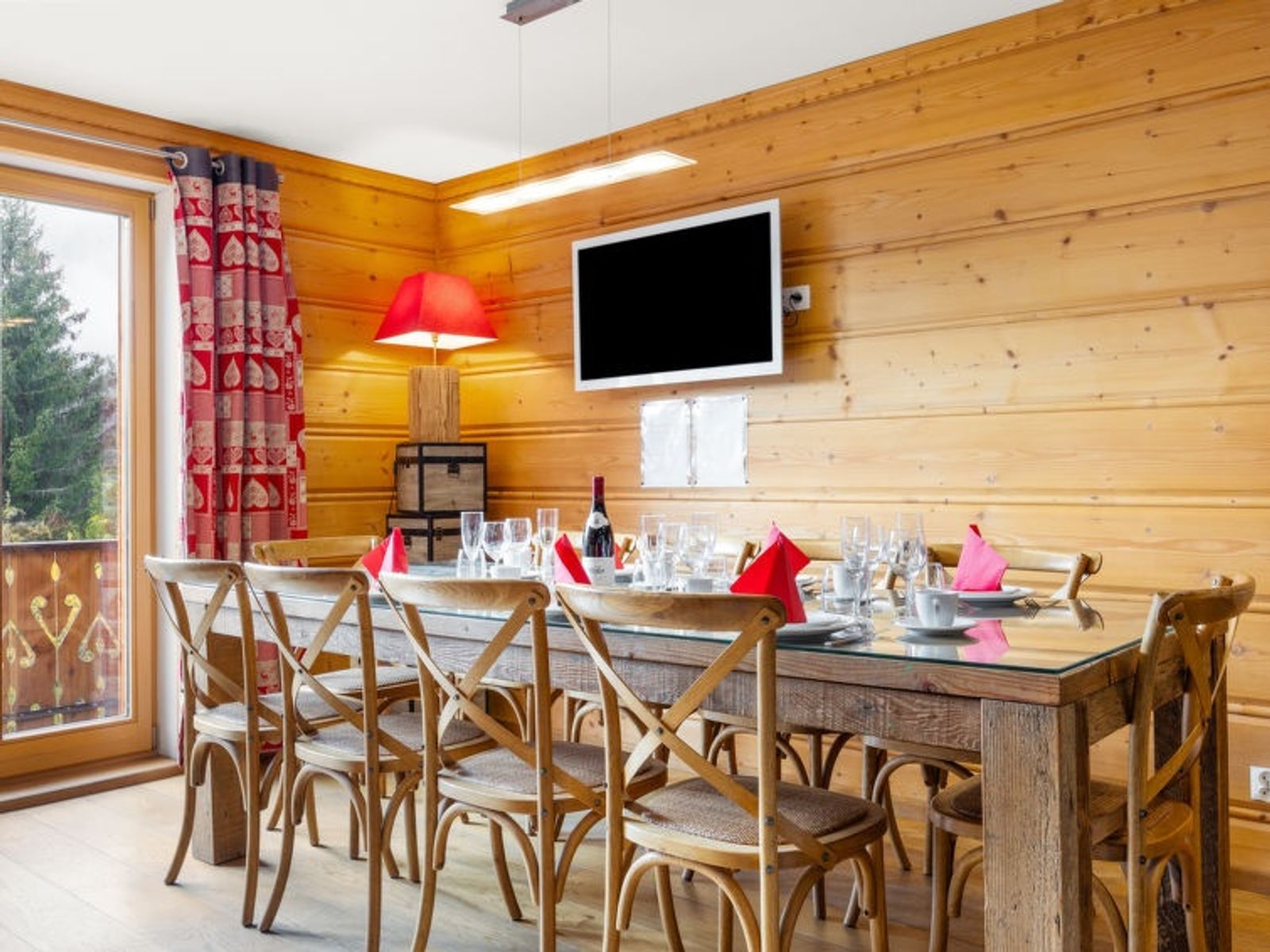 Very beautiful, cosy, rustic chalet "Fer à Cheval", 1'150 m a.s.l., 3 storeys. 3 apartments in the property. 800 m from the centre of Châtel, on the outskirts, 25 km from the centre of Monthey, 70 km from the centre of Genève, in a sunny position on a slope. In the house: storage room for skis, washing machine (for shared use, extra), ski boot dryer. Storeroom available. Shop 800 m, supermarket 1.5 km, bus stop 300 m, outdoor swimming pool 1.5 km. Ski lift 1 km, ski bus stop 300 m. Please note: the photograph shows a typical example.