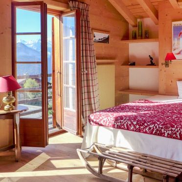 "Filaos", 6-room chalet 160 m2 on 3 levels. Partly renovated in 2015, comfortable and cosy furnishings: large living/dining room with cable TV. Exit to the terrace. Large, open kitchen (oven, dishwasher, 4 ceramic glass hob hotplates, microwave, electric coffee machine, Capsules for coffee machine (Nespesso) extra, raclette grill, fondue Set (chinoise, cheese)). On the lower ground floor: 1 large room with 1 bed (90 cm, length 200 cm), 1 double bed (2 x 90 cm, length 200 cm), shower/WC. Exit to the garden. 2 large rooms, each room with 1 double bed (2 x 90 cm, length 200 cm). Exit to the garden. Bathroom, shower/WC, sep. WC. Upper floor: 1 small room with 1 bed (90 cm, length 200 cm). 1 large room with 1 french bed (1 x 160 cm, length 200 cm). Exit to the balcony. Bathroom. Large terrace 40 m2, south facing position and, east facing position. Terrace furniture, balcony furniture, deck chairs. Marvellous panoramic view of the mountains and the valley. Facilities: washing machine, dryer, iron, baby cot. Internet (WiFi, free). Parking (3 cars). Please note: non-smoking house.