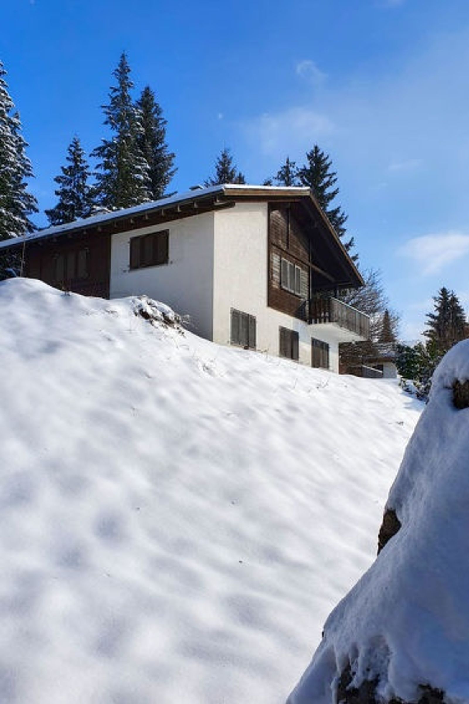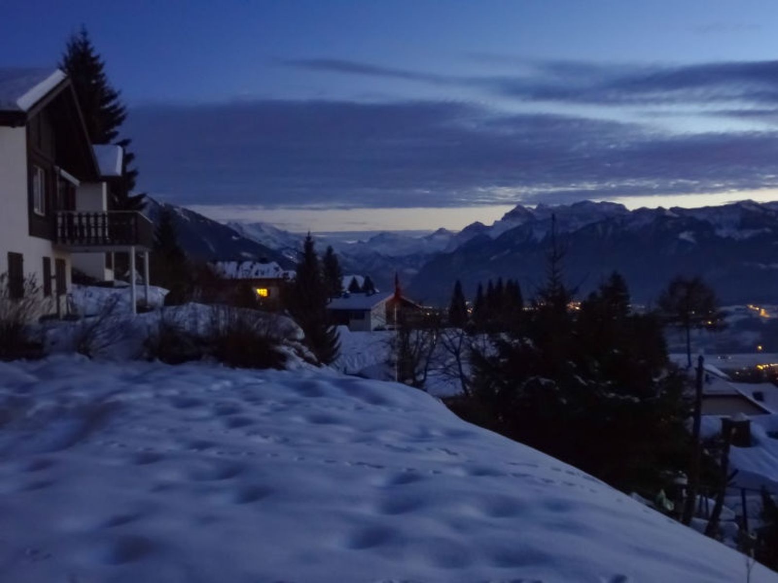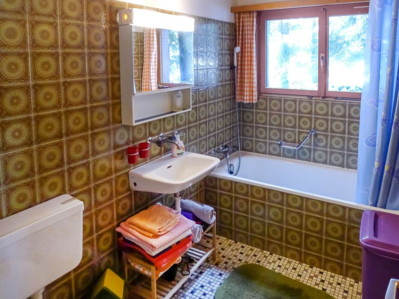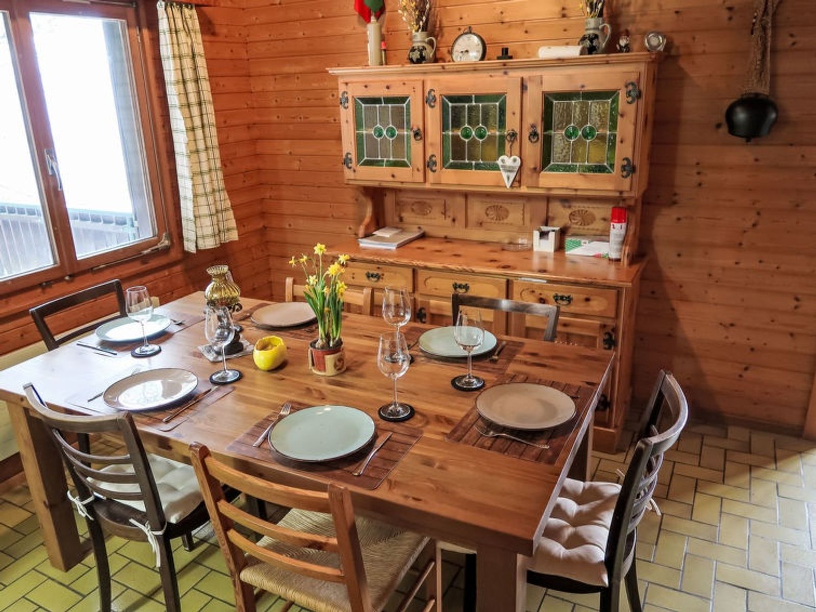 5-room chalet 130 m2 on 2 levels. Simple and cosy furnishings: living/dining room with open-hearth fireplace and cable TV (flat screen), radio and hi-fi system. Exit to the balcony. 1 double bedroom. Kitchen (oven, dishwasher, 4 ceramic glass hob hotplates, toaster, kettle, microwave, electric coffee machine, raclette grill, fondue Set (cheese)). Bath/WC. On the lower ground floor: 2 double bedrooms. 1 small room with 2 beds. Shower/WC. Balcony, patio. Terrace furniture, barbecue (portable), box-room. Beautiful view of the mountains, the valley, the countryside and the resort. Facilities: washing machine, dryer, hair dryer. Internet (WiFi, free). Parking (2 cars) at the house. Please note: non-smokers only. Maximum 3 pets/ dogs allowed.