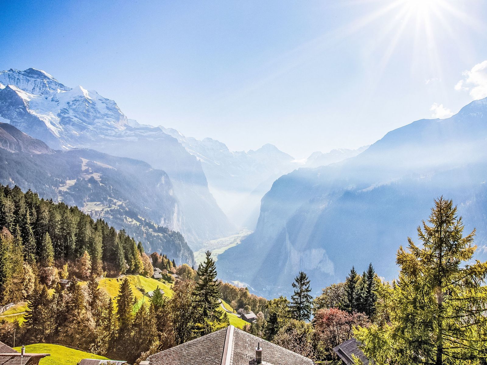 Wengen: Cosy chalet "Jungfrau an der Ledi", detached. Outside the resort, 1 km from the centre of Wengen, in the district Ledi, in a quiet, sunny position on a slope. For shared use: natural state property. Patio, garden furniture. Pre-arrival grocery service. Motor access to 50 m from the house. Shop 1 km, supermarket 1.2 km, restaurant 800 m, bakery 1 km, bus stop "Lauterbrunnen (by train)" 4.2 km, railway station "Wengen" 1.2 km. Cable car 1 km, skisport facilities 1 km, ski school 1 km, children's ski school 1 km. Well-known lakes can easily be reached: Thunersee 13 km, Brienzersee 13 km. Please note: car-free holiday complex. Arrival via mountain railway.