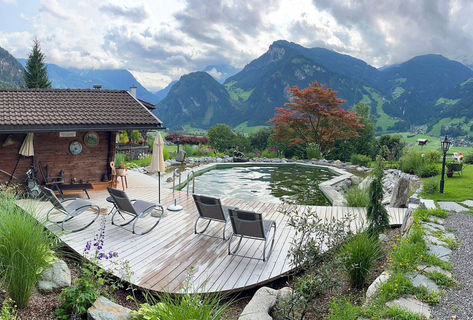 No matter if summer or winter, the Bergchalet Klausner Kuschelsuite is a perfect place for holidays. The view from the garden over the valley is fantastic. The modern apartment has sleeping places for two people. Near the swimming pond is a sauna. Pets are welcome.