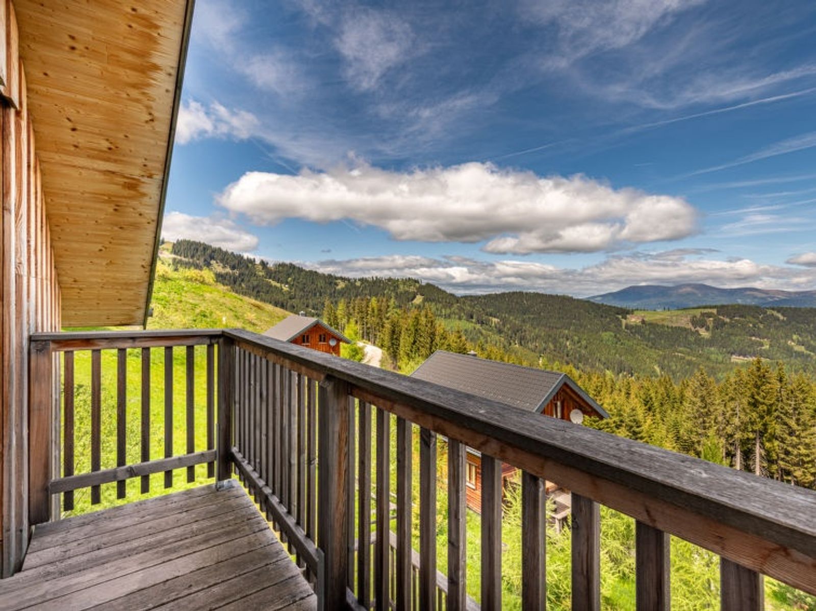 "Klippitzperle", 5-room chalet 115 m2. Bright, tasteful and wooden furniture furnishings: entrance hall. Open living room with satellite TV (flat screen). Exit to the terrace. Kitchen-/living room (oven, dishwasher, 4 ceramic glass hob hotplates, toaster, kettle, microwave, freezer, grill, electric coffee machine) with open-hearth fireplace and dining nook. Shower/WC. Top floor: 1 room with 1 double bed and satellite TV. Exit to the balcony. 1 room with 1 double bed. Exit to the balcony. 1 room with 1 double bed. 1 double bedroom with 2 beds. Bath/shower/WC, hydro massage shower, hydro massage bath. Gas heating. Wooden floors. Balcony. Balcony furniture, electric barbecue, deck chairs. Marvellous panoramic view of the mountains and the countryside. Facilities: washing machine, dryer, hair dryer. Internet (WiFi, free). Please note: suitable for families. Non-smoking house. Maximum 1 pet/ dog allowed. Fire extinguisher. Nespresso coffee machine available. In the village there is a vending kiosk for the first food and daily necessities. Due to the geographical location, WLAN is sometimes not available.