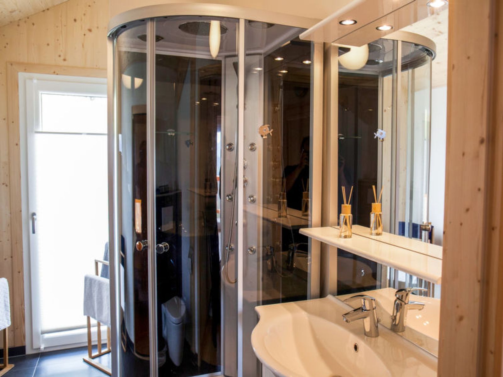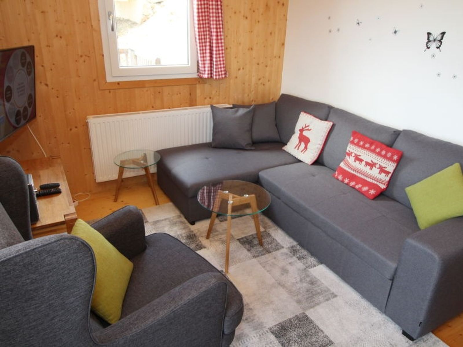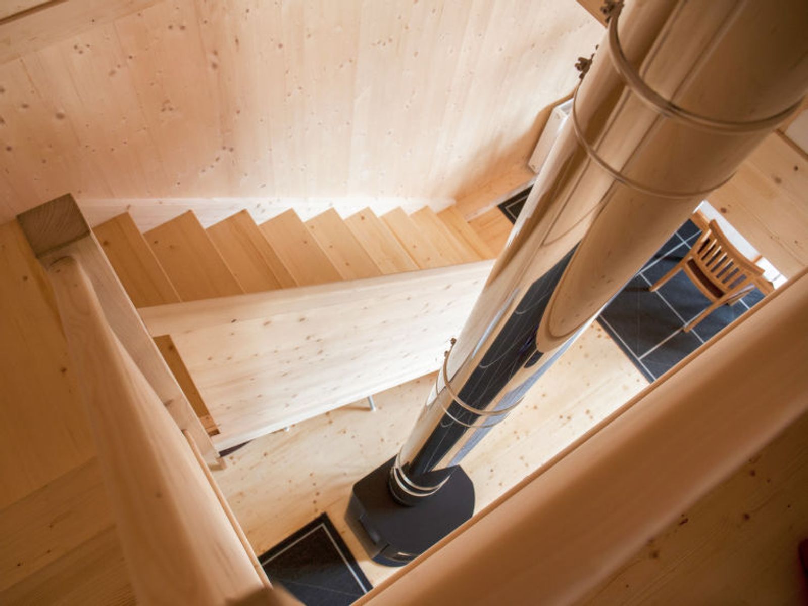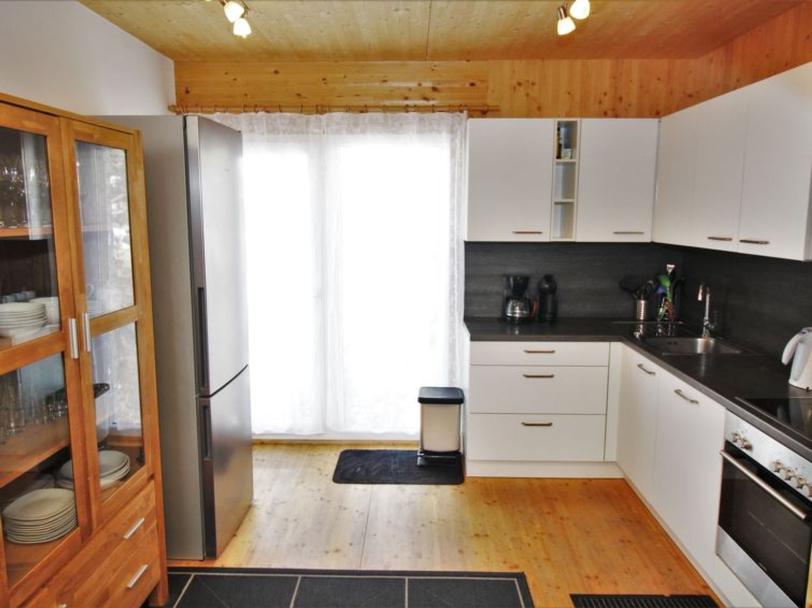 5-room chalet 100 m2. Partly with sloping ceilings, comfortable and cosy furnishings: entrance hall. Living/dining room with Scandinavian wood stove, dining table and satellite TV. Exit to the terrace. Open kitchen (oven, dishwasher, 4 ceramic glass hob hotplates, kettle, microwave, freezer, electric coffee machine, Capsules for coffee machine (Dolce Gusto) extra). Shower/WC, hydro massage shower. Top floor: 2 double bedrooms. Exit to the balcony. 1 room with 1 double bed. 1 room with 2 beds. Shower/WC, hydro massage shower, Sauna. Electric heating. Small balcony, terrace. Terrace furniture. Marvellous panoramic view of the mountains and the countryside. Facilities: children's high chair, baby cot for up to 2 year olds, hair dryer. Please note: non-smoking house. Fire extinguisher. Object AT9462.101.1 is right next to it and is almost identically equipped.