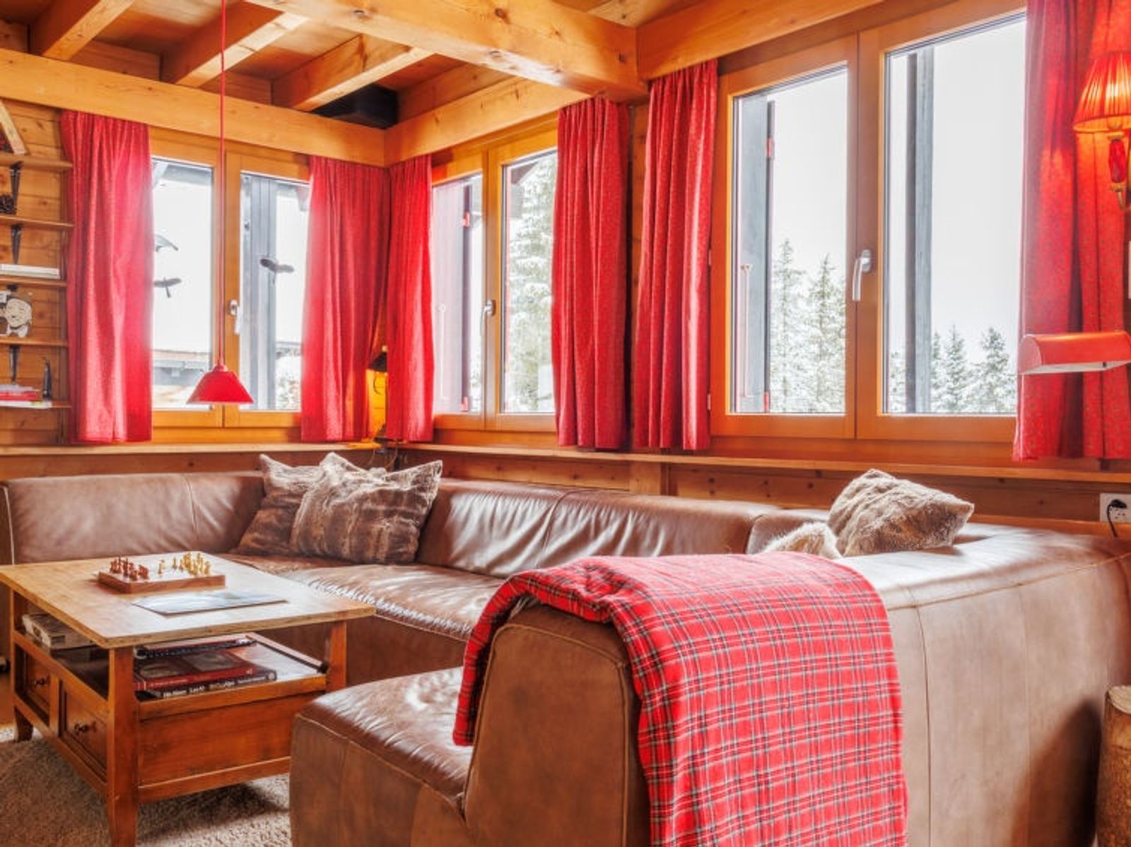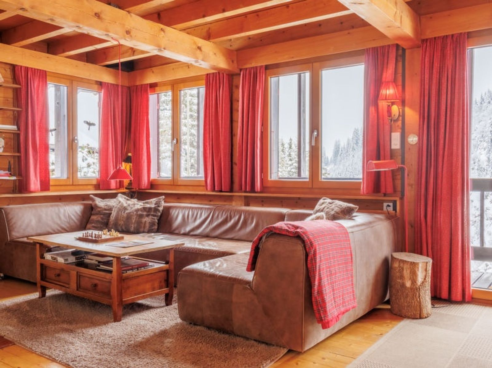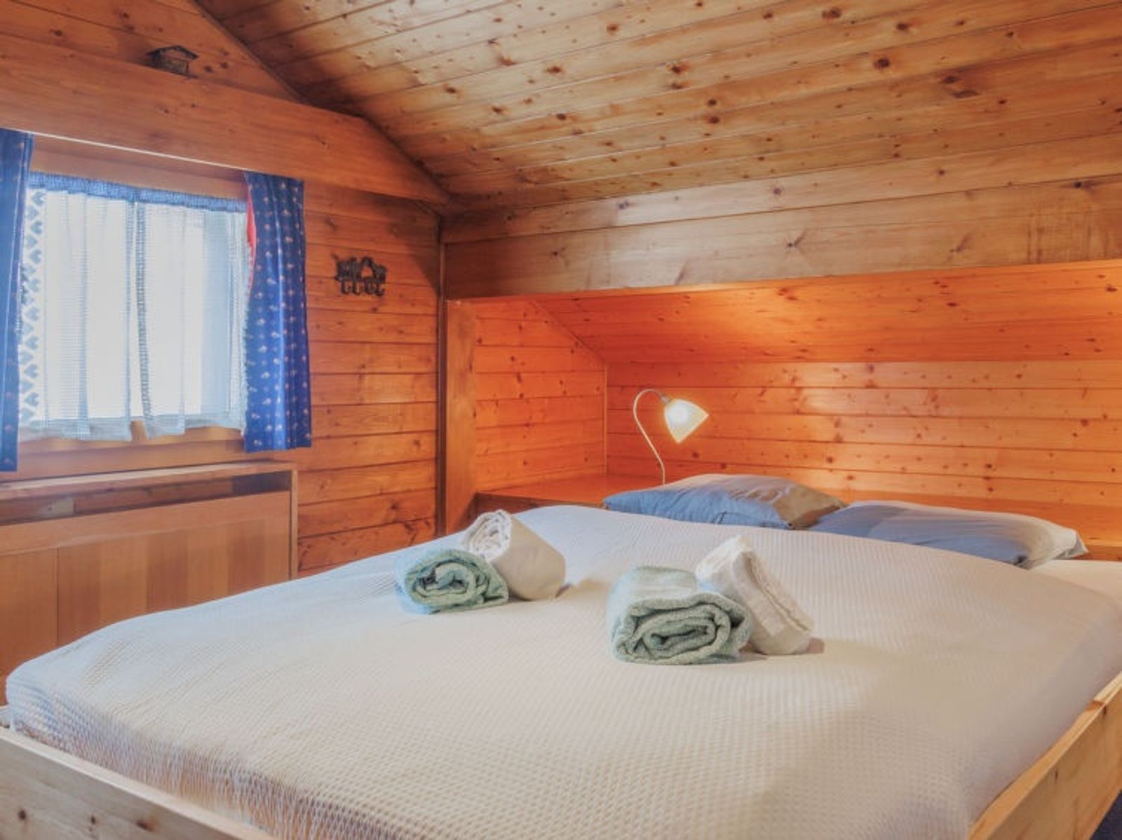 "Le Cyclamen", 5-room chalet 150 m2. Comfortable and cosy furnishings: living/dining room with open-hearth fireplace and TV. Exit to the balcony. 1 room with 2 beds (90 cm, length 200 cm). Small, open kitchen (oven, dishwasher, 4 ceramic glass hob hotplates, toaster, kettle, freezer, electric coffee machine, raclette grill, fondue Set (chinoise, cheese)). Bathroom, sep. WC. On the lower ground floor: shower, sep. WC, Sauna. Upper floor: 1 room with 1 double bed (160 cm, length 200 cm). 1 room with 1 bed (80 cm, length 160 cm), 1 double bed (160 cm, length 200 cm). Balcony, terrace. Barbecue (portable). Beautiful view of the mountains and the ski run. Facilities: iron, baby cot for up to 2 year olds, hair dryer. Internet (WiFi, free). Please note: non-smokers only. Ski-in/Ski-out / there are 4 sleds.