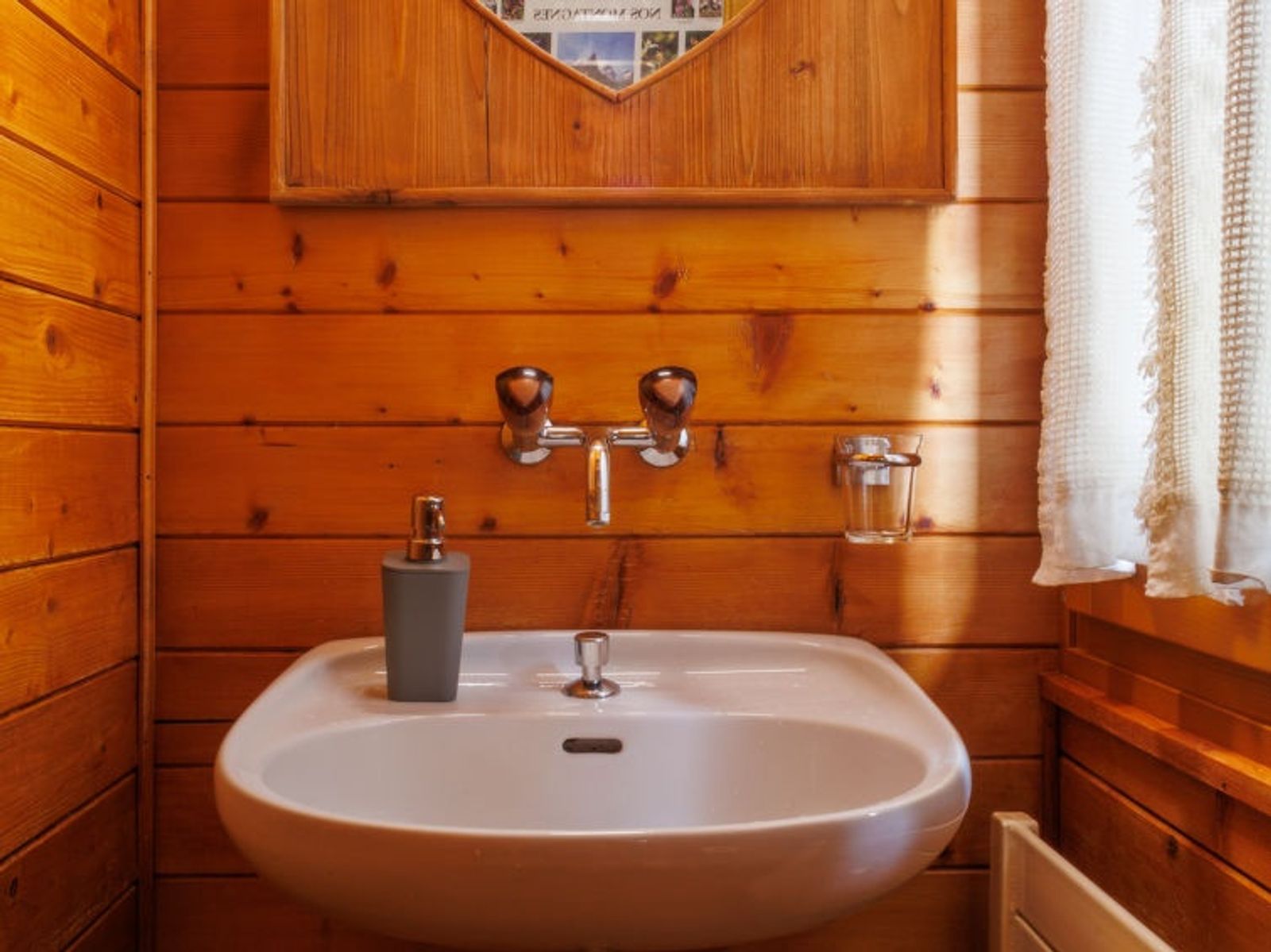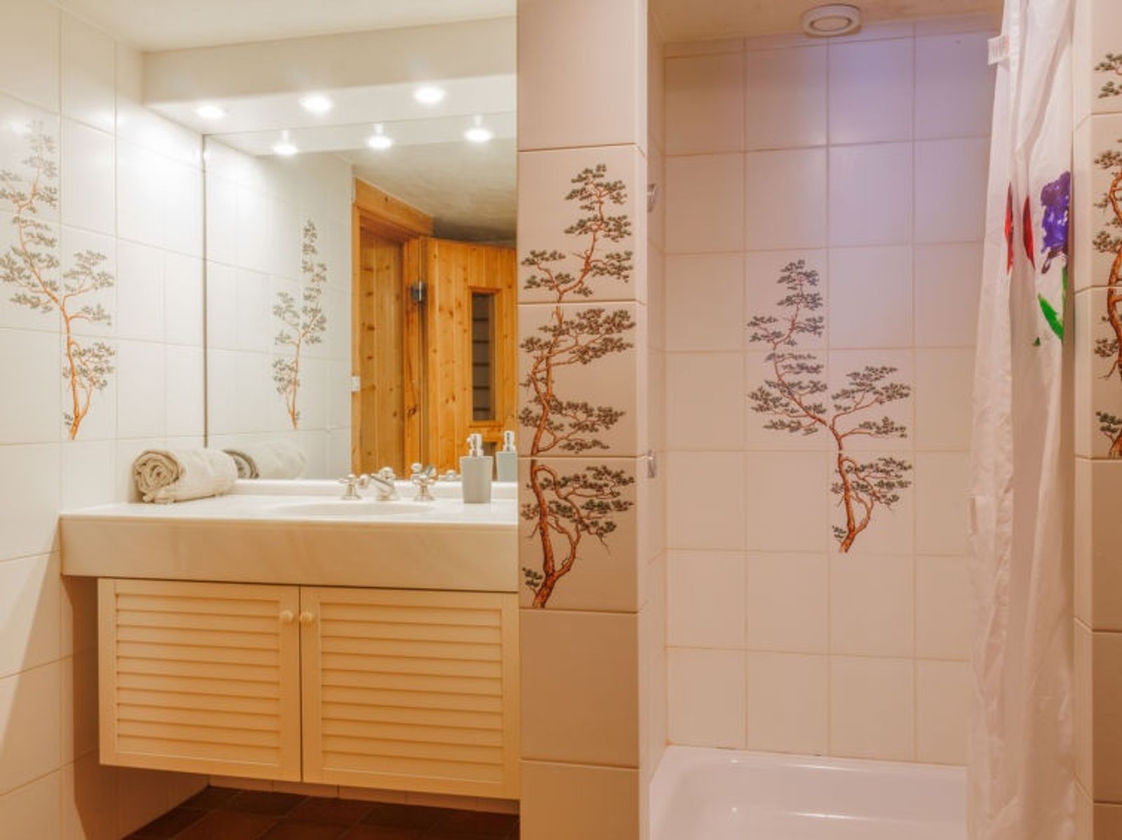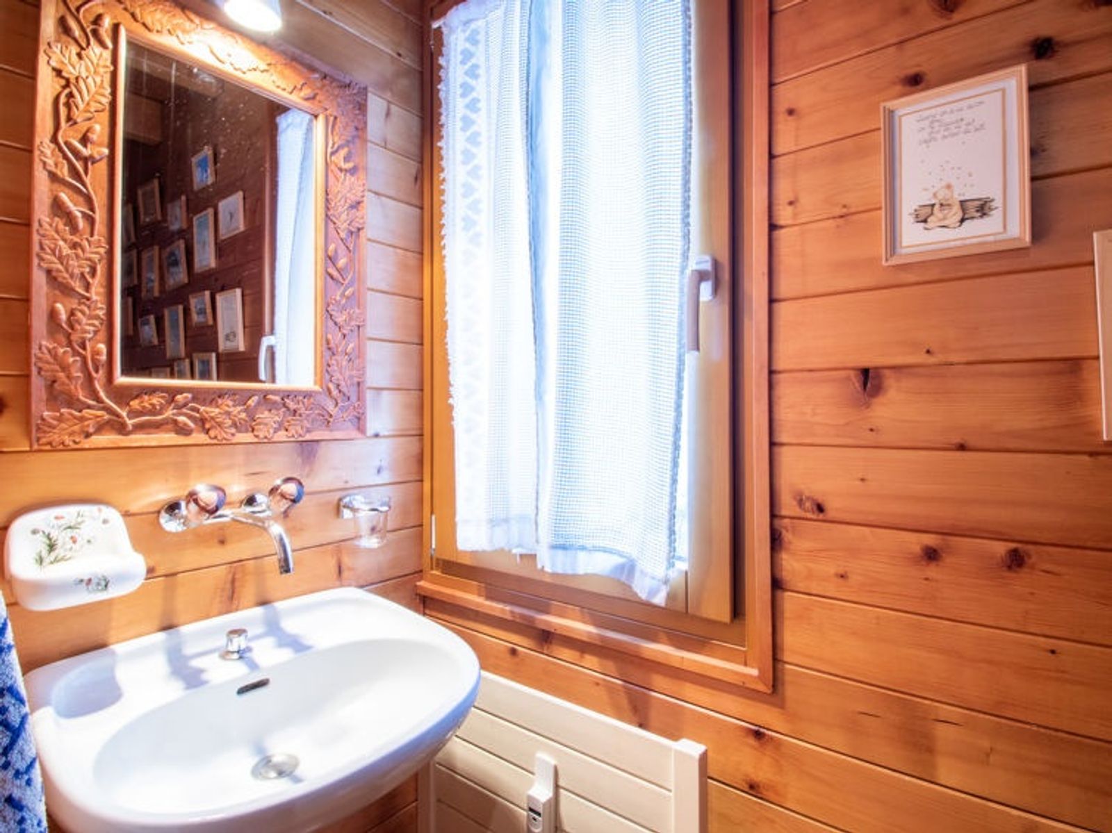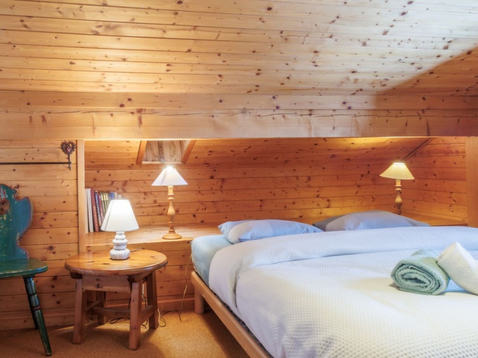 "Le Cyclamen", 5-room chalet 150 m2. Comfortable and cosy furnishings: living/dining room with open-hearth fireplace and TV. Exit to the balcony. 1 room with 2 beds (90 cm, length 200 cm). Small, open kitchen (oven, dishwasher, 4 ceramic glass hob hotplates, toaster, kettle, freezer, electric coffee machine, raclette grill, fondue Set (chinoise, cheese)). Bathroom, sep. WC. On the lower ground floor: shower, sep. WC, Sauna. Upper floor: 1 room with 1 double bed (160 cm, length 200 cm). 1 room with 1 bed (80 cm, length 160 cm), 1 double bed (160 cm, length 200 cm). Balcony, terrace. Barbecue (portable). Beautiful view of the mountains and the ski run. Facilities: iron, baby cot for up to 2 year olds, hair dryer. Internet (WiFi, free). Please note: non-smokers only. Ski-in/Ski-out / there are 4 sleds.