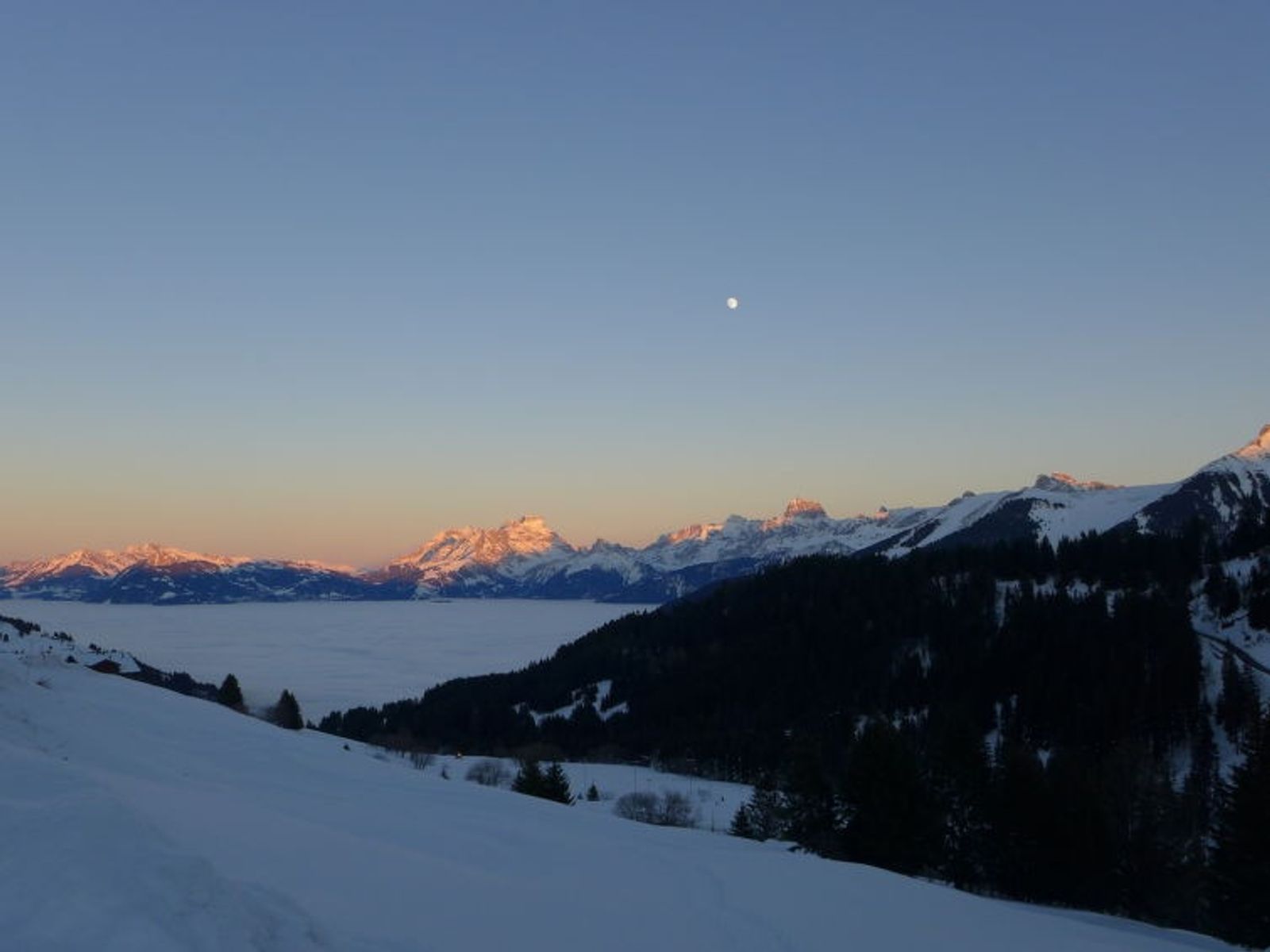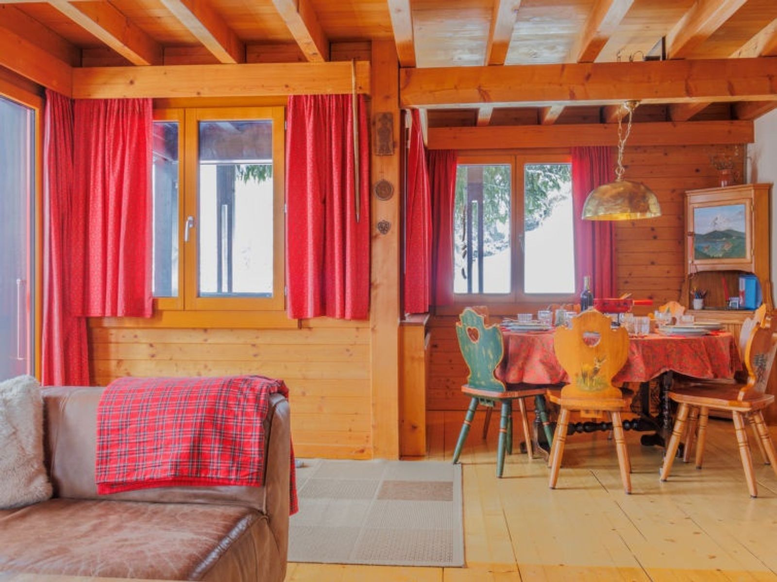 Chalet "Le Cyclamen", 3 storeys, surrounded by meadows. In the resort, in a quiet, sunny position on a slope, directly by the skiing area, in a cul-de-sac. Private: table tennis. 4x4 car recommended in winter. 30 m footpath to the house. Parking at 30 m. Grocery 150 m, supermarket 7 km, shopping centre 16 km, restaurant 30 m, bus stop "Champoussin village" 95 m, railway station "Val d'Illiez gare" 6.9 km. Ski lift 50 m, ski rental 160 m. Well-known ski regions can easily be reached: Portes du Soleil. Please note: car recommended. In case of good snow conditions, the house is accessible on skis.
