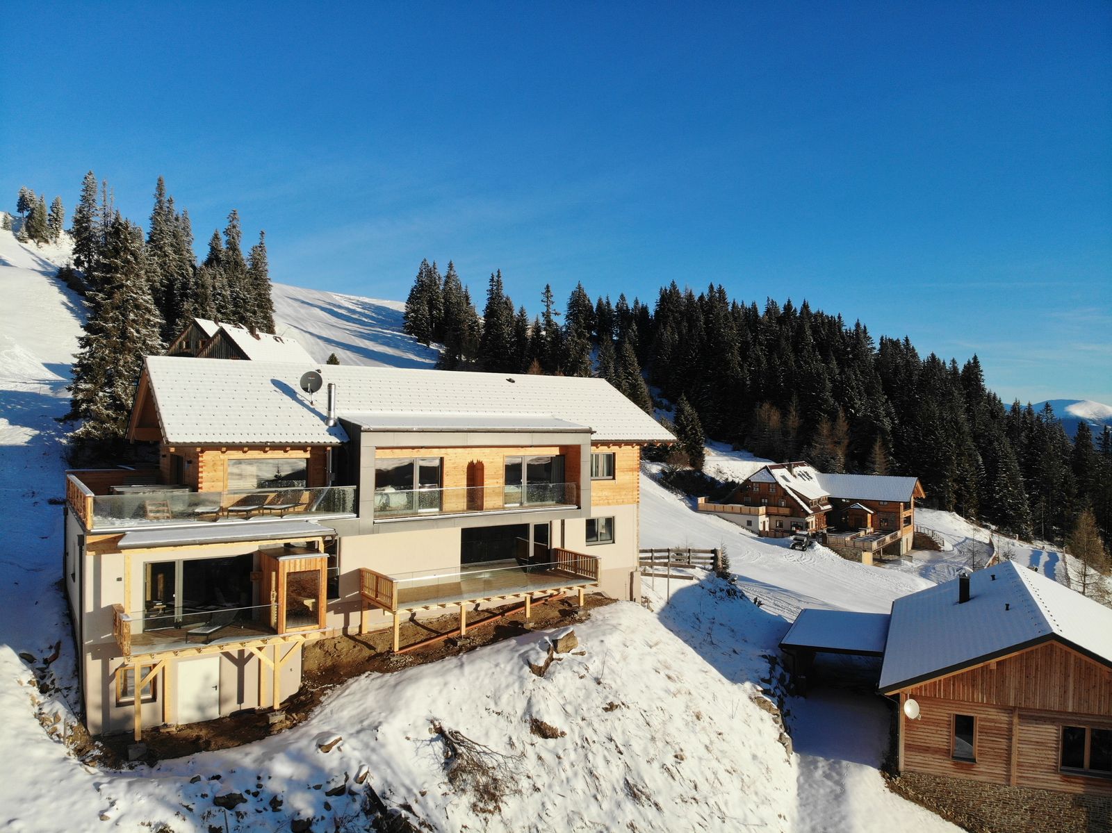 The Chalet M is located directly on the ski slope of the Klippitztörl ski area. Our guests can strap on their skis right outside the chalet door and off they go. No long commutes, no searching for parking, and no waiting in line at the ski lift.