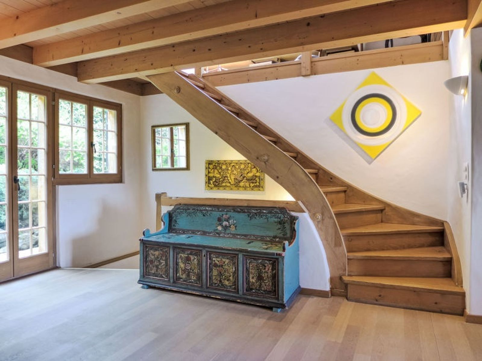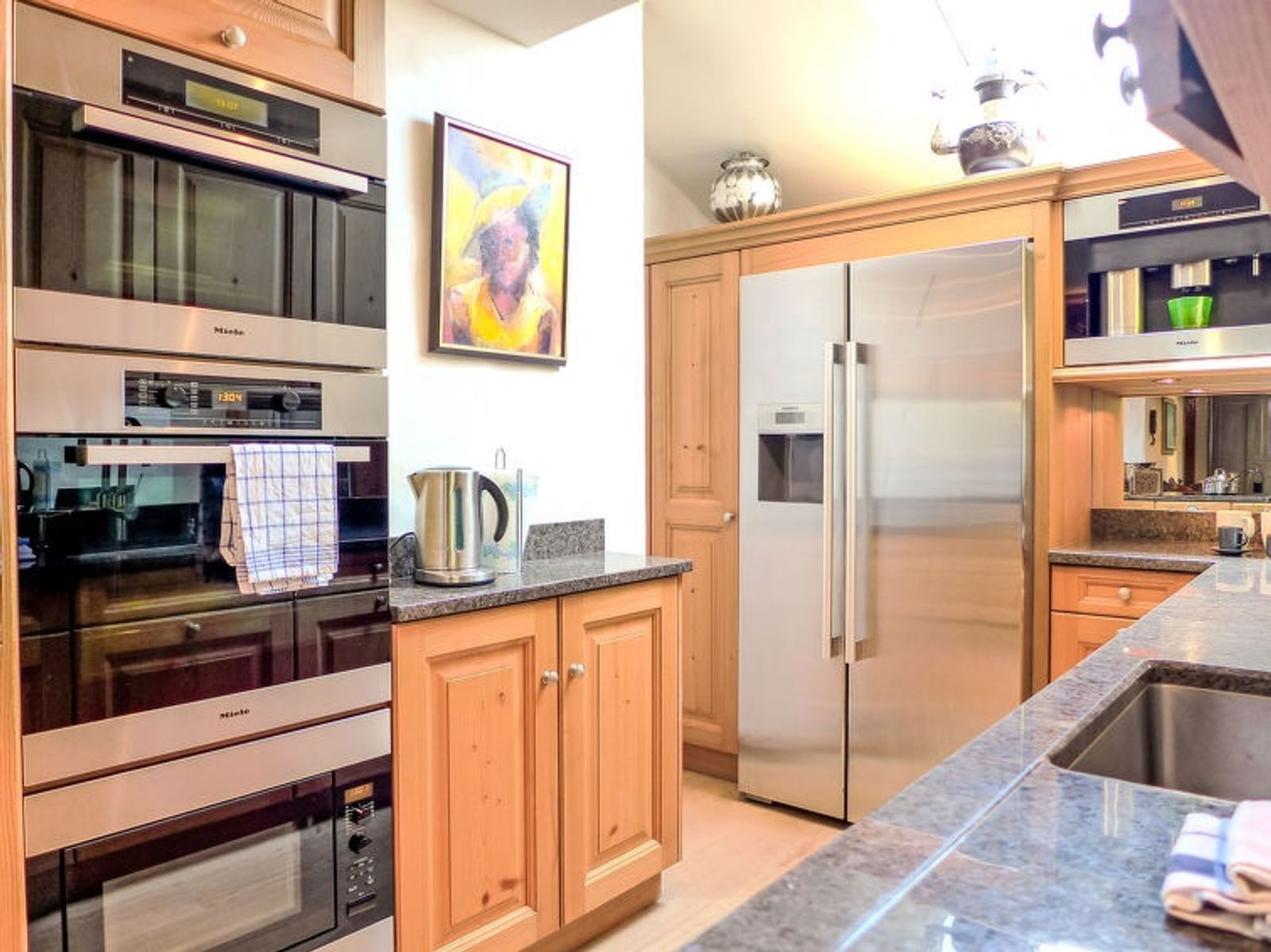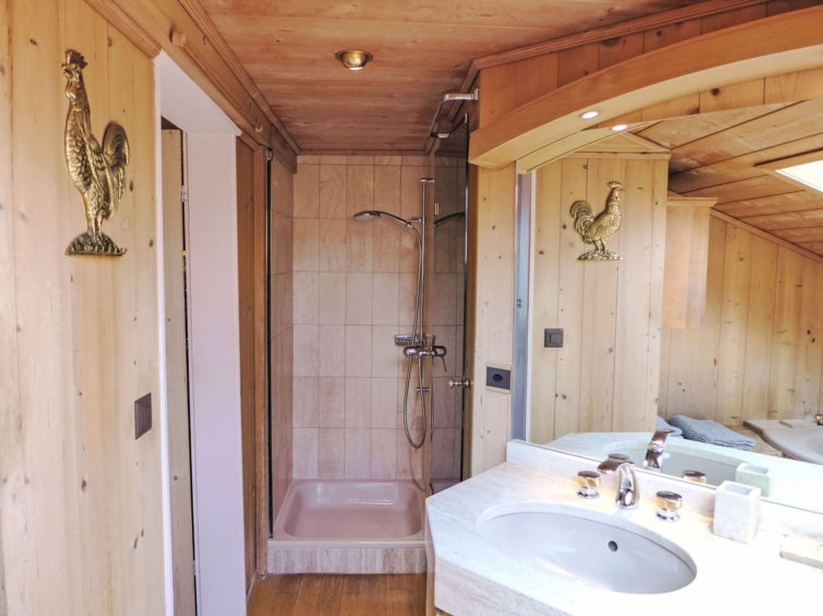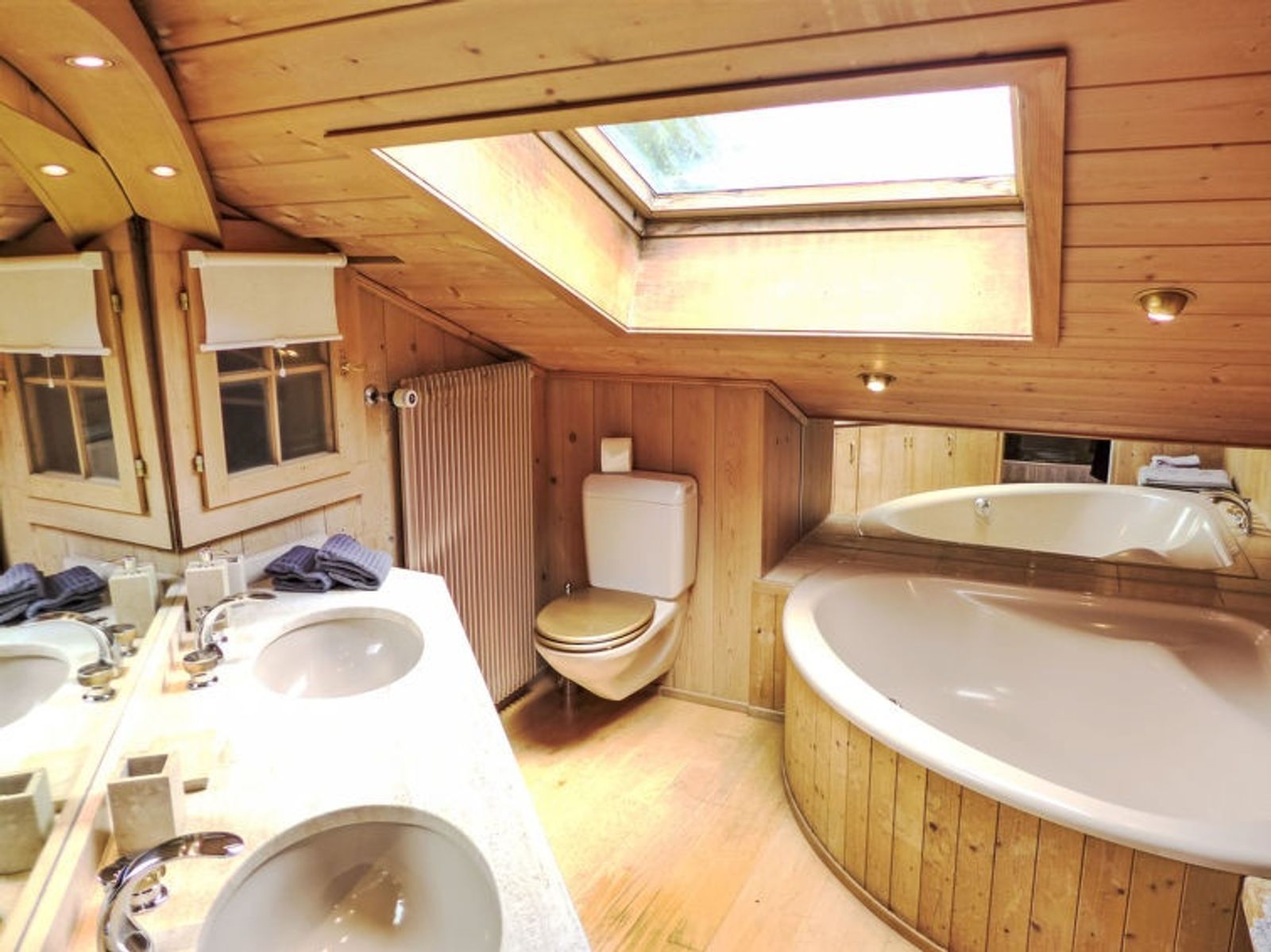 7-room chalet 280 m2 on 3 levels. Spacious and bright, very comfortable and tasteful furnishings: open large living room with open-hearth fireplace. Exit to the balcony. Open dining room with dining table. Exit to the terrace. 1 room with 1 double bed (160 cm, length 200 cm). 1 room with 1 french bed (140 cm, length 200 cm). Large, open kitchen (oven, dishwasher, 4 induction hot plates, toaster, kettle, microwave, freezer, electric coffee machine, steamer, raclette grill, cooking island, fondue Set (cheese)). Shower/WC. On the lower ground floor: 1 large room with Dressing room with 1 double bed (160 cm, length 200 cm), shower/WC and TV. Exit to the garden. 1 room with 1 double bed (160 cm, length 200 cm), bath/WC and TV. Exit to the garden. 1 small room, without window with 1 french bed (140 cm, length 200 cm), shower/WC and TV. Top floor: open gallery. 1 large room with Dressing room with 1 double bed (160 cm, length 200 cm), bath/shower/WC and TV. Exit to the balcony. Large terrace, patio. Terrace furniture. Marvellous panoramic view of the mountains, the ski run and the countryside. Facilities: washing machine, dryer, iron, hair dryer, logs (extra). Internet (WiFi, free). Please note: non-smoking house. Maximum 1 pet/ dog allowed. Smoke alarm, fire extinguisher. When there are less than the maximum number of guests staying at the property, not all of the housing units will be available for use.