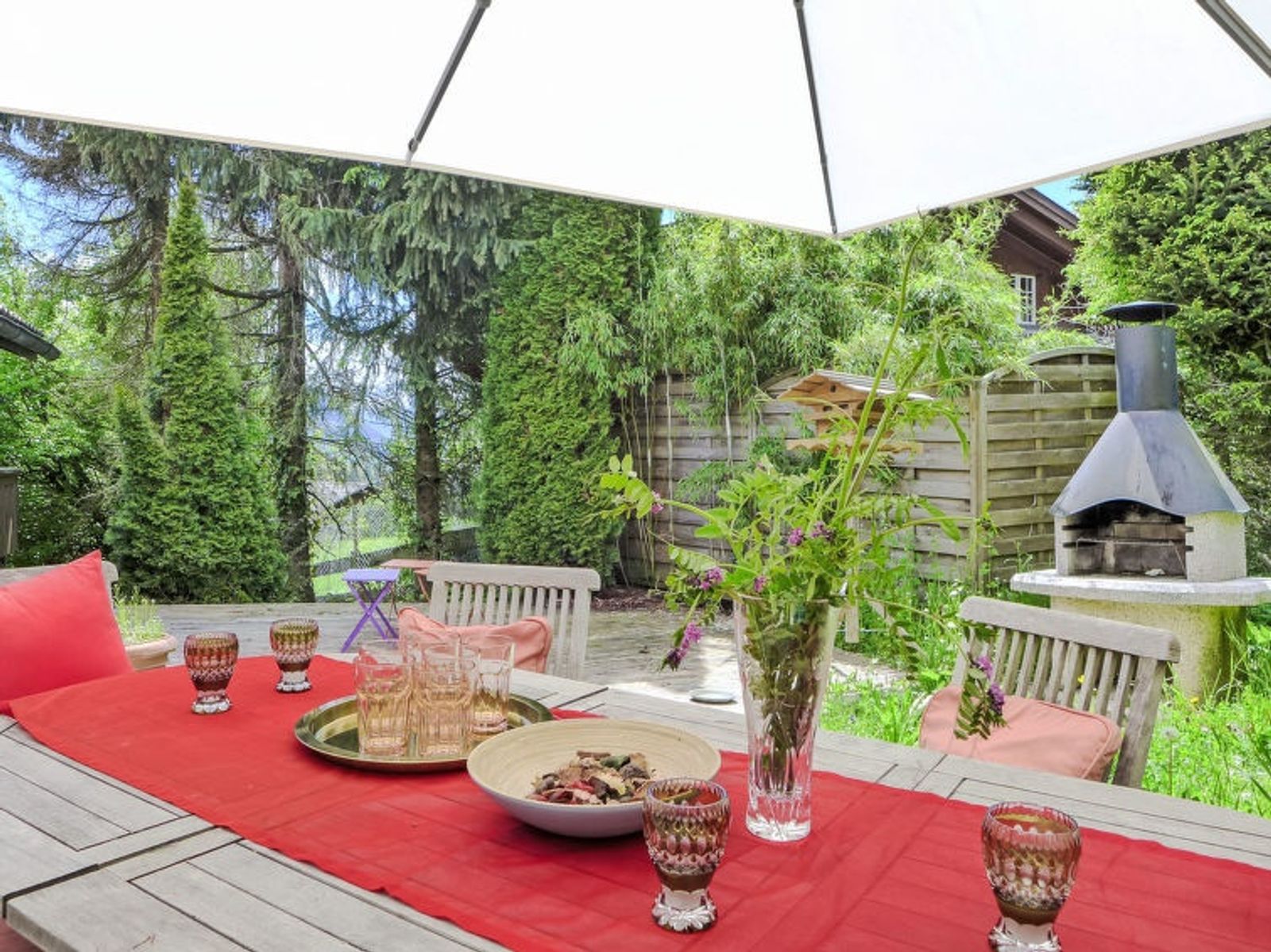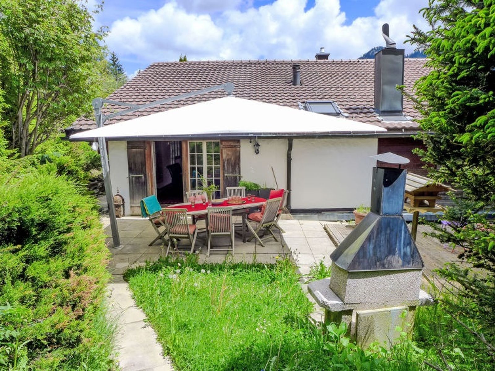 Cosy, comfortable single-family house "Chalet Rebhalde", 3 storeys, detached. In a quiet, sunny position on a slope. Private: large garden (fenced) with lawn and wildlife garden. Patio, terrace, garden furniture. In the house: central heating system, washing machine, tumble dryer, drying room. Narrow motor access to the house. Parking (for 3 cars) at the house. Grocery 600 m, supermarket 8 km, restaurant 600 m, bakery 800 m, bus stop "Schönried, Bahnhof" 600 m, railway station "Schönried" 600 m.