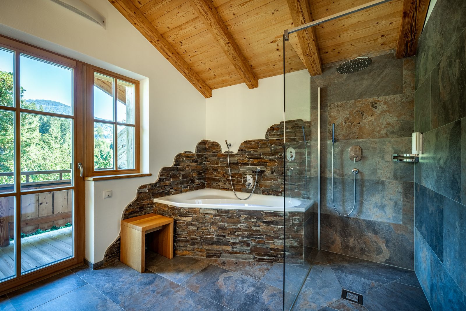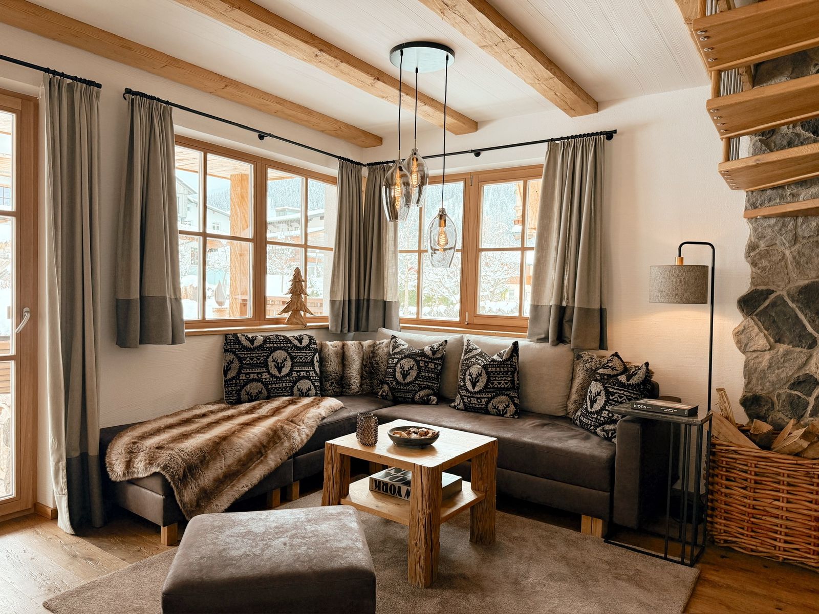 These two luxury chalets were newly built using local materials and traditional craftsmanship. The chalets are equipped with the best materials such as linen, loden, wood and clay and ensure an exceptional ambience. In winter, the skiing fun starts right on your doorstep; the “Flying Mozart” ski entrance is just 300 meters away. You can relax in your own wellness area with sauna, steam shower and outdoor bathtub. In summer, you can use the in-house swimming pond to cool off. Chalets are located directly in the town of Wagrain, where you will find numerous cafés, restaurants, bars and supermarkets. The chalets can be reached by car all year round. There are parking spaces directly at the chalets. Pets are welcome.