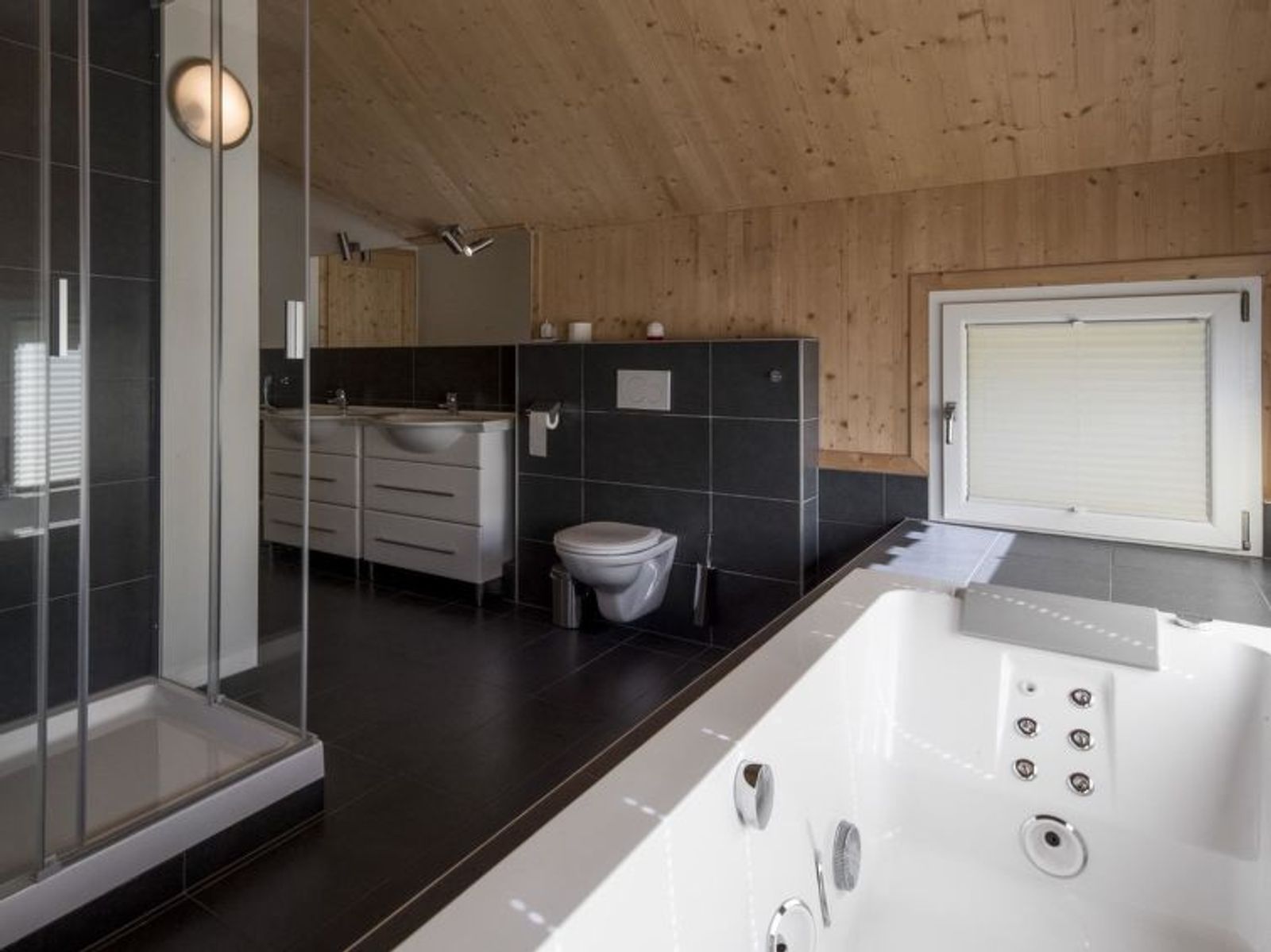 "Sonneck mit OutdoorSprudelbad 10P", 5-room chalet 115 m2. Spacious, modern and tasteful furnishings: living/dining room with dining nook and satellite TV (flat screen), gas heater. 3 double bedrooms. 1 room with 1 x 2 bunk beds, 1 double bed. Open kitchen (oven, dishwasher, 4 ceramic glass hob hotplates, microwave, electric coffee machine). 3 showers/WC, sep. WC, hydro massage bath, Sauna. Terrace. Terrace furniture. Very beautiful view of the countryside. Facilities: Internet (WiFi, free). Please note: non-smokers only. The property is one of a type of property or apartment. Different house equipment possible: either Finnish sauna or infrared cabin.