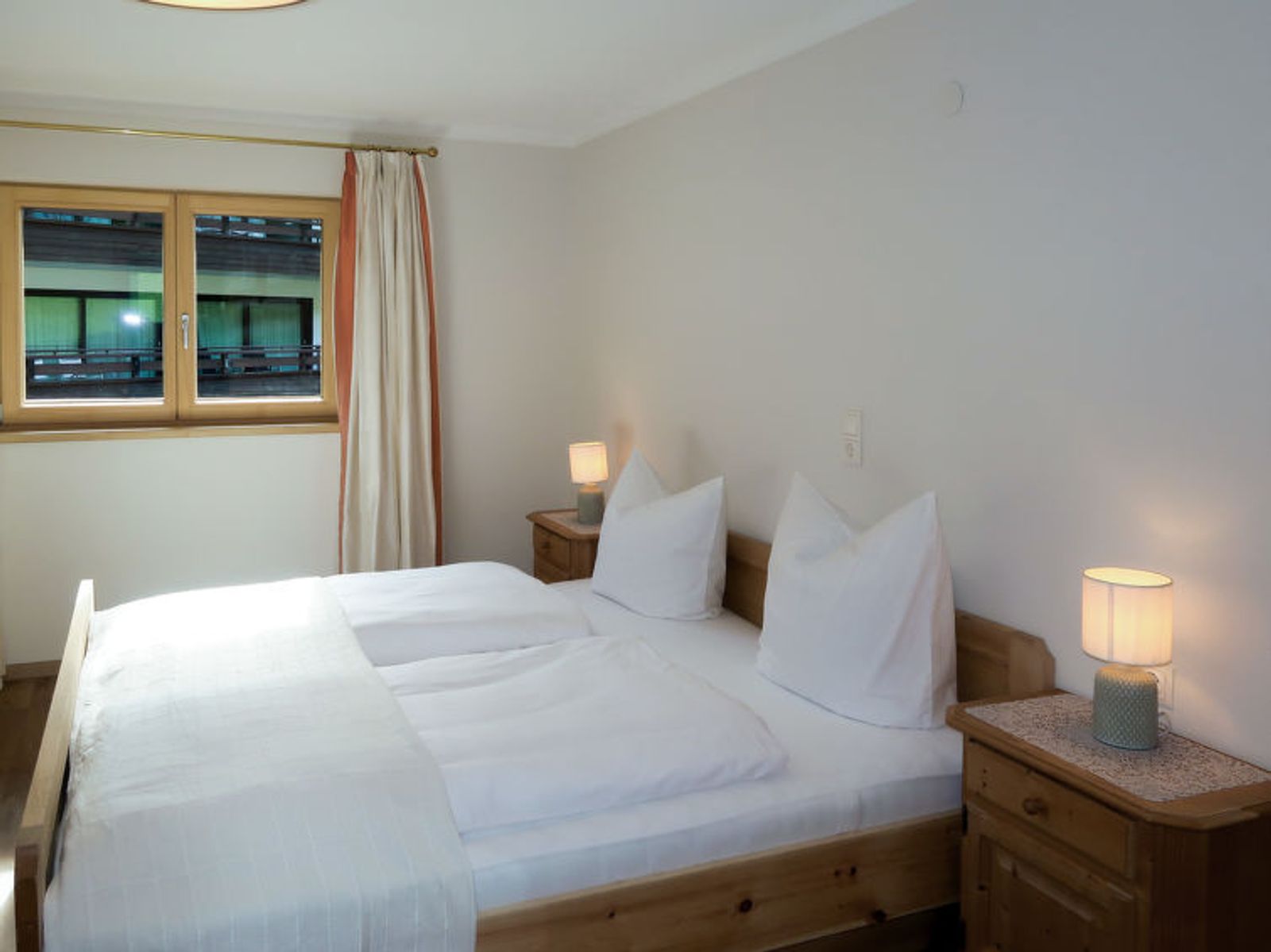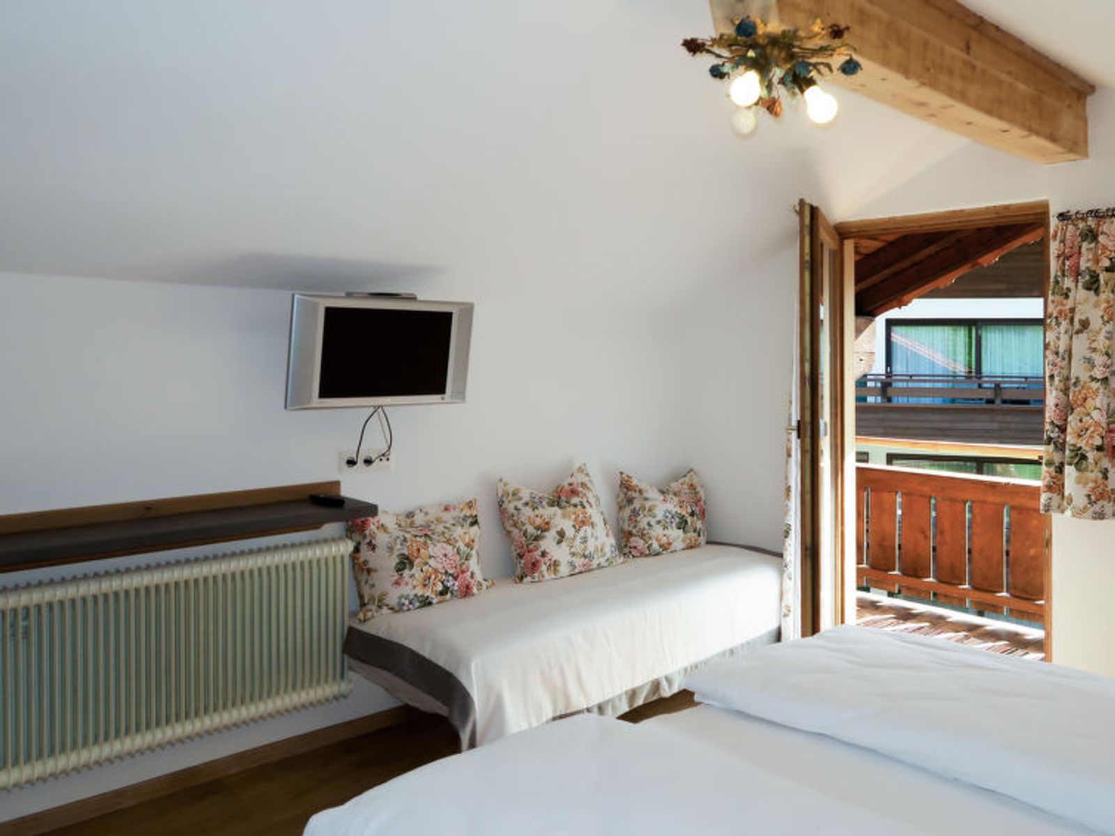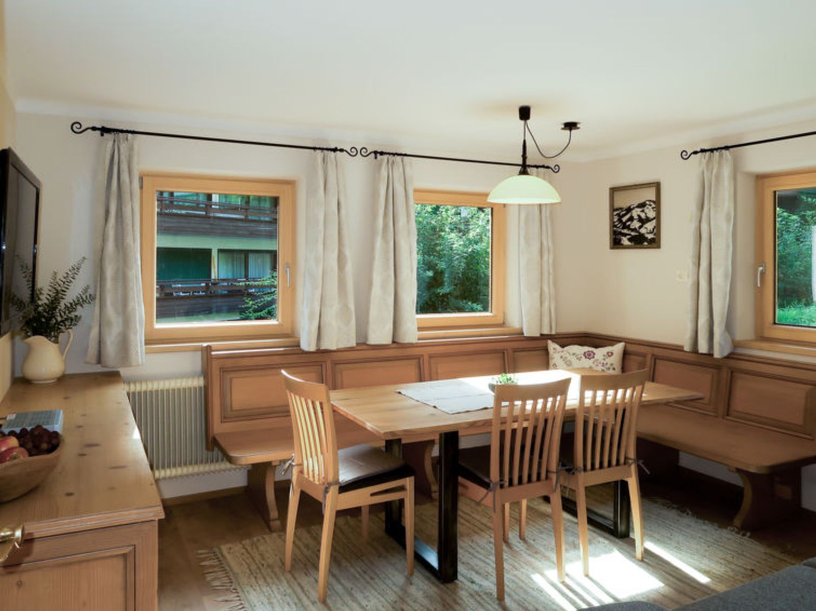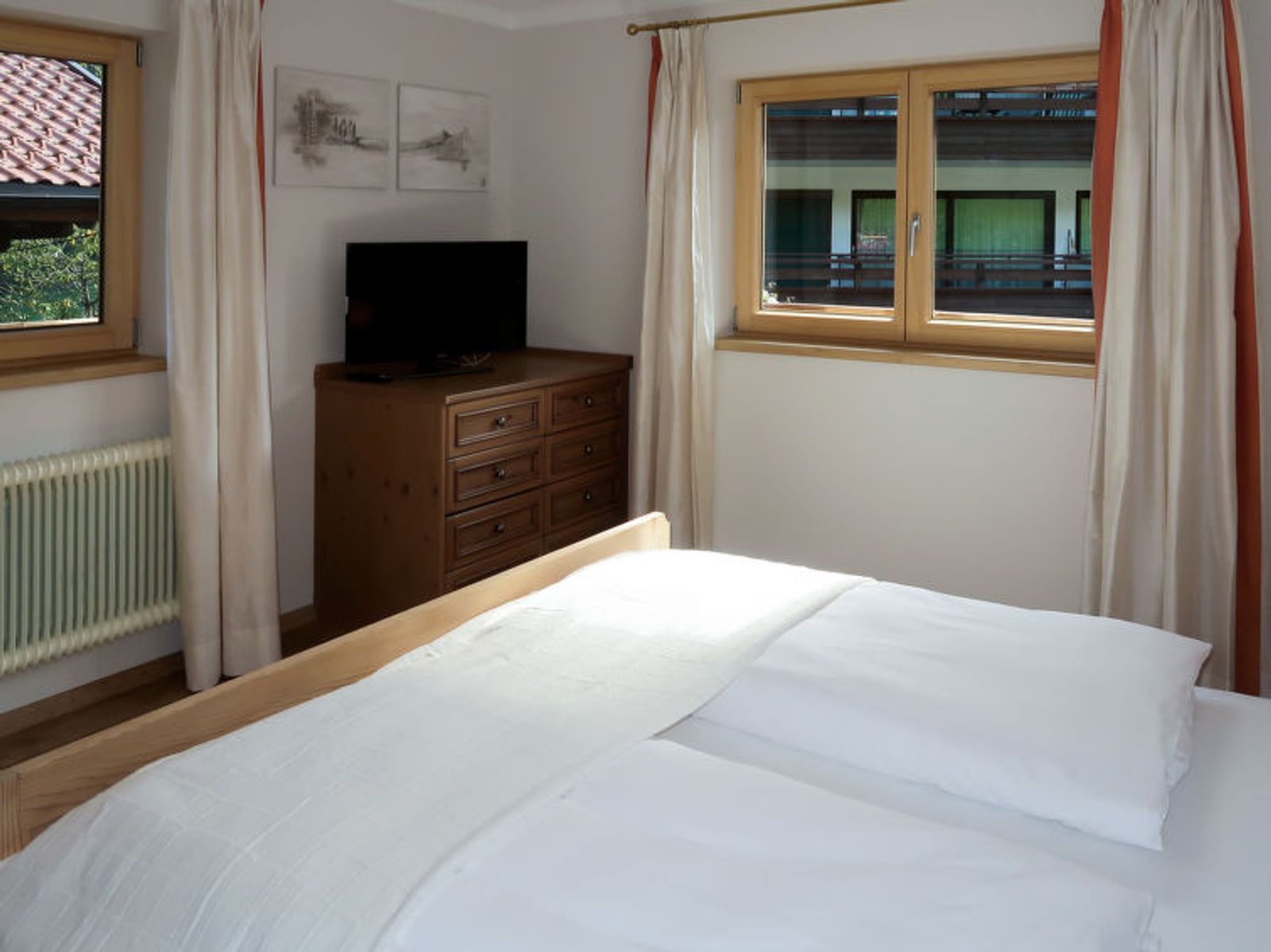"Sonnheim", 6-room house 140 m2 on 3 levels. Spacious and bright, tasteful and cosy furnishings: living/dining room with dining nook and satellite TV (flat screen). 1 double bedroom with hand-basin and satellite TV (flat screen). Kitchen-/living room (oven, dishwasher, 4 ceramic glass hob hotplates, toaster, kettle, microwave, electric coffee machine) with dining nook. Exit to the terrace. Sep. WC. Upper floor: 1 double bedroom with satellite TV. Exit to the balcony. 1 double bedroom with satellite TV. 2 showers, sep. WC, double hand-basin. 2nd upper floor: 1 room with sloping ceilings with 1 bed, 1 double bed and satellite TV. Exit to the balcony. 1 small room with sloping ceilings with 1 bed. Exit to the balcony. Oil heating. 2 balconies, large terrace partly roofed. Terrace furniture, balcony furniture, electric barbecue, deck chairs (2), box-room. View of the mountains. Facilities: baby cot, hair dryer. Internet (WiFi, free). Please note: non-smoking house. Fire extinguisher. When there are less than the maximum number of guests staying at the property, not all of the housing units will be available for use.