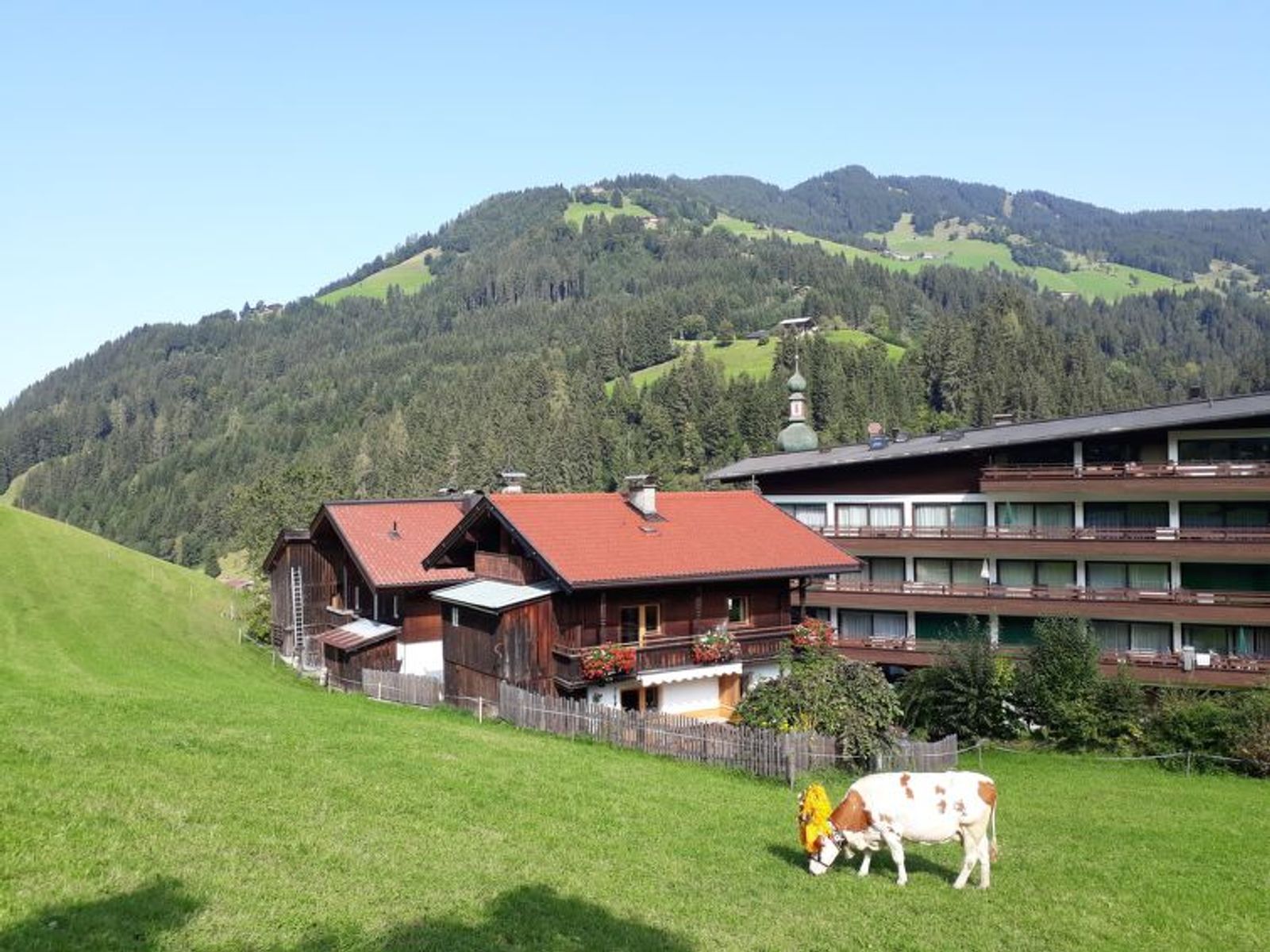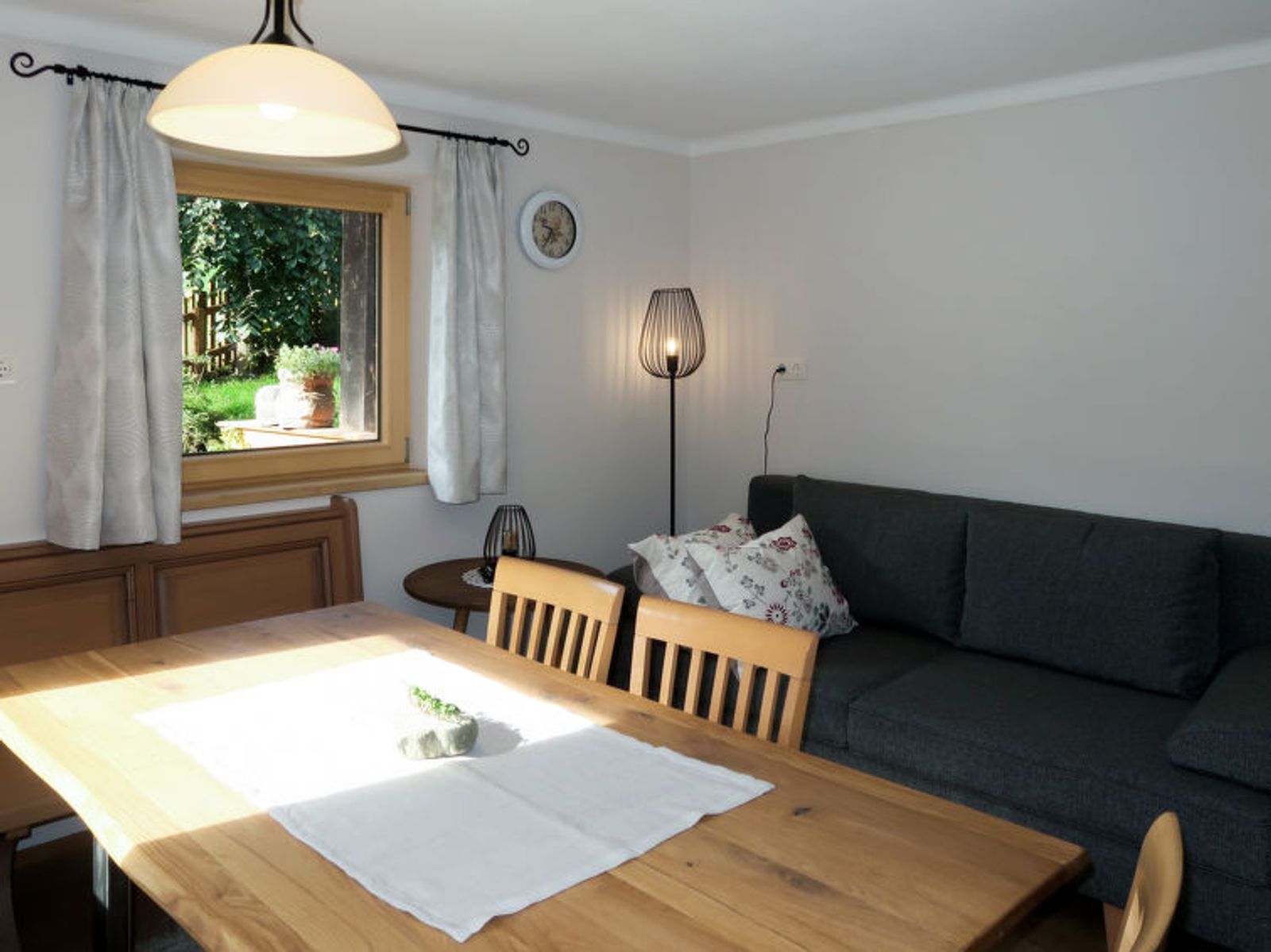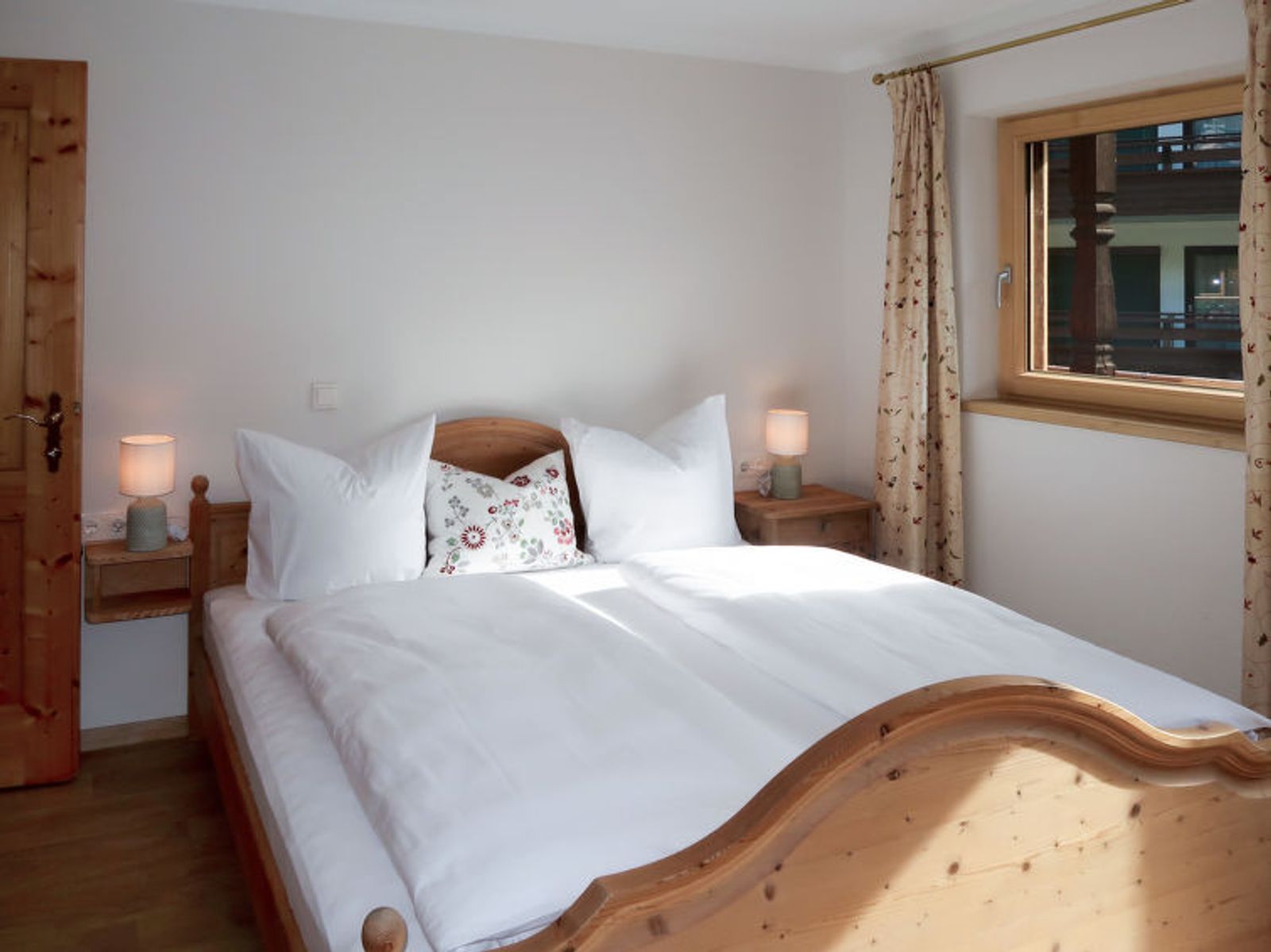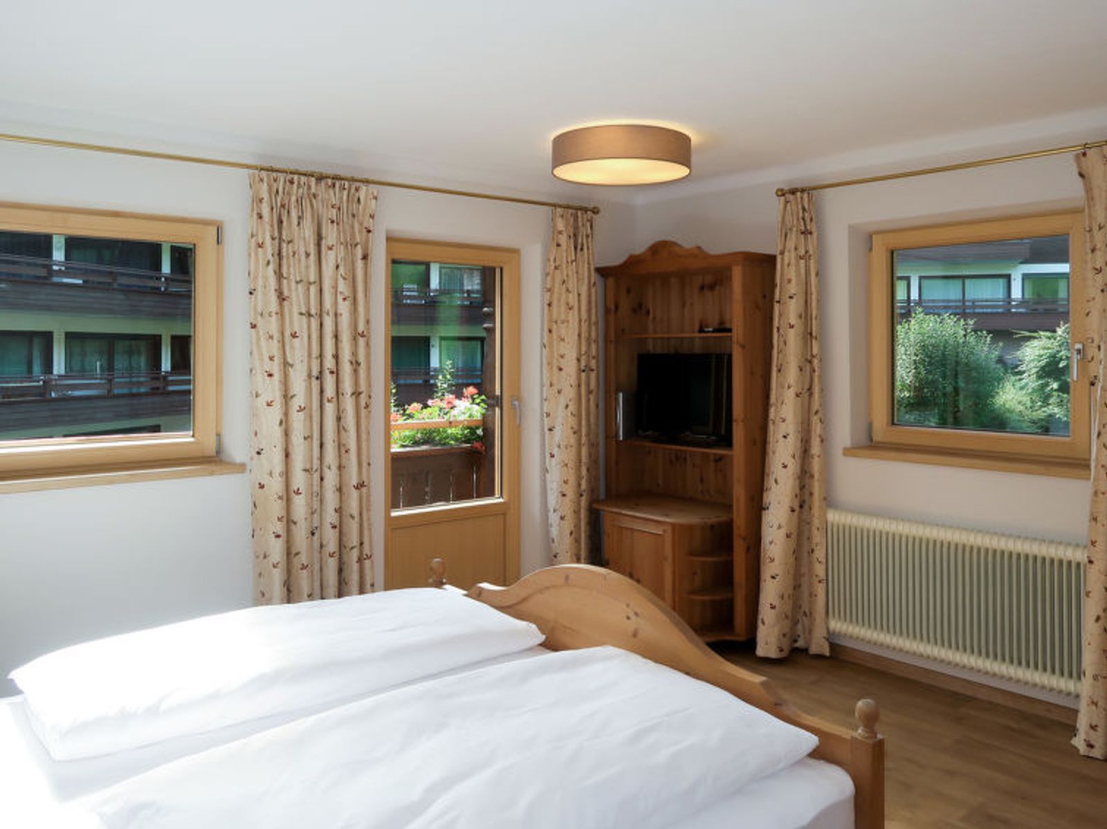 "Sonnheim", 6-room house 140 m2 on 3 levels. Spacious and bright, tasteful and cosy furnishings: living/dining room with dining nook and satellite TV (flat screen). 1 double bedroom with hand-basin and satellite TV (flat screen). Kitchen-/living room (oven, dishwasher, 4 ceramic glass hob hotplates, toaster, kettle, microwave, electric coffee machine) with dining nook. Exit to the terrace. Sep. WC. Upper floor: 1 double bedroom with satellite TV. Exit to the balcony. 1 double bedroom with satellite TV. 2 showers, sep. WC, double hand-basin. 2nd upper floor: 1 room with sloping ceilings with 1 bed, 1 double bed and satellite TV. Exit to the balcony. 1 small room with sloping ceilings with 1 bed. Exit to the balcony. Oil heating. 2 balconies, large terrace partly roofed. Terrace furniture, balcony furniture, electric barbecue, deck chairs (2), box-room. View of the mountains. Facilities: baby cot, hair dryer. Internet (WiFi, free). Please note: non-smoking house. Fire extinguisher. When there are less than the maximum number of guests staying at the property, not all of the housing units will be available for use.