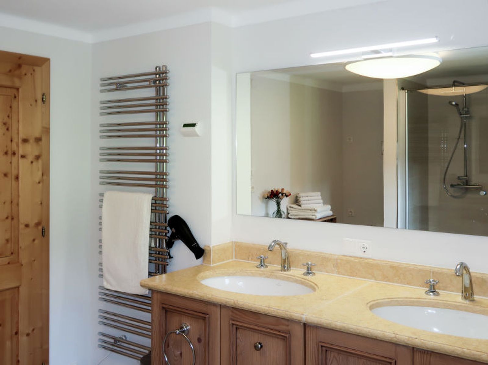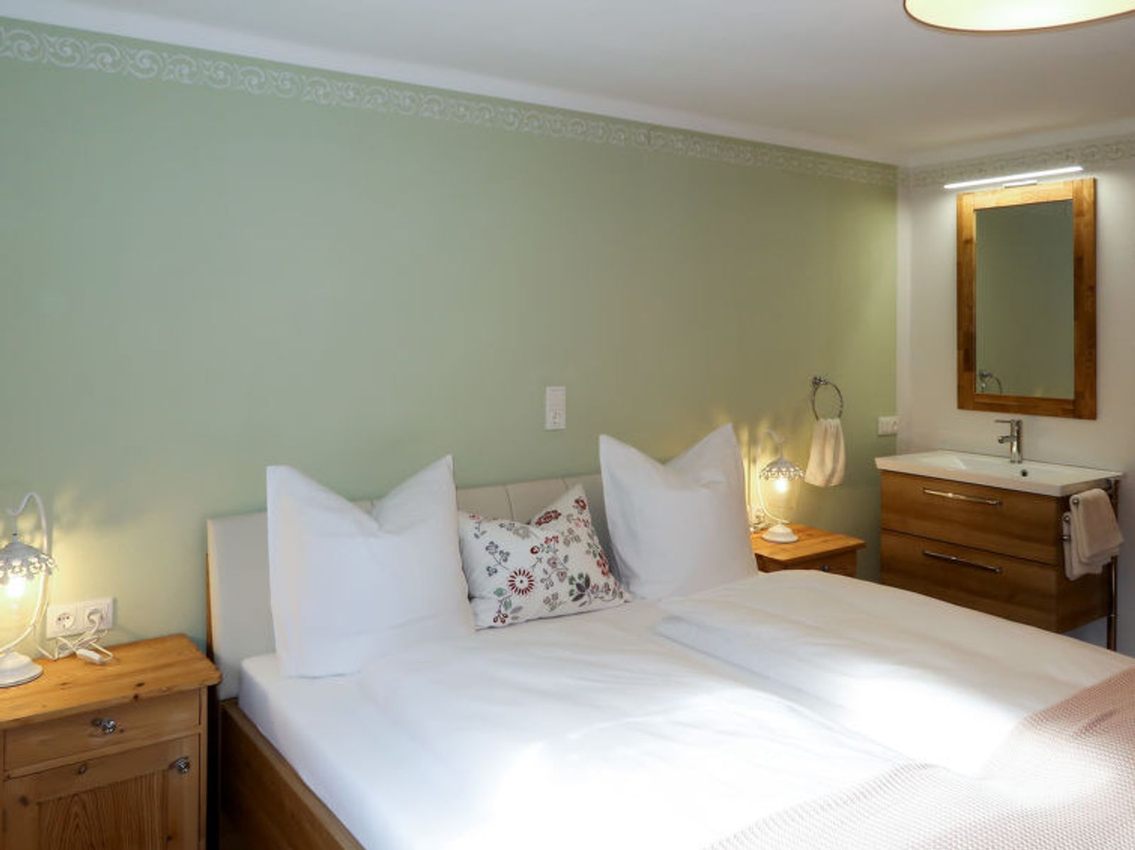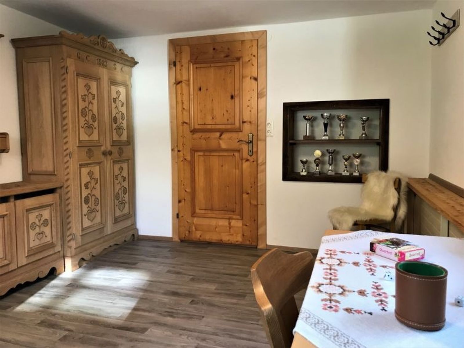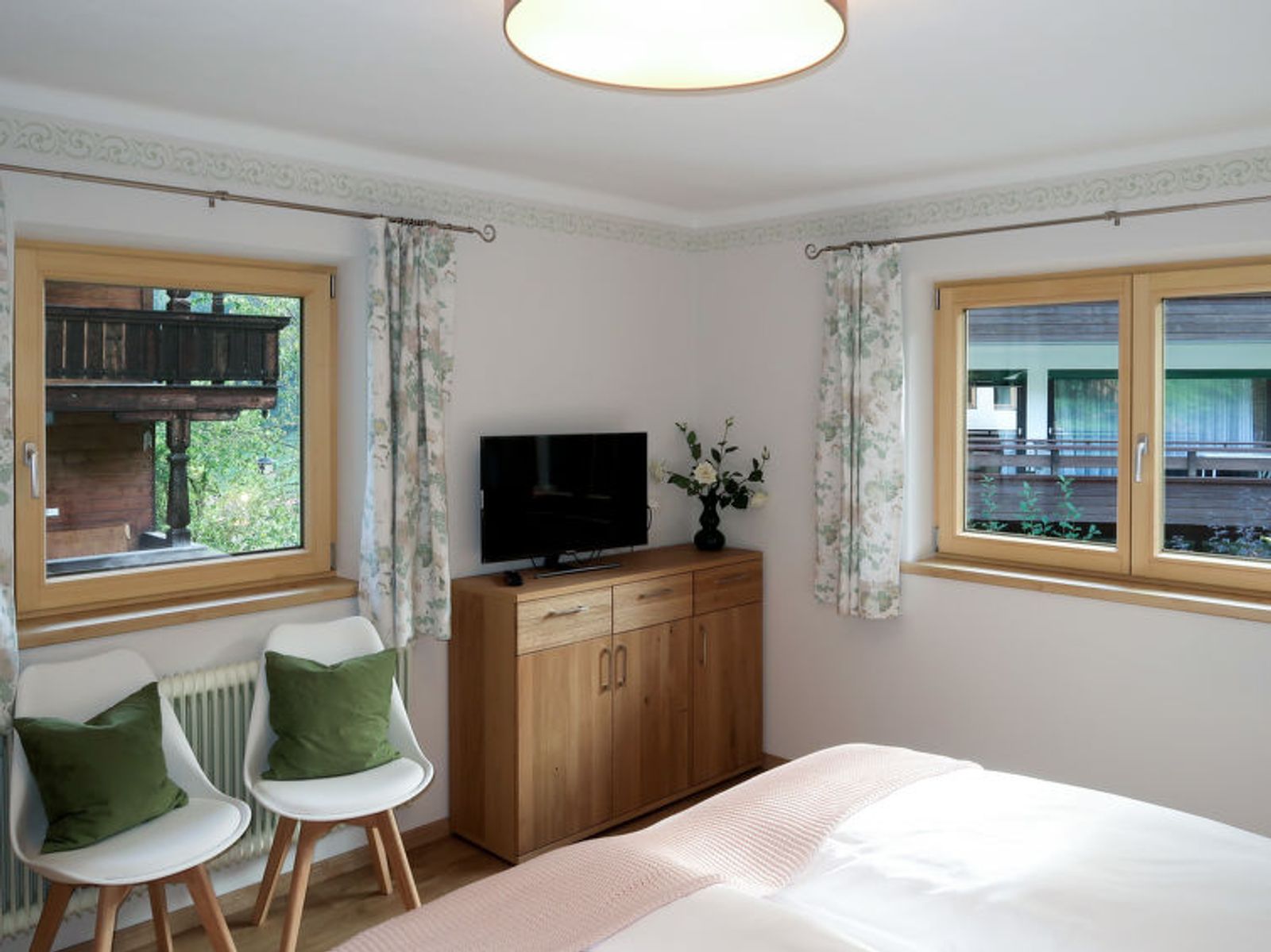 "Sonnheim", 6-room house 140 m2 on 3 levels. Spacious and bright, tasteful and cosy furnishings: living/dining room with dining nook and satellite TV (flat screen). 1 double bedroom with hand-basin and satellite TV (flat screen). Kitchen-/living room (oven, dishwasher, 4 ceramic glass hob hotplates, toaster, kettle, microwave, electric coffee machine) with dining nook. Exit to the terrace. Sep. WC. Upper floor: 1 double bedroom with satellite TV. Exit to the balcony. 1 double bedroom with satellite TV. 2 showers, sep. WC, double hand-basin. 2nd upper floor: 1 room with sloping ceilings with 1 bed, 1 double bed and satellite TV. Exit to the balcony. 1 small room with sloping ceilings with 1 bed. Exit to the balcony. Oil heating. 2 balconies, large terrace partly roofed. Terrace furniture, balcony furniture, electric barbecue, deck chairs (2), box-room. View of the mountains. Facilities: baby cot, hair dryer. Internet (WiFi, free). Please note: non-smoking house. Fire extinguisher. When there are less than the maximum number of guests staying at the property, not all of the housing units will be available for use.