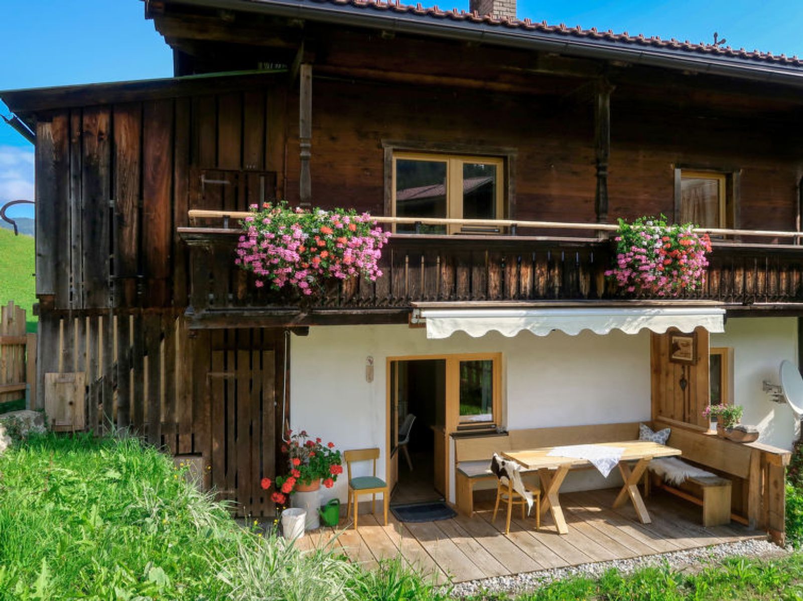Auffach: Very beautiful, cosy house "Sonnheim", 870 m a.s.l., renovated in 2019. 50 m from the centre of Auffach, 5 km from the centre of Oberau, 17 km from the centre of Wörgl, in a quiet, sunny position on a slope, excellent location: right in the centre but still quiet, 300 m from the skiing area. Private: property, terraced garden (not fenced) with lawn. In the house: playroom, storage room for bicycles, sun terrace, storage room for skis, central heating system, ski boot dryer. Available: sledges (4). Storeroom available. Stepped path (3 steps) to the house. Parking (for 3 cars) at the house. Grocery 500 m, supermarket 500 m, restaurant 250 m, bar 300 m, 4 minute walk to the centre, bus stop 250 m, outdoor swimming pool 6.7 km. Walking paths from the house 10 m, mountain railway, ski lift, ski bus stop 300 m, ski school, sled run 20 m, cross country ski track 4.5 km, ice rink 5 km, children's playground 40 m. Nearby attractions: Freizeitpark Drachental Wildschönau 5 km, Alpine Coaster im Drachental 5 km, Holzmuseum Auffach 600 m, Bergbauernmuseum 6.3 km, Bergdoktordörfer Ellmau und Going 35 km. Well-known ski regions can easily be reached: SkiJuwel Alpbachtal - Wildschönau 300 m, Skiwelt Wilder Kaiser - Brixental 17 km. Hiking paths: Schatzberg, Markbachjoch, Gratlspitz, Wilder Kaiser / Brixental, Kitzbüheler Alpen. Please note: ski bus (free of charge). Free ski bus service to the ski region SkiJuwel Alpbachtal - Wildschönau. In case of good snow conditions, the house is accessible on skis. The benefits of the guest card must be determined by the guest. Electric car charging is not available at the holiday property.