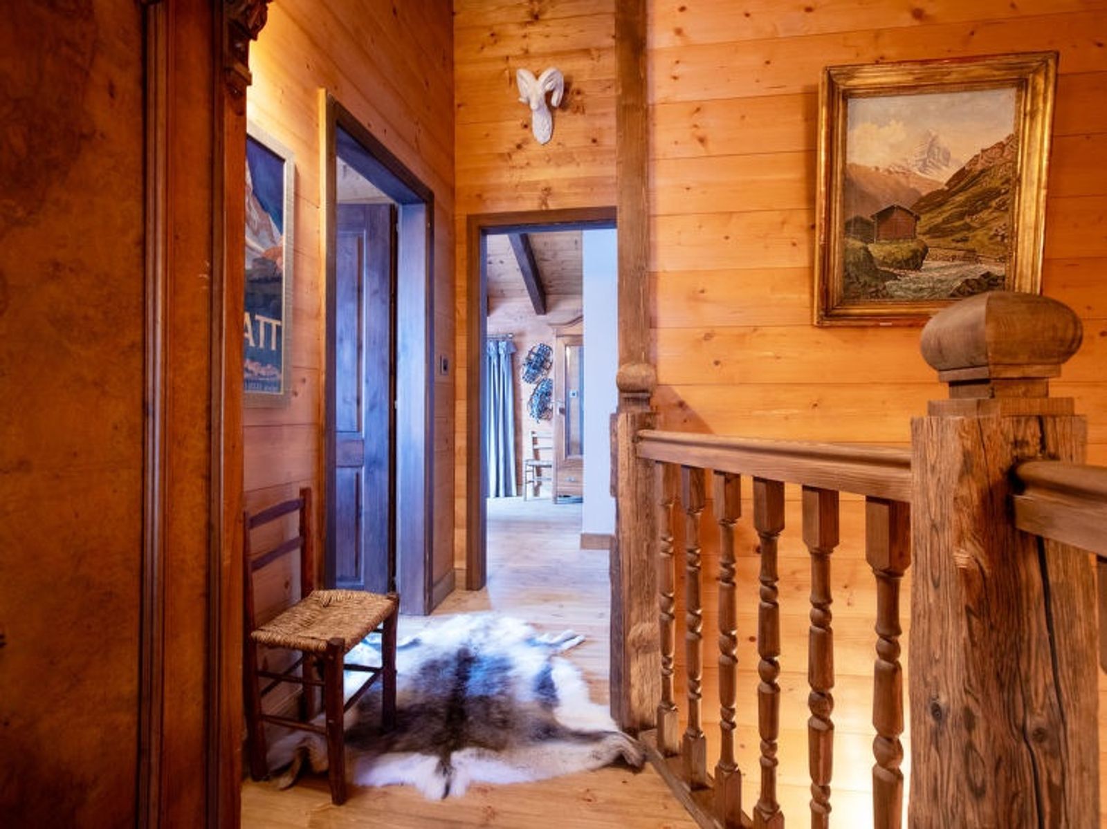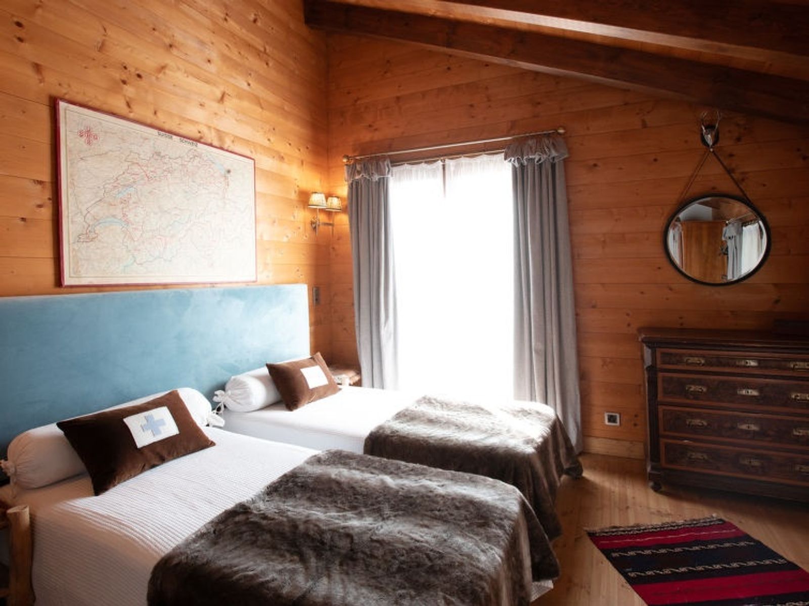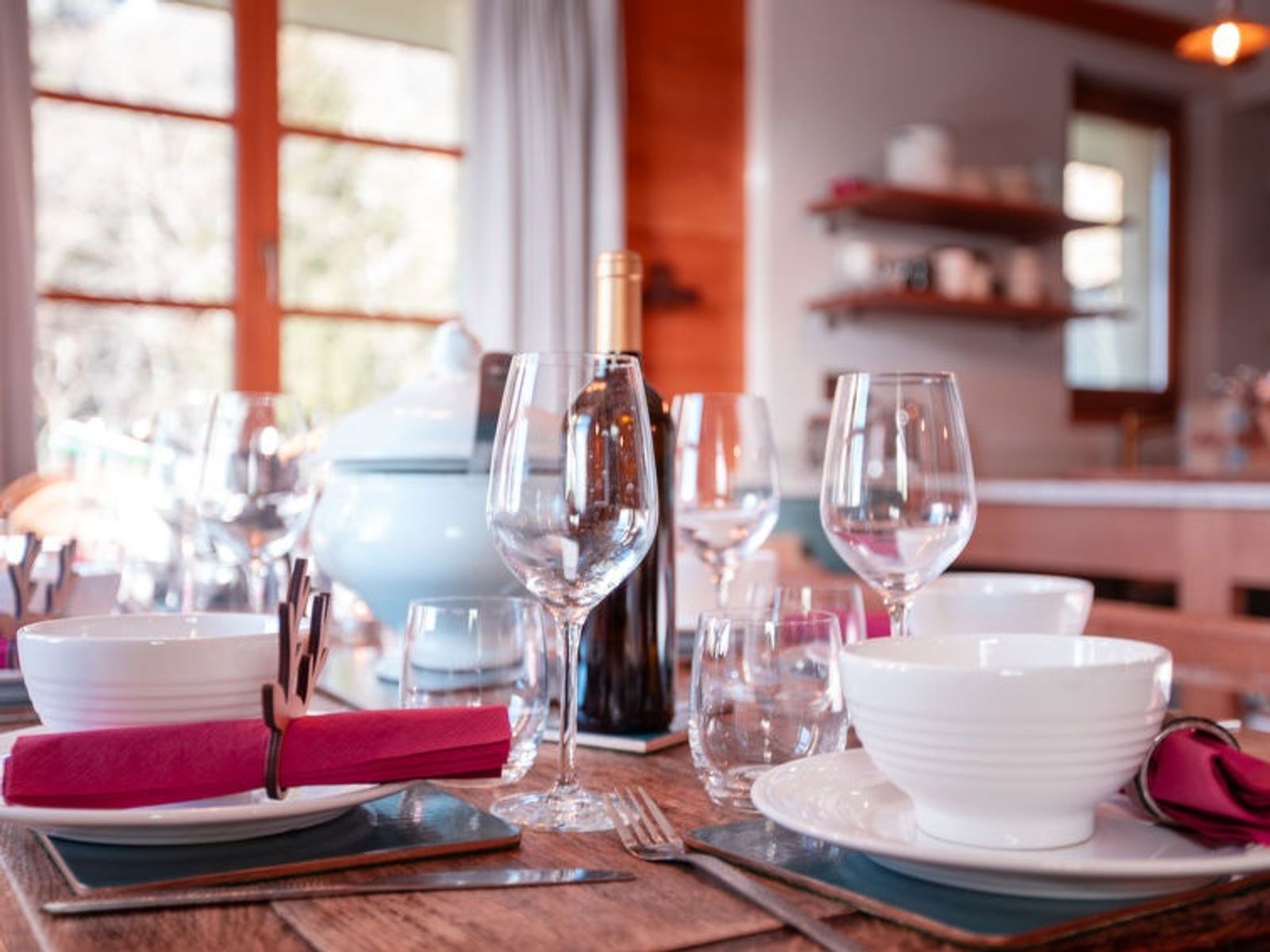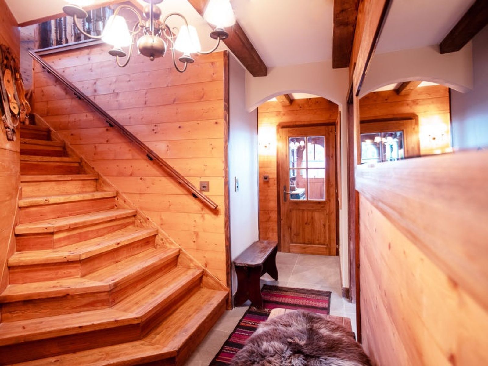 "Chalet Tetras", 8-room chalet 220 m2 on 3 levels, south facing position. Very comfortable and tasteful furnishings: small living room with TV (flat screen). 1 room with 1 french bed (160 cm, length 200 cm), bathroom. Exit to the garden, south facing position. Large kitchen (oven, dishwasher, 4 induction hot plates, toaster, kettle, microwave, electric coffee machine, Capsules for coffee machine (Dolce Gusto) extra, raclette grill, fondue Set (cheese)) with dining table. Exit to the garden, south facing position. Sep. WC. Upper floor: large living room with open-hearth fireplace. Exit to the terrace, south facing position and west facing position. 1 double bedroom with 1 french bed (180 cm, length 200 cm), bath/WC and double hand-basin. Exit to the terrace, west facing position. 2nd upper floor: 1 double bedroom with 2 beds (90 cm, length 200 cm). Exit to the balcony, south facing position. 1 double bedroom with 2 beds (90 cm, length 200 cm). Exit to the balcony, south facing position. 1 double bedroom with 2 beds (90 cm, length 200 cm), hand-basin and shower/WC. Bath/shower/WC. Small balcony, south facing position, terrace, south facing position and west facing position, small garden, south facing position. Terrace furniture. Partial view of the mountains. Facilities: washing machine, dryer. Internet (WiFi, free). Parking (2 cars).