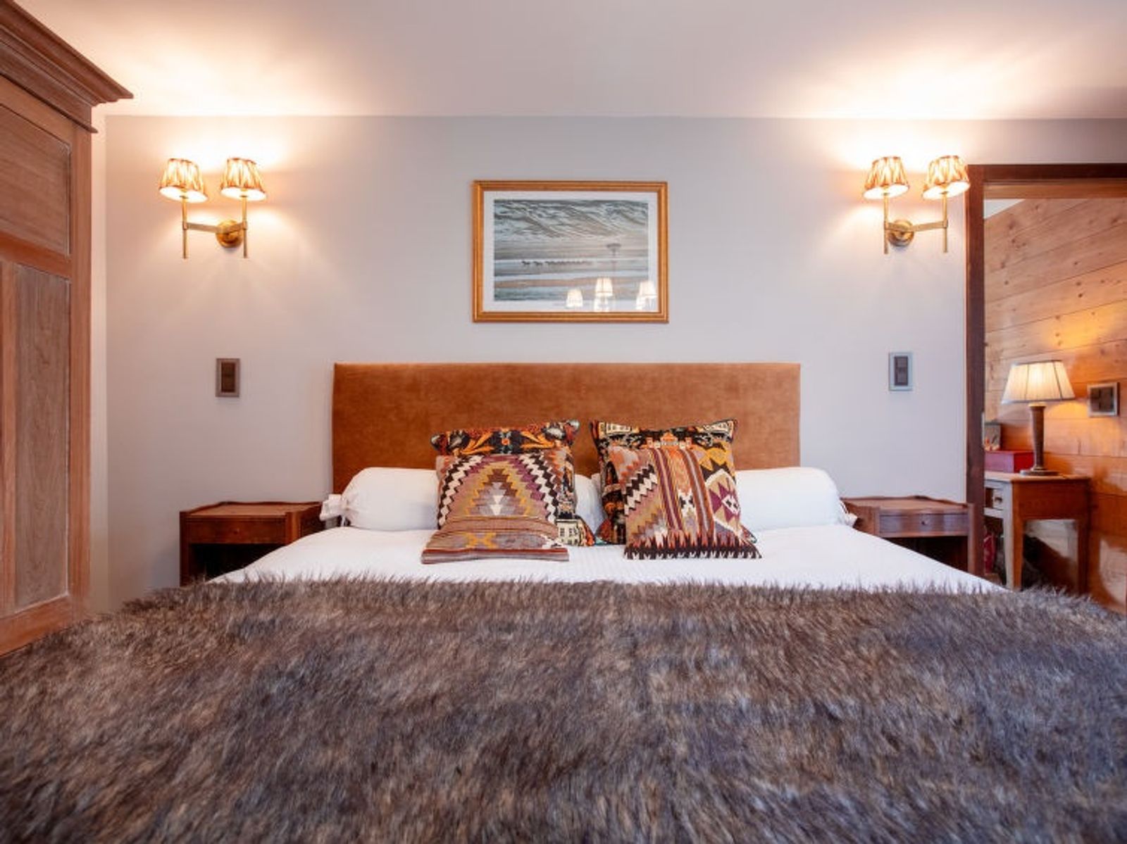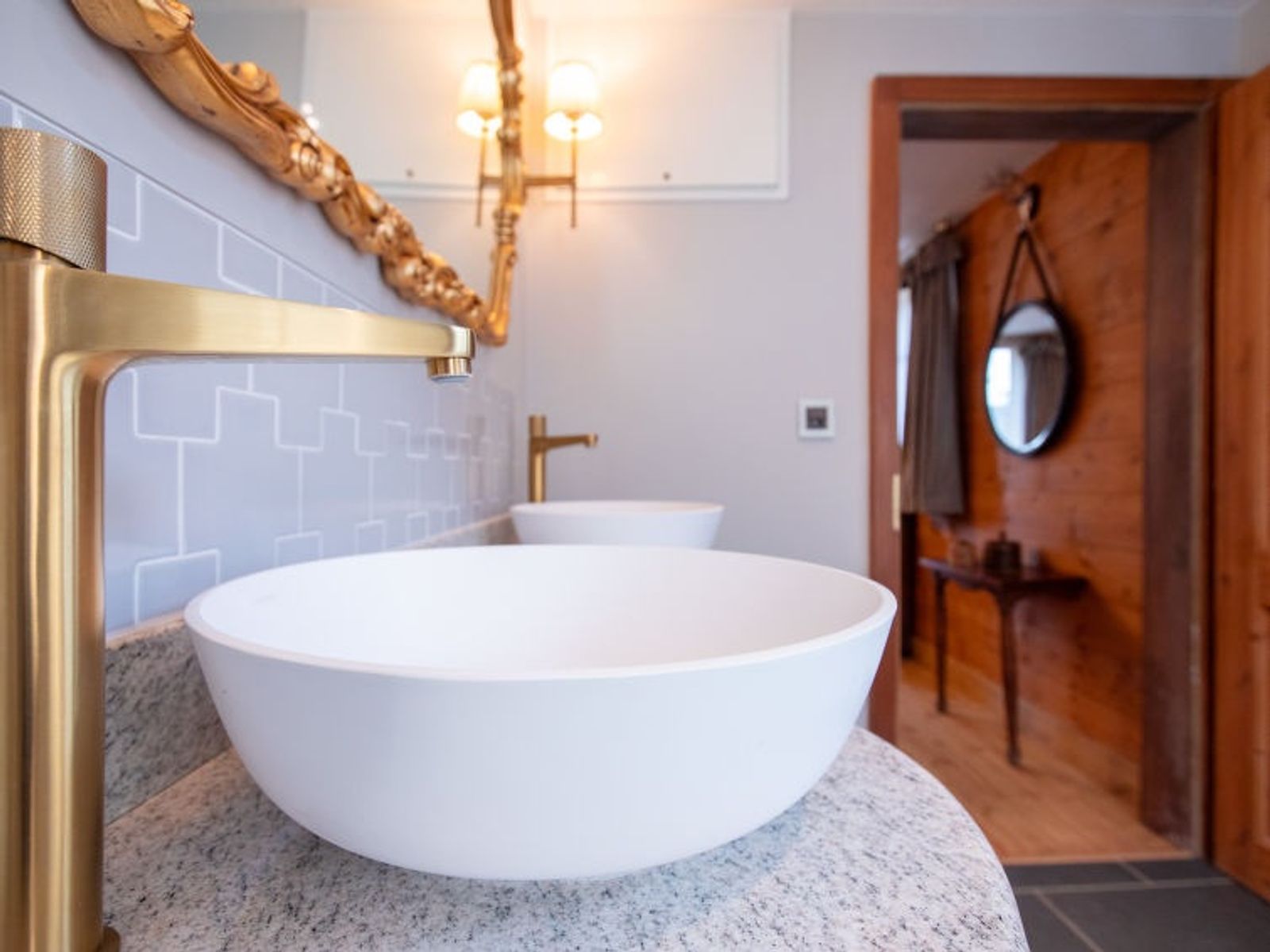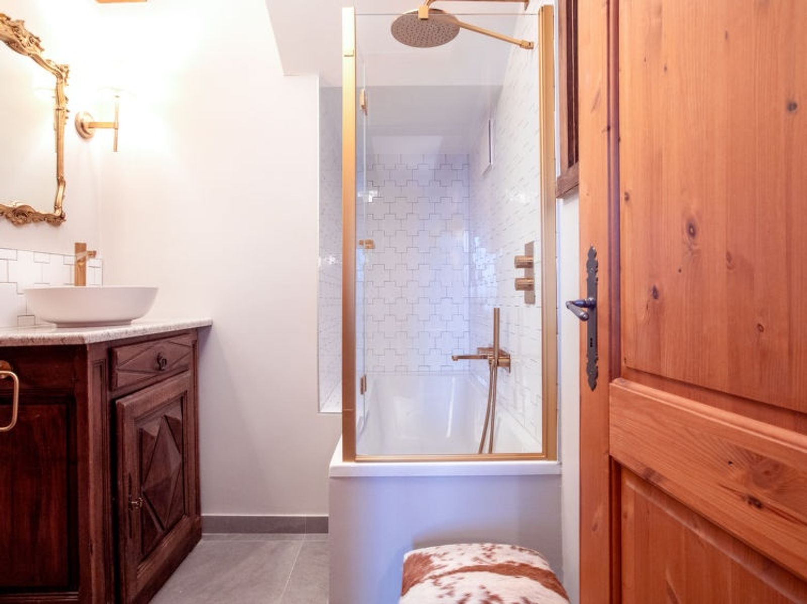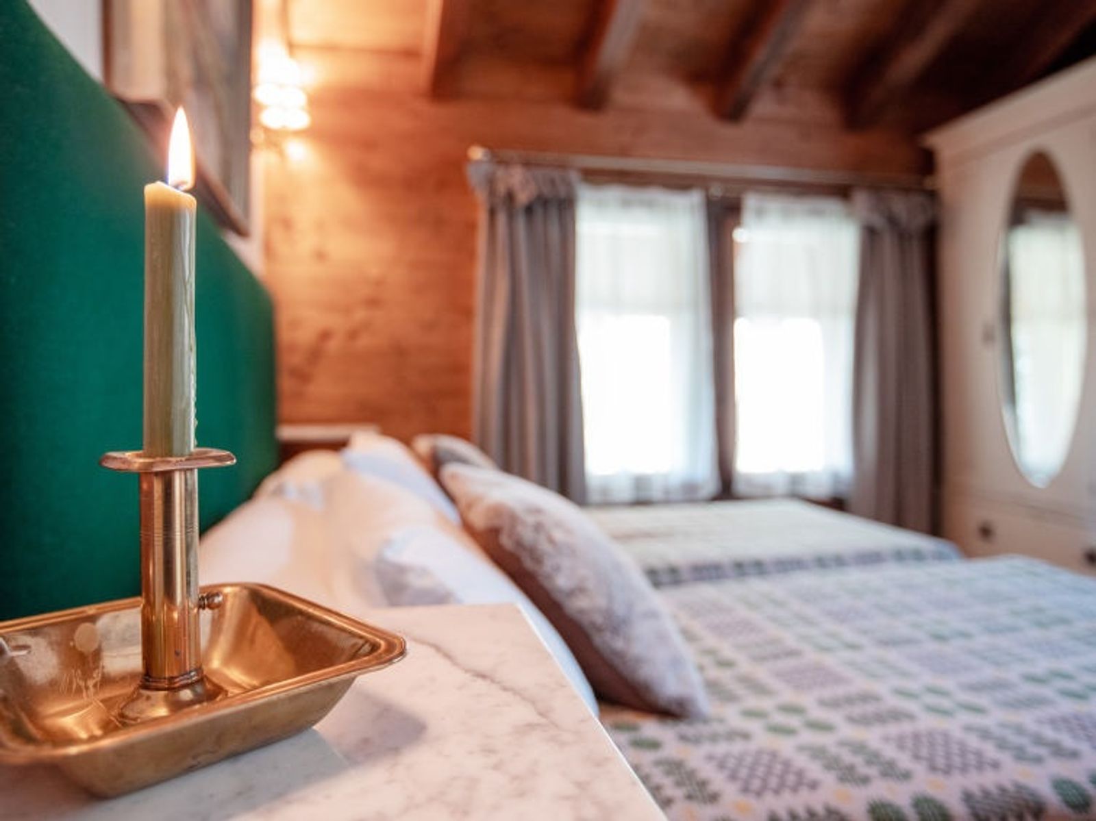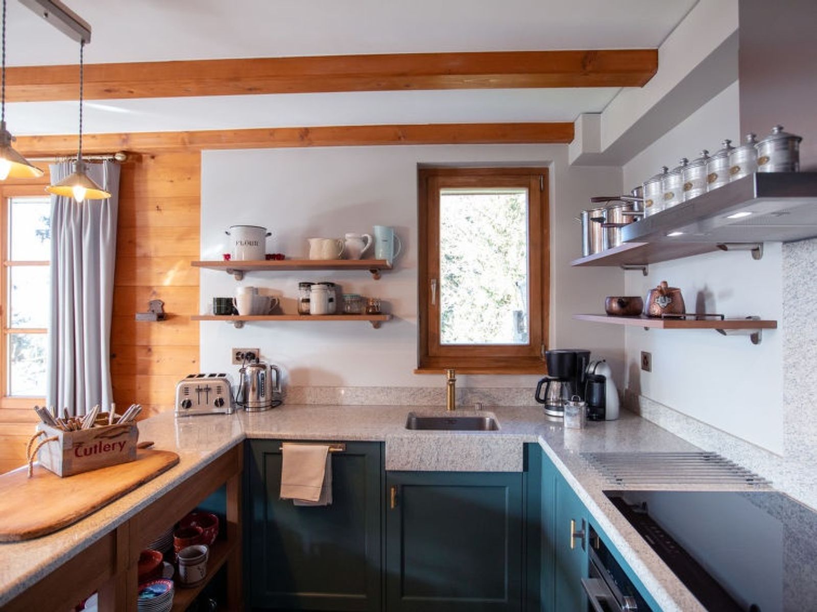 "Chalet Tetras", 8-room chalet 220 m2 on 3 levels, south facing position. Very comfortable and tasteful furnishings: small living room with TV (flat screen). 1 room with 1 french bed (160 cm, length 200 cm), bathroom. Exit to the garden, south facing position. Large kitchen (oven, dishwasher, 4 induction hot plates, toaster, kettle, microwave, electric coffee machine, Capsules for coffee machine (Dolce Gusto) extra, raclette grill, fondue Set (cheese)) with dining table. Exit to the garden, south facing position. Sep. WC. Upper floor: large living room with open-hearth fireplace. Exit to the terrace, south facing position and west facing position. 1 double bedroom with 1 french bed (180 cm, length 200 cm), bath/WC and double hand-basin. Exit to the terrace, west facing position. 2nd upper floor: 1 double bedroom with 2 beds (90 cm, length 200 cm). Exit to the balcony, south facing position. 1 double bedroom with 2 beds (90 cm, length 200 cm). Exit to the balcony, south facing position. 1 double bedroom with 2 beds (90 cm, length 200 cm), hand-basin and shower/WC. Bath/shower/WC. Small balcony, south facing position, terrace, south facing position and west facing position, small garden, south facing position. Terrace furniture. Partial view of the mountains. Facilities: washing machine, dryer. Internet (WiFi, free). Parking (2 cars).