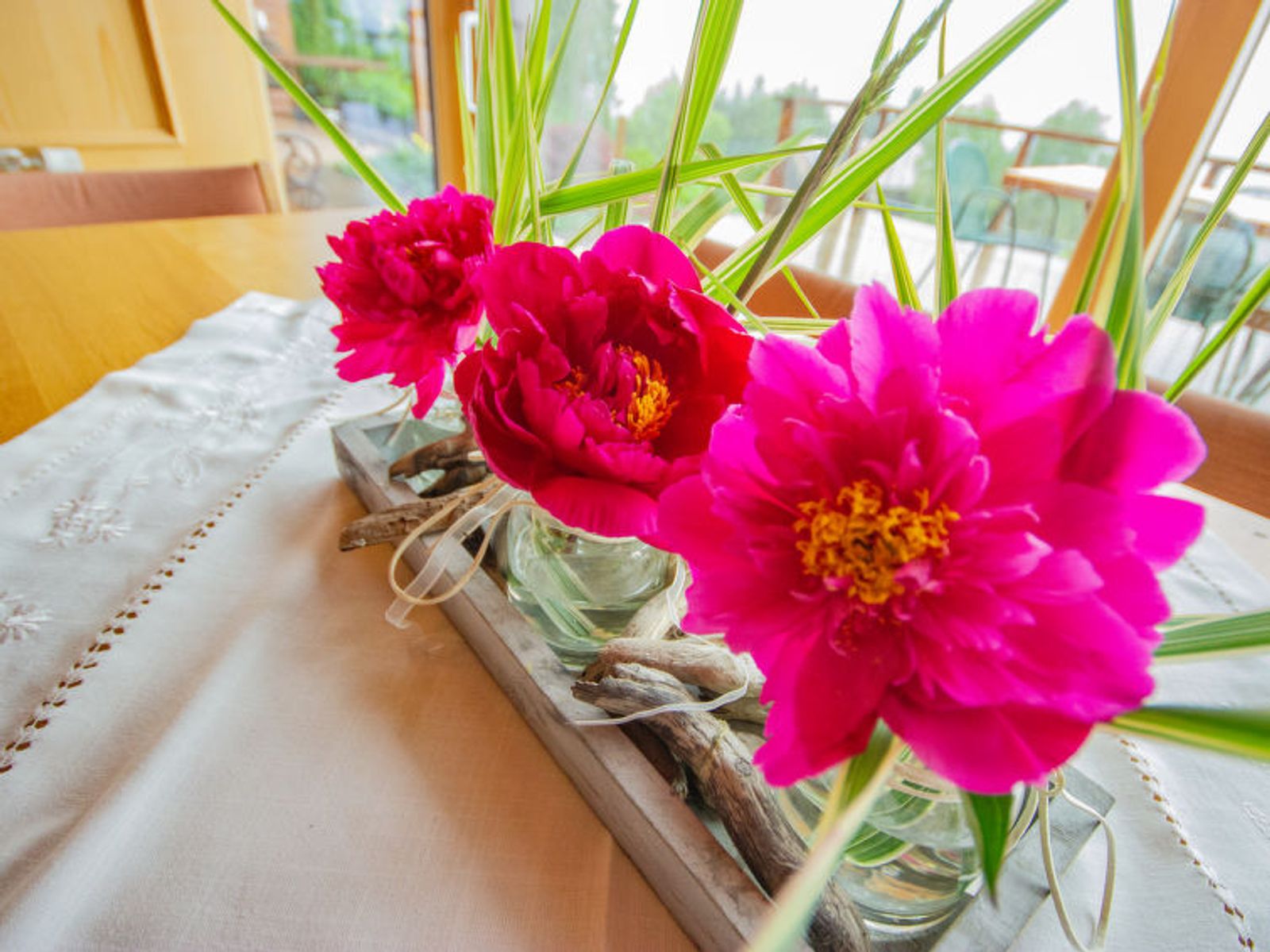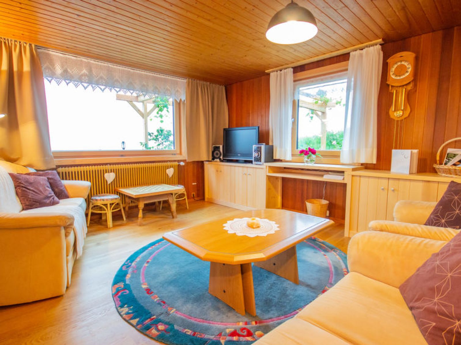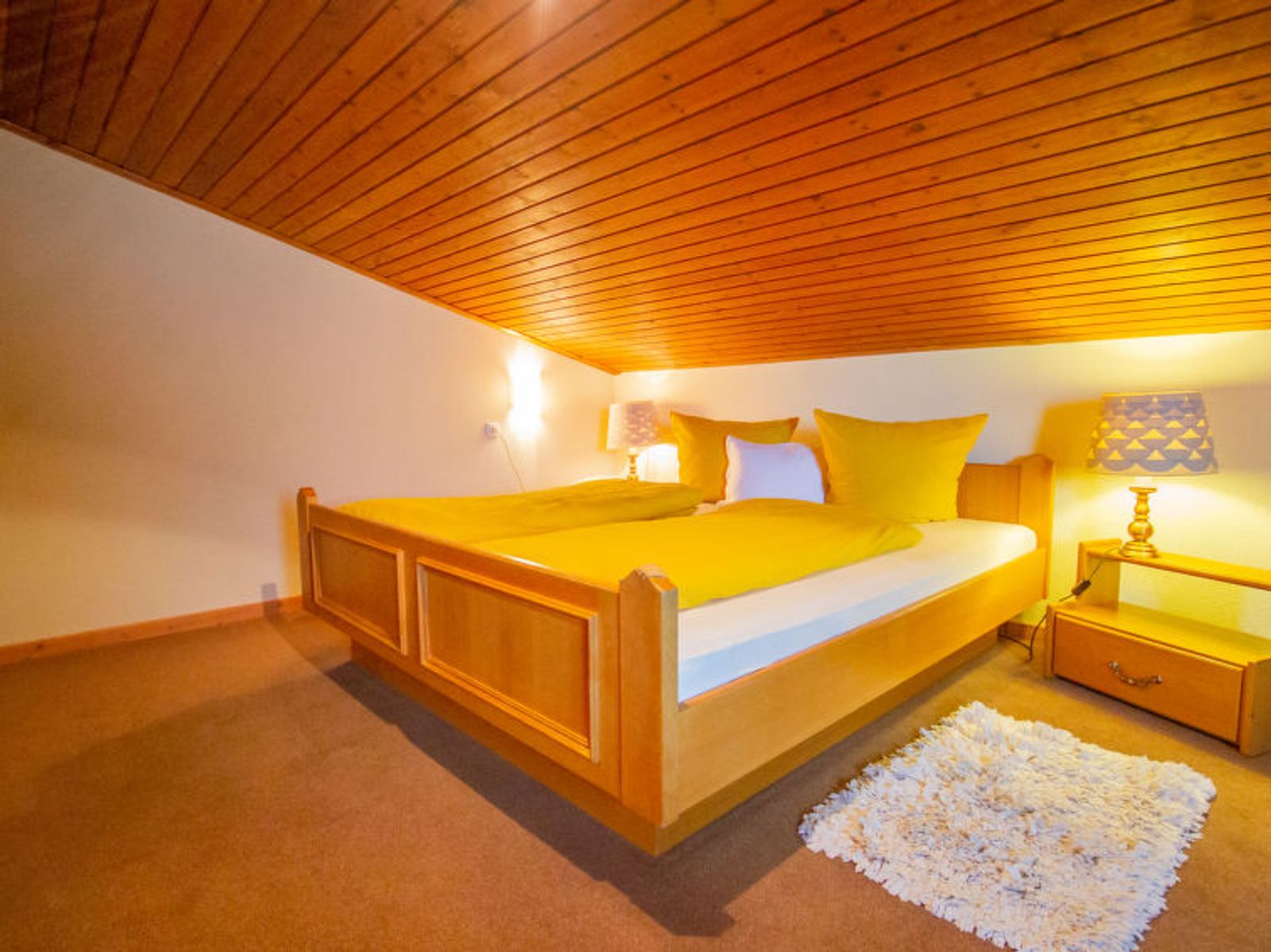 6-room chalet 190 m2. Stylish and cosy furnishings: entrance hall. Large living room with panoramic window with cable TV, hi-fi system, DVD and tiled stove. Exit to the garden, to the terrace. Open lounge with winter garden. Kitchen (oven, dishwasher, 4 ceramic glass hob hotplates, microwave, freezer) with dining table. Shower/WC, double hand-basin. Underfloor heating. Upper floor: 3 double bedrooms. 1 room with sloping ceilings with 2 beds. Gallery with satellite TV. Bath/WC. Large terrace 44 m2. Terrace furniture, barbecue, deck chairs. Marvellous panoramic view of the mountains and the countryside. Facilities: washing machine, baby cot, hair dryer. Internet (WiFi, free). Please note: non-smoking house. Smoke alarm.