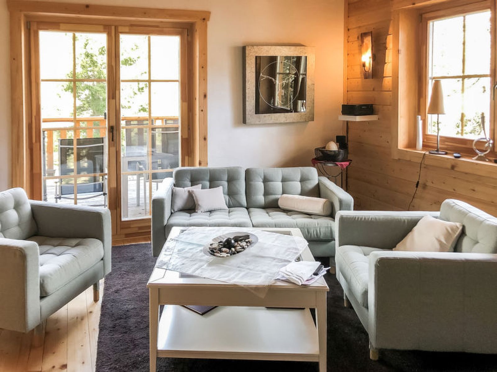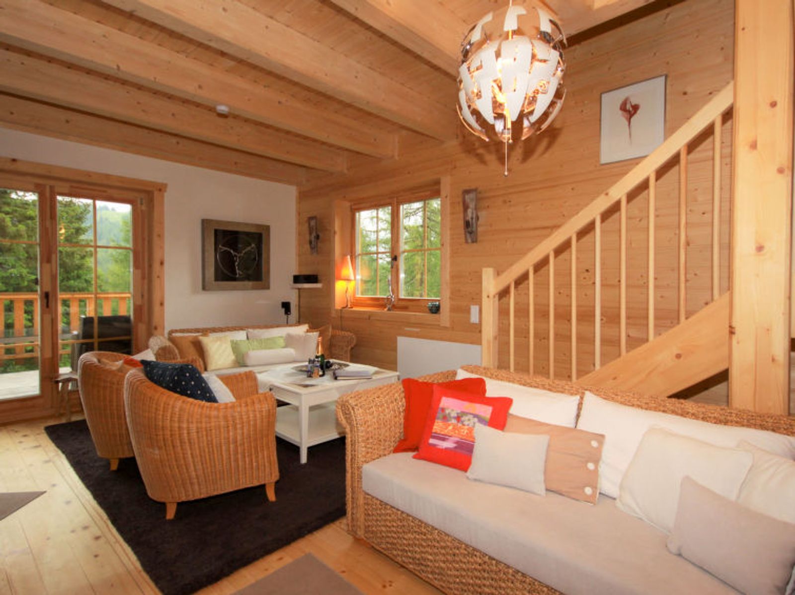 "Almhaus Galisch", 5-room chalet 120 m2 on 2 levels. Object suitable for 8 adults. Cosy and wooden furniture furnishings: entrance hall. 1 double bedroom with satellite TV (flat screen). Living/dining room with Scandinavian wood stove and satellite TV (flat screen), radio. Exit to the balcony. Open kitchen (oven, dishwasher, 4 ceramic glass hob hotplates) with dining nook. Shower/WC, double hand-basin. Floor heating. Upper floor: 2 double bedrooms, each room with satellite TV (flat screen). Exit to the balcony. 1 double bedroom with satellite TV (flat screen). Bath/WC. Floor heating. Wooden floors. Barbecue. Beautiful view of the countryside and the forest. Facilities: children's high chair, baby cot for up to 2 year olds, hair dryer, logs (extra). Internet (WiFi, free). Parking (2 cars). Please note: suitable for families. Non-smokers only. Smoke alarm. When there are less than the maximum number of guests staying at the property, not all of the housing units will be available for use.