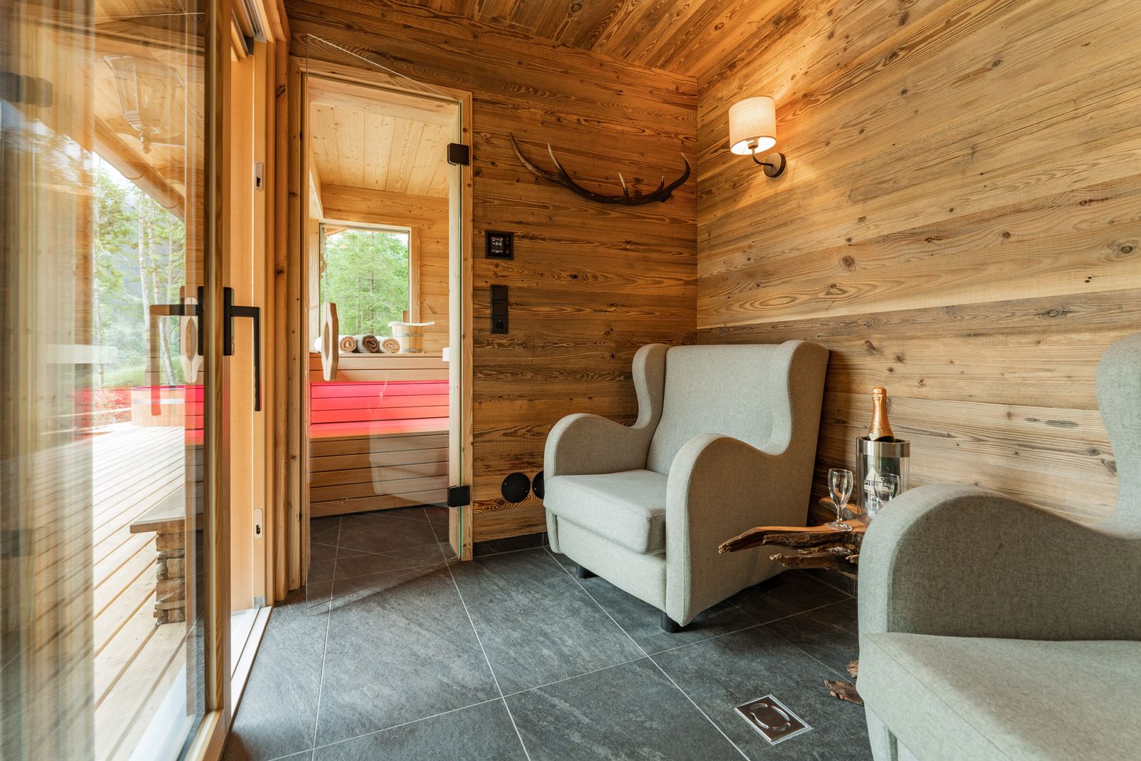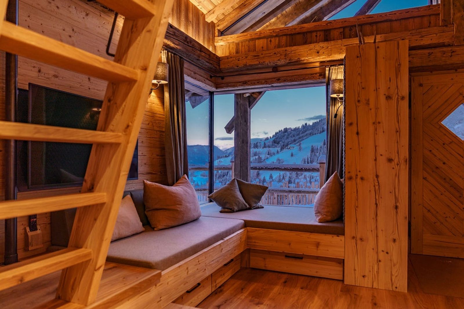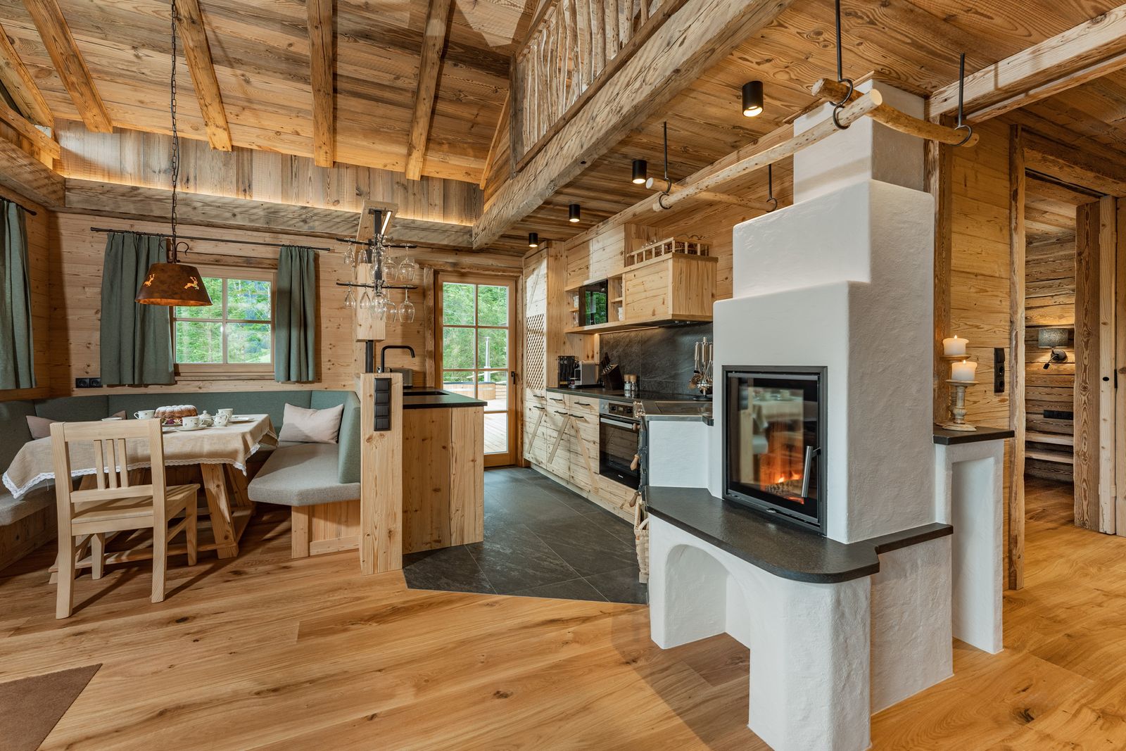 Here your dream becomes reality! Wake up in absolute peace, fresh air and a breathtaking view. Enjoy a wonderful sunrise and vacation days in the middle of the most beautiful natural landscapes in Austria. In the Chalet ALM you can relax and leave everyday life behind you. The tiled stove with vwindow and the spacious lounge area with a view of the mountains ensure a pure comfort. Relax in your own small wellness oasis with sauna and hot tub.