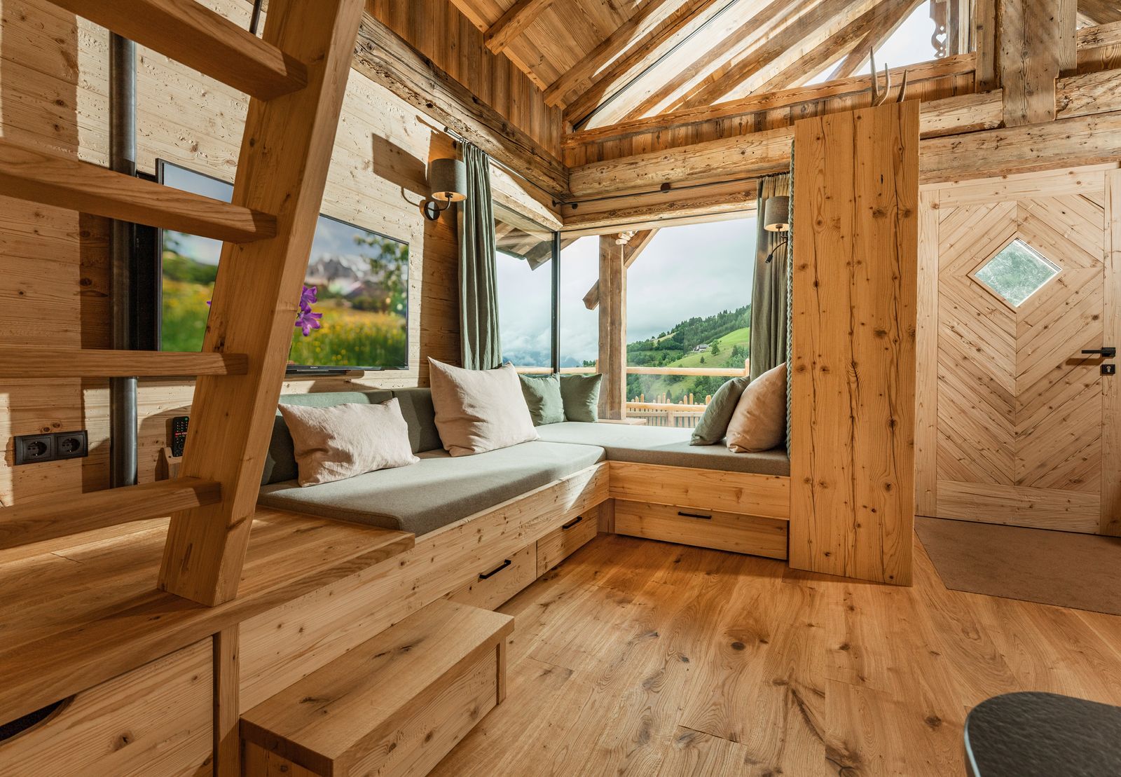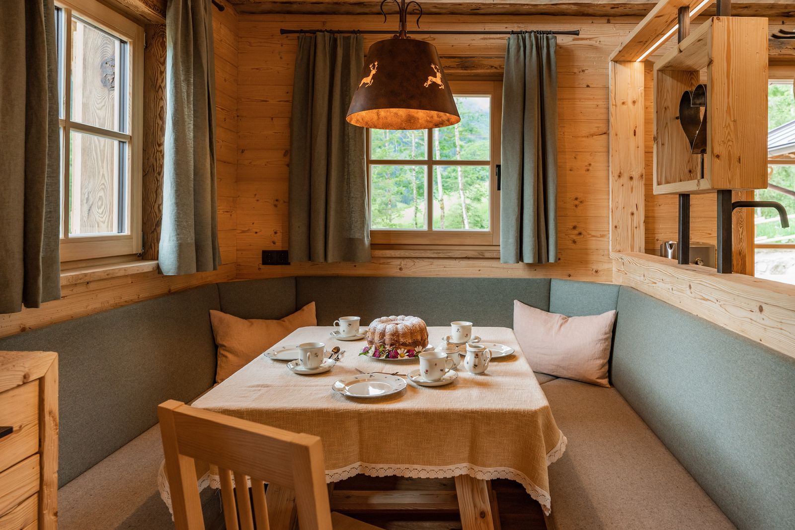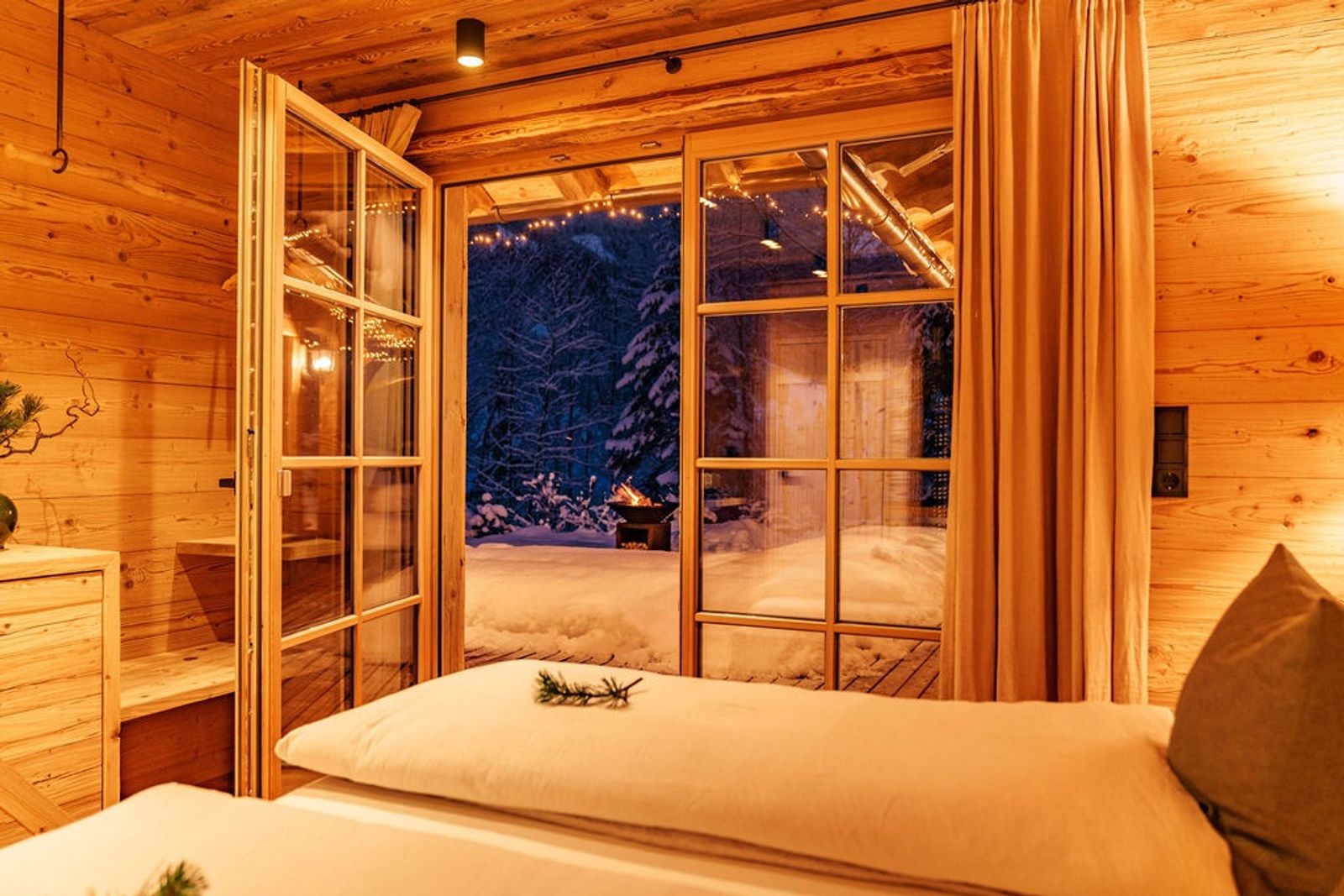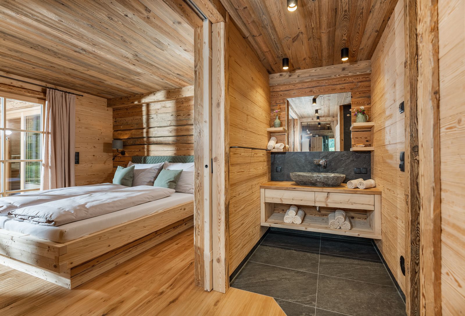 Here your dream becomes reality! Wake up in absolute peace, fresh air and a breathtaking view. Enjoy a wonderful sunrise and vacation days in the middle of the most beautiful natural landscapes in Austria. In the Chalet ALM you can relax and leave everyday life behind you. The tiled stove with vwindow and the spacious lounge area with a view of the mountains ensure a pure comfort. Relax in your own small wellness oasis with sauna and hot tub.