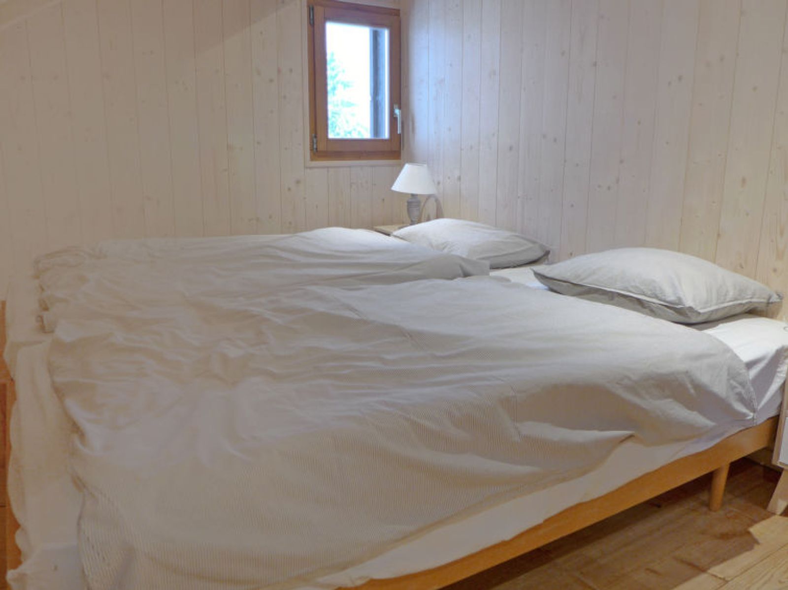 "Chalet de la Vue des Alpes", 3-room chalet 80 m2 on 2 levels. Partly with sloping ceilings, rustic and cosy furnishings: open living/dining room with dining nook, TV, flat screen, radio and hi-fi system. Exit to the garden, to the terrace. Open kitchen (oven, dishwasher, 4 ceramic glass hob hotplates, freezer, electric coffee machine, Capsules for coffee machine (Nespresso) extra, raclette grill, fondue Set (cheese)). Sep. WC. Solar energy heating. On the lower ground floor: shower. Upper floor: (steep stair), 2 small rooms with sloping ceilings, each room with 1 double bed. 1 open room with sloping ceilings with 2 beds (90 cm, length 200 cm). Large patio. Terrace furniture, deck chairs (2). Very beautiful panoramic view of the lake, the mountains, the valley and the countryside. Facilities: Internet (WiFi, free). Please note: non-smokers only. TV with Zattoo. CH47699
