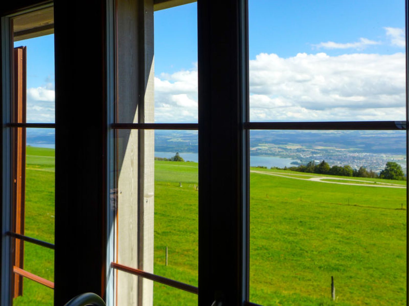 4-room chalet 100 m2 on 2 levels. Comfortable and tasteful furnishings: living/dining room with hi-fi system. 1 room with 1 double bed (160 cm, length 200 cm). Open kitchen (4 hot plates, oven, dishwasher, toaster, kettle, microwave, electric coffee machine, raclette grill, fondue Set (cheese)). Shower/WC. Floor heating. Upper floor: 1 room with 1 double bed (140 cm, length 200 cm). 1 room with 2 beds (90 cm, length 200 cm). Shower/WC. Terrace furniture. Marvellous panoramic view of the lake, the mountains and the countryside. Facilities: washing machine. Internet (WiFi, free). Parking. Please note: non-smokers only. Maximum 1 pet/ dog allowed. Fire extinguisher. In winter the road to the chalet at the arrival day will be free from snow. During the stay the client is responsible.