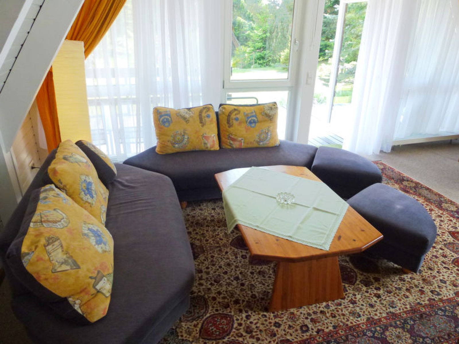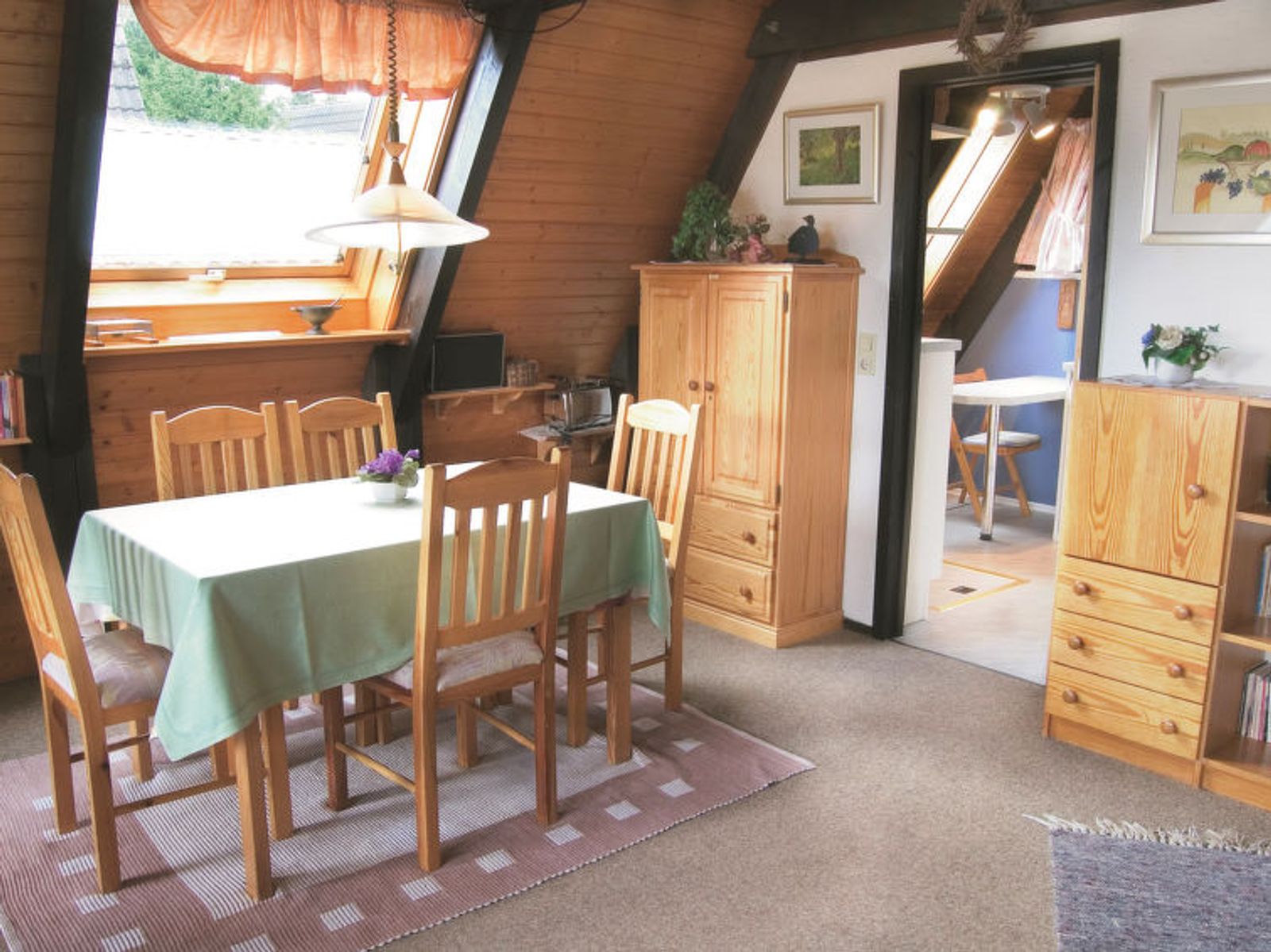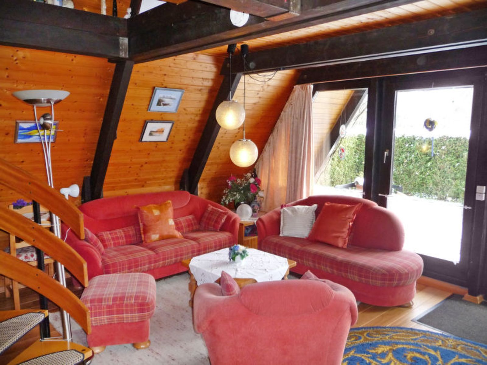 3-room house 68 m2 on 2 levels, on the ground floor. Partly with sloping ceilings: living/dining room with cable TV. Open kitchen (oven, electric coffee machine). Shower/WC. Top floor: (spiral staircase), 1 room with sloping ceilings with 3 beds. 1 double bedroom with sloping ceilings. Terrace. Terrace furniture. Facilities: children's high chair. Please note: non-smoking house. Maximum 1 pet/ dog allowed. Wood construction. Child's bed on request (10 € for the whole stay).