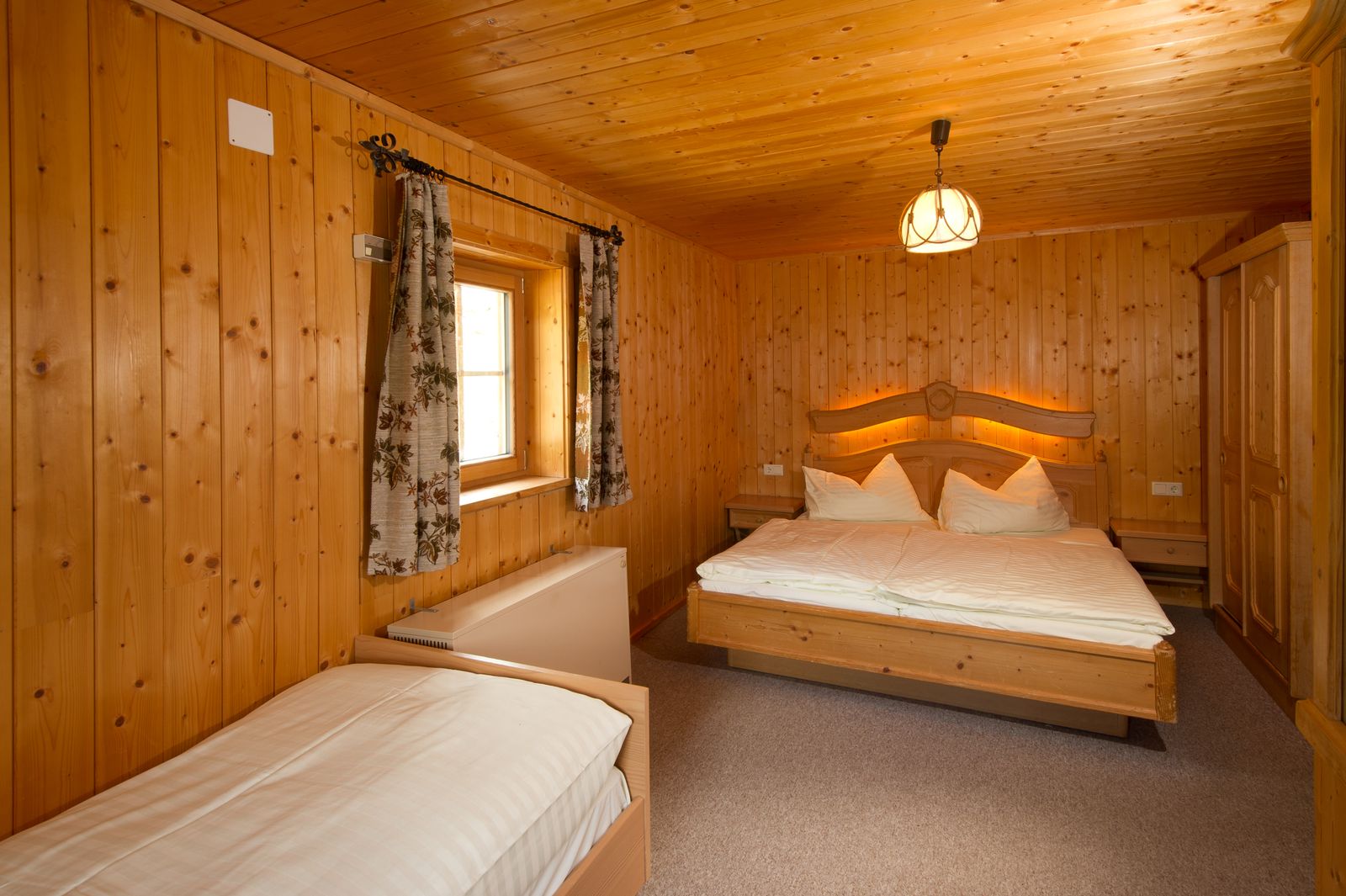 - 1 bedroom with a double bed and two single beds