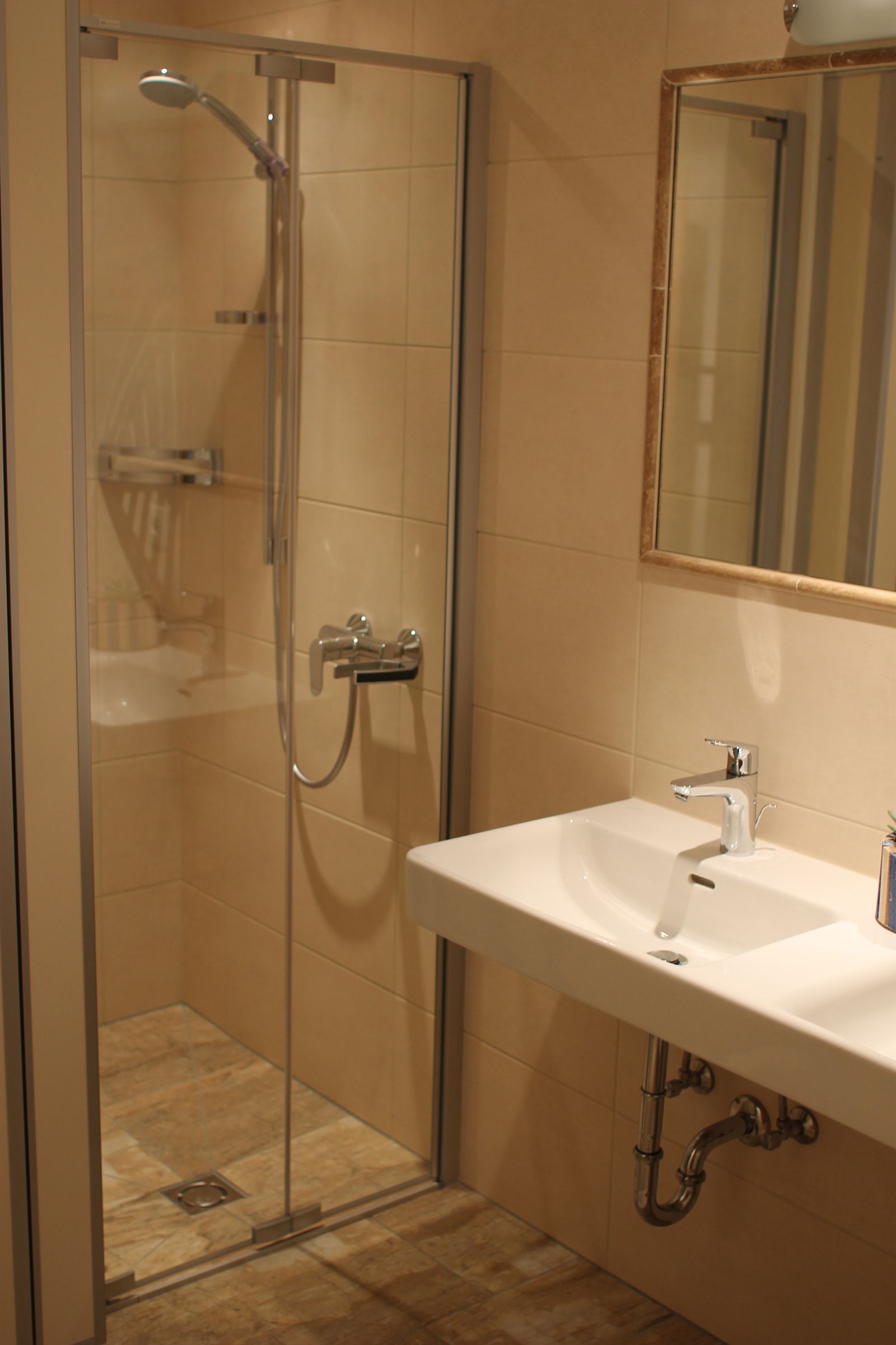 - 1 bathroom with shower, double sink and toilet on the ground floor