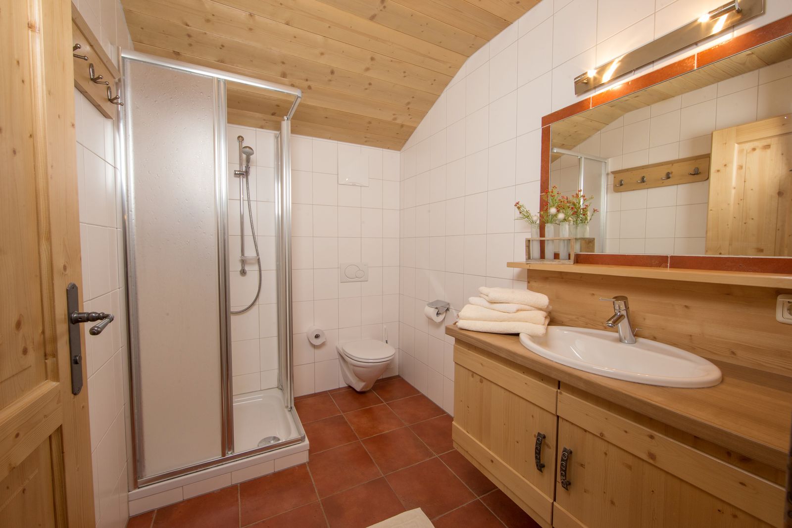 - Bathroom with shower, toilet and sink on the upper floor