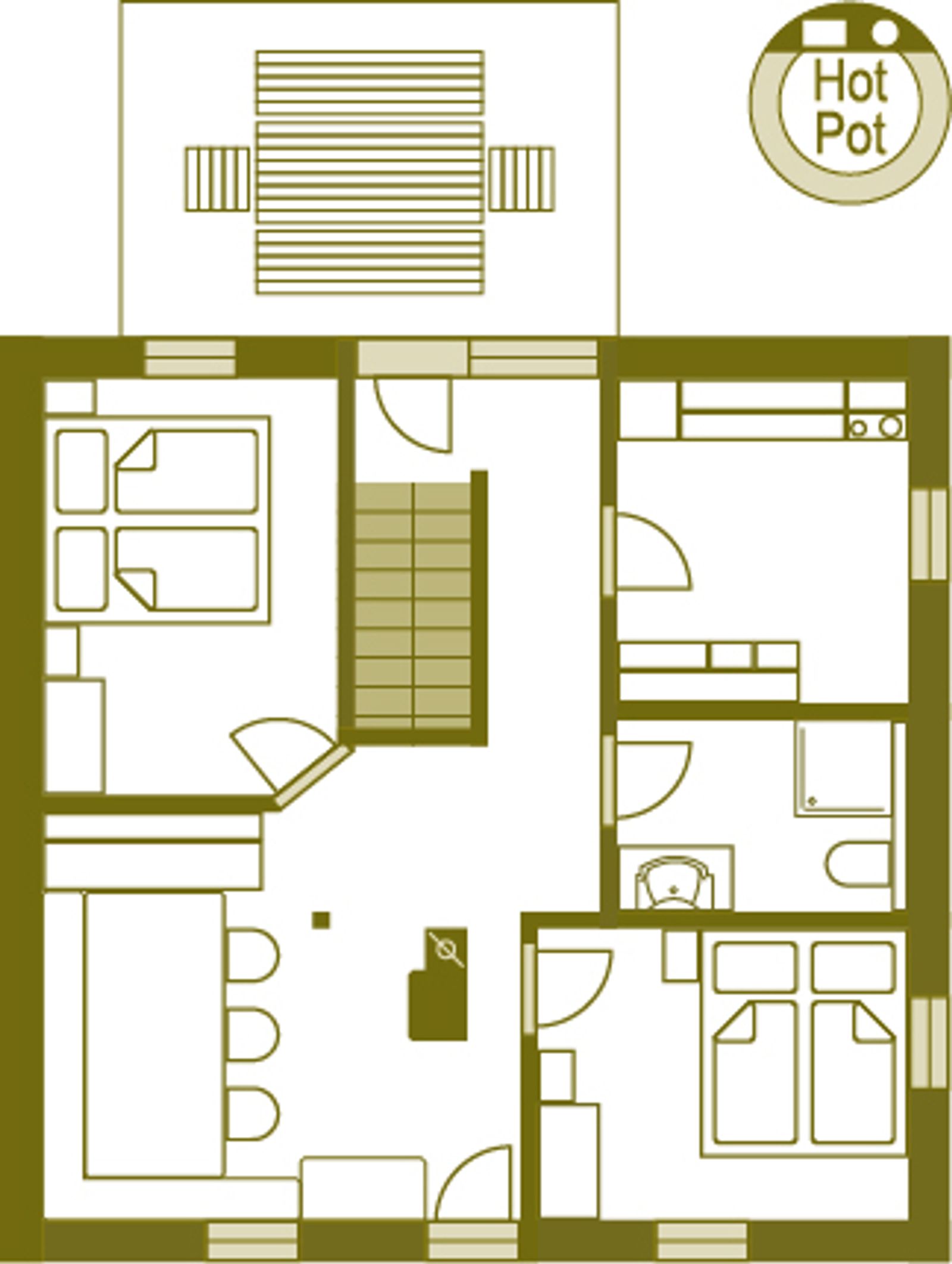 - 2 bedrooms with double beds on the upper floor