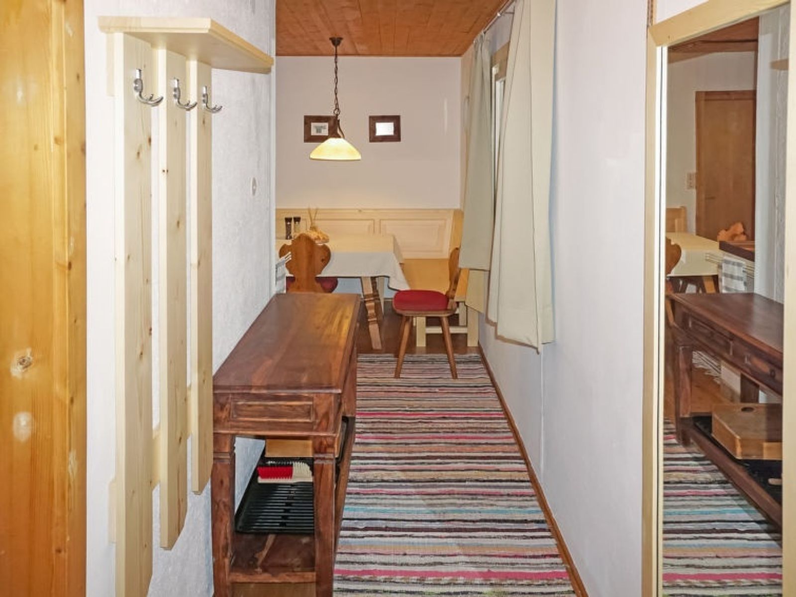Flirsch 12 km from St. Anton: Idyllic, located in the middle of the forest rustic timber house "Lieblingsplatz", detached, surrounded by trees. Above Flirsch am Arlberg, 1.8 km from the centre, in a secluded, quiet position. Private: natural state property. Patio, terrace. Storeroom available. In Winter: please take snow chains. 1 km steep footpath to the house. Parking (for 2 cars). Supermarket 1.8 km, restaurant 1.8 km, bus stop "Dorfplatz" 1.8 km, railway station "St. Anton" 14 km, outdoor swimming pool 14 km, indoor swimming pool 9 km. Walking paths from the house 10 m, skisport facilities 13 km, ski bus stop 1.8 km, ski school 13 km, cross country ski track 2.5 km. Well-known ski regions can easily be reached: St. Anton am Arlberg 13 km, Ischgl 33 km. Please note: car recommended. Cabs cannot stop right in front of the house. Ski bus (free of charge). Free ski bus service to the ski region St. Anton. Please note: good shoes required, 1km steep path within walking distance to the house, ski depot in St. Anton included!