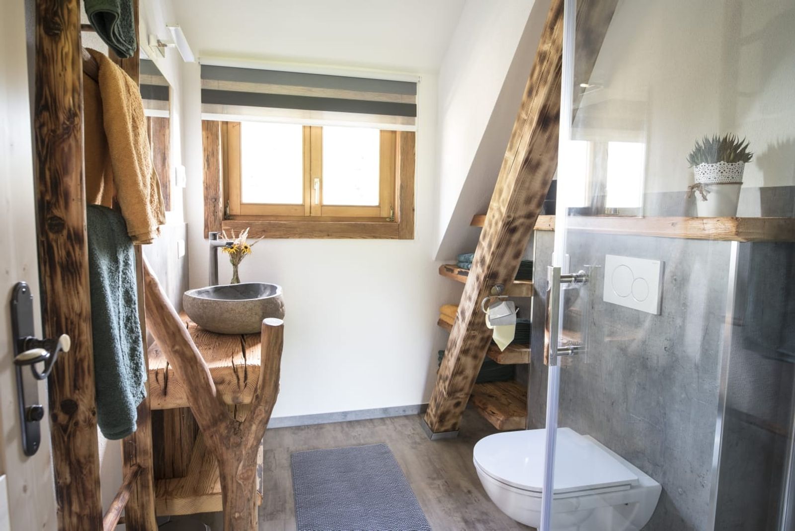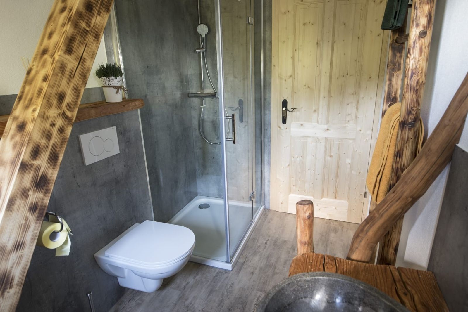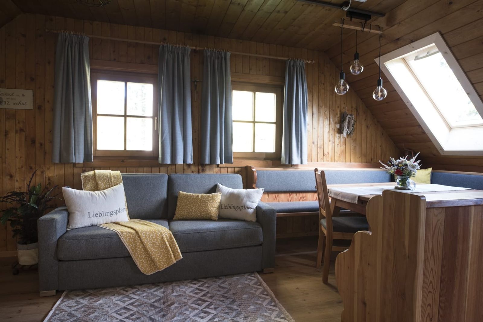 - Living space of 50m² for up to 4 people (two additional people can be booked on request, sleeping space in the living room on the sofa)