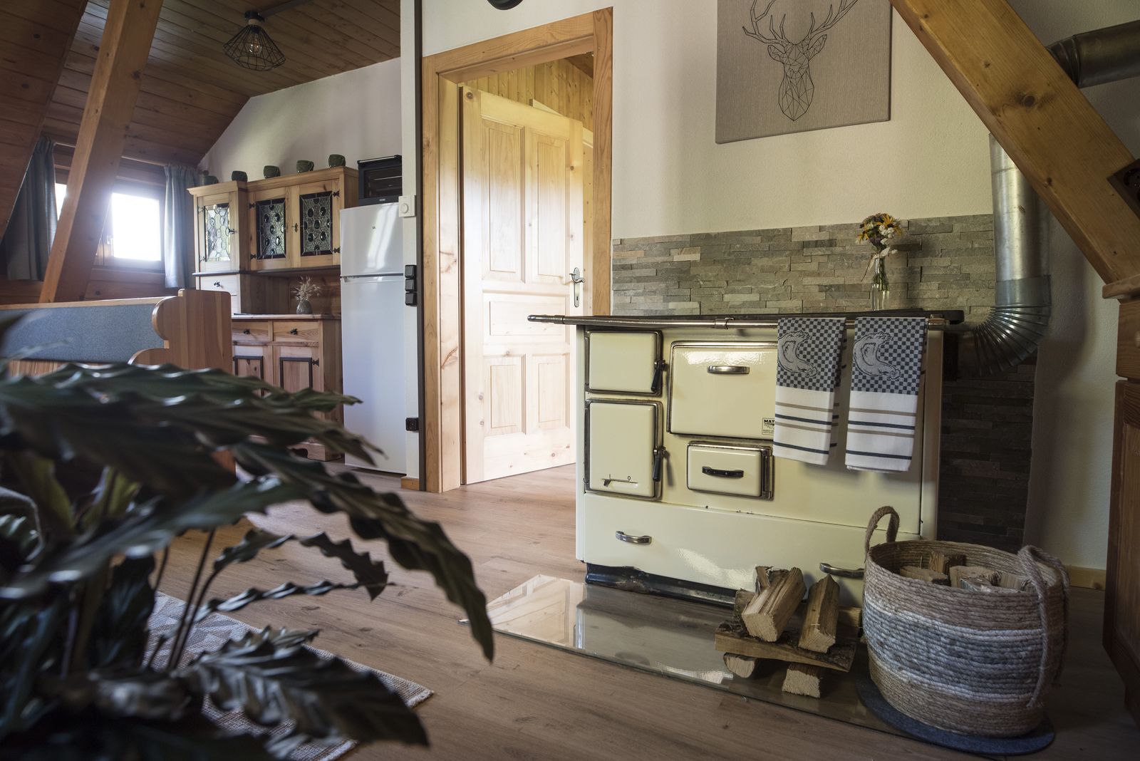 - Cozy kitchen-living room with wood-burning stove, electric stove, refrigerator with freezer, toaster, mini-oven, coffee machine (Tschibo Cafissimo), kettle