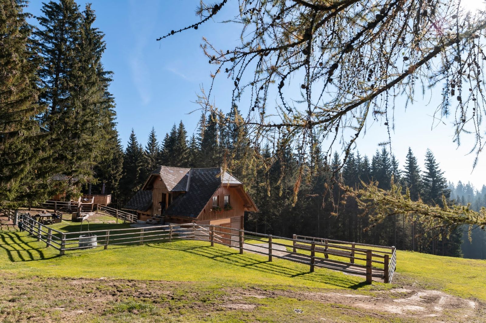 Welcome to the Kalchersimon Hütte! The alpine cabin in a sunny, secluded location and surrounded by lush meadows, forests and small streams. Kalchersimon Hütte located above the village of Preitenegg in beautiful Carinthia. Rustic on the outside and modern and cozy on the inside. A perfect holiday destination for those seeking relaxation and peace with a fantastic view. It is approx. 15 kilometers from the Kalchersimon Hütte to the town of Preitenegg. In Preitenegg you will find smaller shops and shopping opportunities. The cabin is accessible via a gravel road that is in good condition. Parking spaces are located directly in front of the house. Directly behind the cabin is the forest and your mushroom paradise.