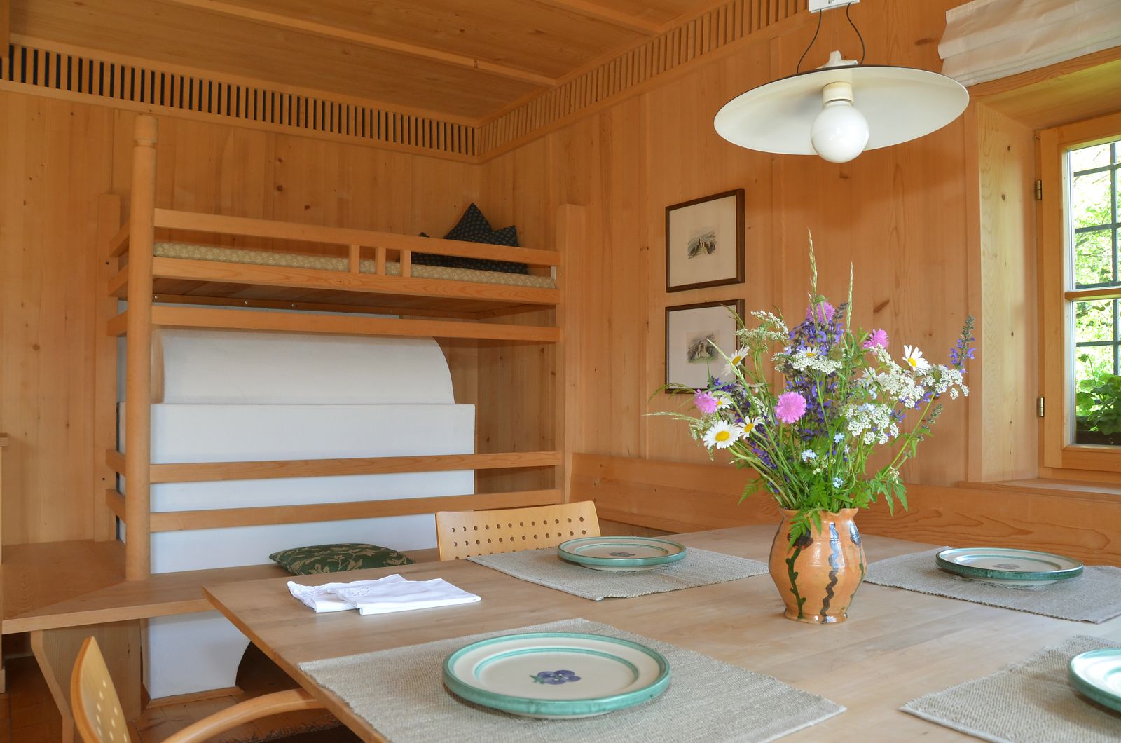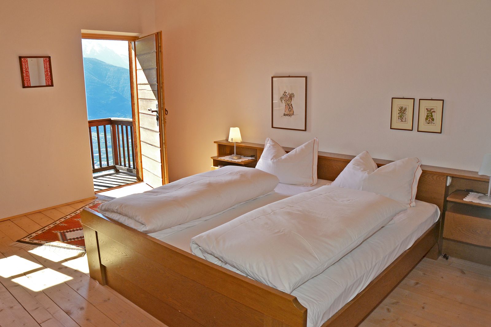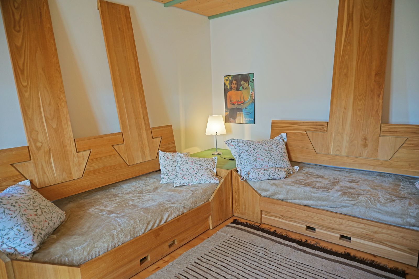 - 1 bedroom with 2 separate single beds made of solid wood on the upper floor