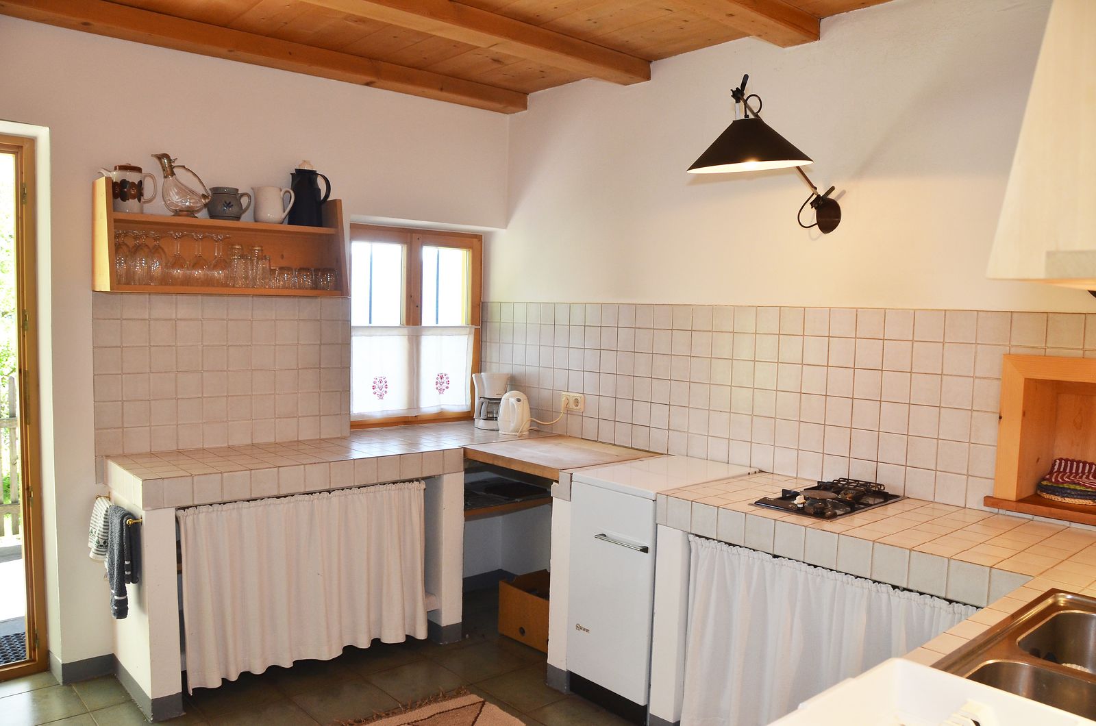 - Kitchen: electric stove, oven, gas stove, wood stove, refrigerator with freezer compartment, coffee machine, kettle and fondue dishes