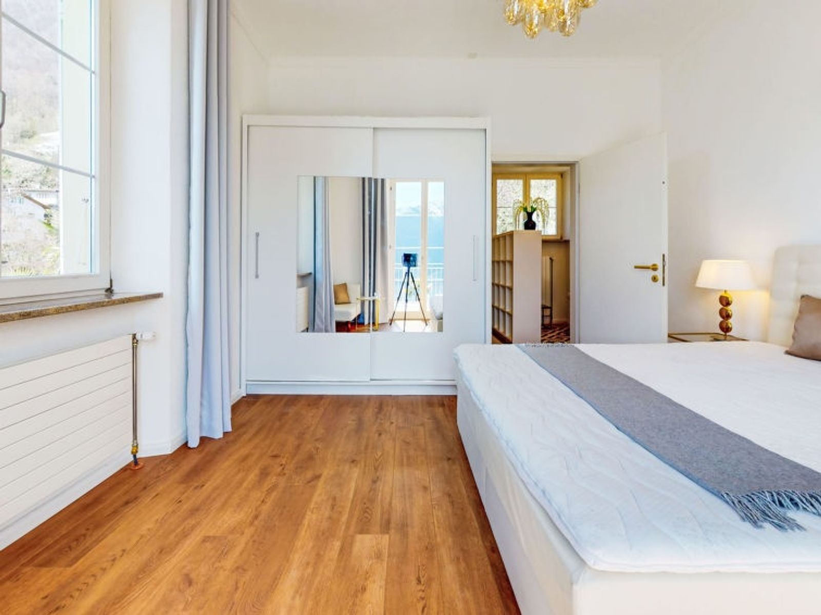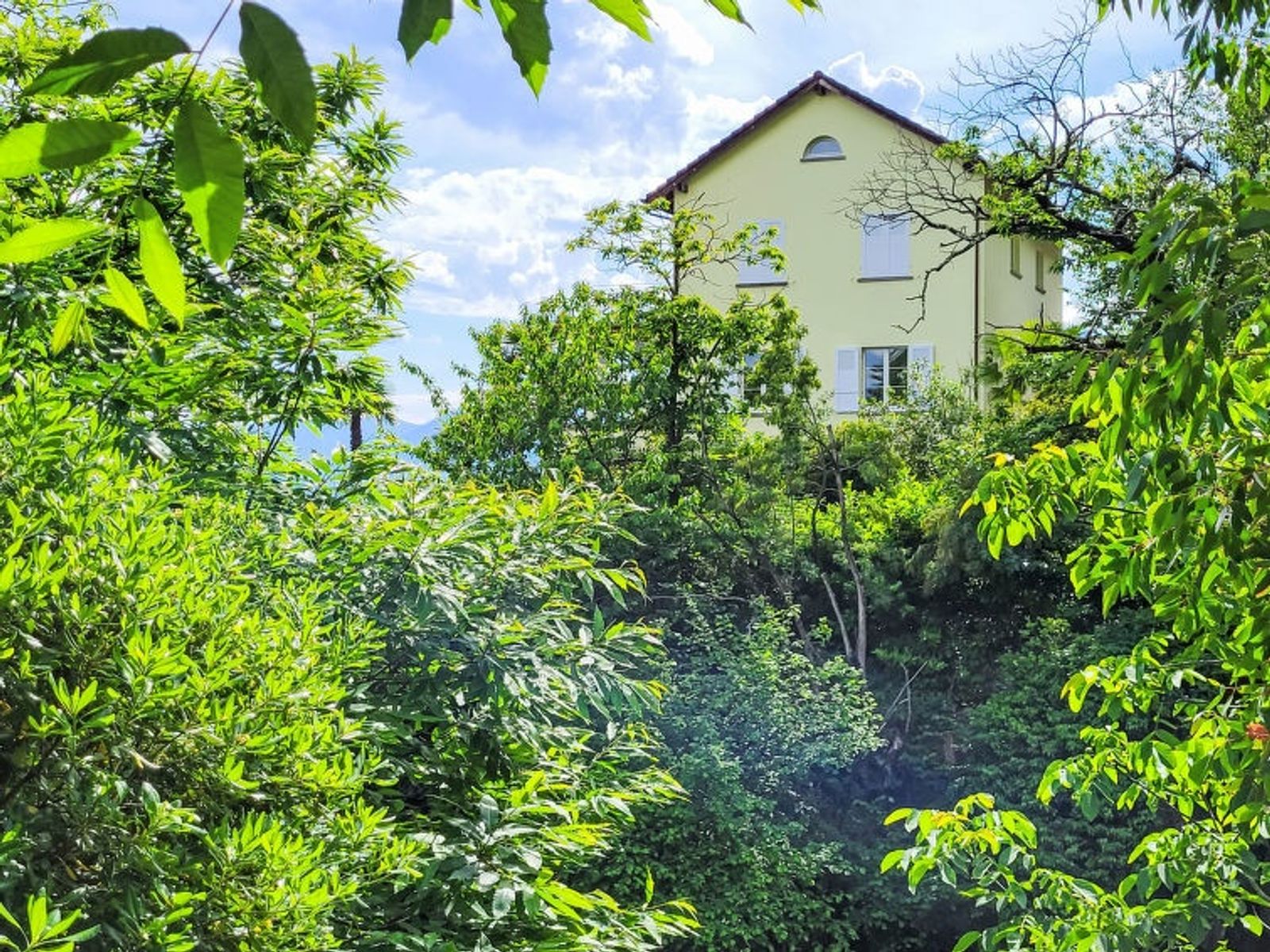 Minusio 6 km from Locarno Piazza Grande: Large, comfortable villa "Vernice Gialla", 377 m a.s.l., 3 storeys, detached from the 19th century, renovated in 2020, surrounded by trees and meadows. On the outskirts, 3 km from the centre of Minusio, in a sunny, elevated position on a slope, excellent location: right in the centre but still quiet, 3.5 km from the lake, in the countryside, south-west facing position. Private: natural state property 2'800 m2, terraced garden wildlife garden and trees, swimming pool angular (3 x 6 m, seasonal availability: 15.May. - 20.Oct.) with internal staircase. Shower/WC in the pool area, patio, arbour, terrace, garden furniture, barbecue, pool maintenance by the owner/gardener. In the house: central heating system, washing machine, tumble dryer. Linen change (suppl. charge extra). Towel change (suppl. charge extra). Room cleaning on request (extra). Motor access to the house. Parking (for 3 cars) at the house. E-charging station. Shop 3 km, grocery 3 km, supermarket 3 km, shopping centre 3 km, restaurant 800 m, bus stop "Linie 312" 100 m, railway station "Locarno SBB-CFF" 4 km, thermal baths "Termali Salini SPA Locarno" 5.3 km, bathing lake "Lago Maggiore" 3.5 km, lake Lago Maggiore. Golf course (18 hole) 10 km, tennis 6.5 km, minigolf 4 km, walking paths from the house 10 m. Nearby attractions: Piazza Grande, Locarno, Ascona, Ronco s/Ascona, Brissago, Isole di Brissago, Falconeria Locarno, Adventure Parc, Gordola. Well-known ski regions can easily be reached: Bosco Gurin, Carì, Airolo, Nara, Campo Blenio. Well-known lakes can easily be reached: Lago Maggiore, Lago di Lugano, Lago di Como, Lago D'Orta IT. Hiking paths: Cardada, Monti di Ronco, Val Resa, Valle Verzasca, Vallemaggia, Monte Tamaro & Splash Spa. Please note: no lift. Suitable for families, suitable for seniors baby equipment on request (extra). The owner does not accept any youth groups. Animals in the neighbourhood. Neighbourhood highly sensitive to noise. Quietness and good behaviour expected. ,The Old Lady, as she is affectionately called, was restored in 2020 and since then the villa and the outdoor area have been lovingly optimized during the winter months. The villa has a beautiful garden with a granite-framed pool with a beautiful lake view, many terraces and lush plants. The many sunny spots invite you to linger, the breathtaking view of Lake Maggiore completes this holiday feeling.