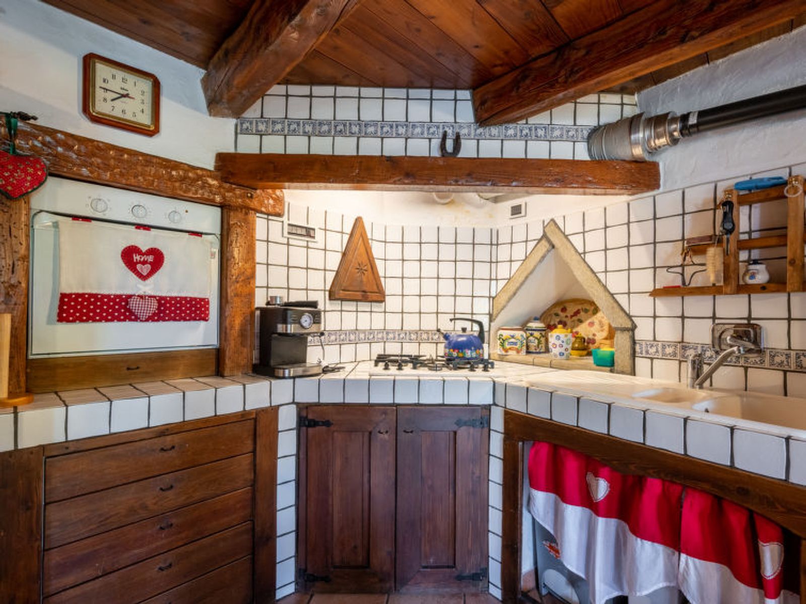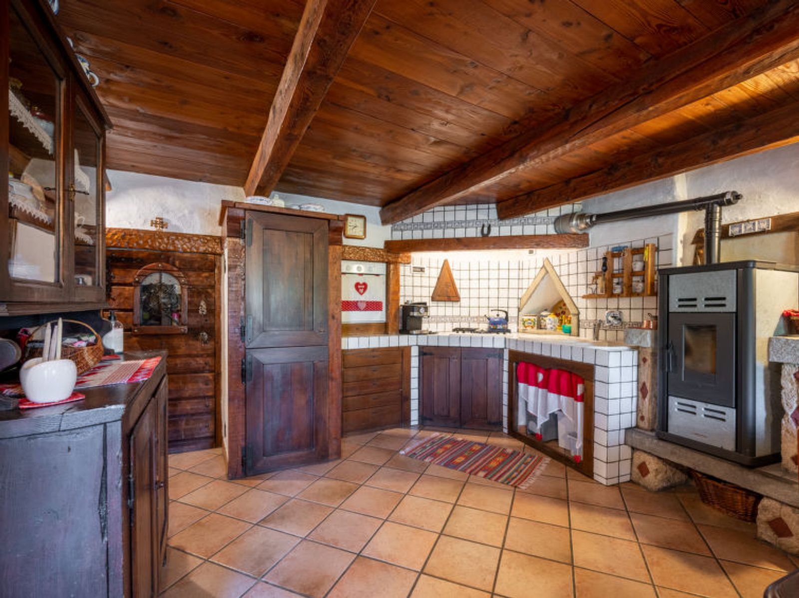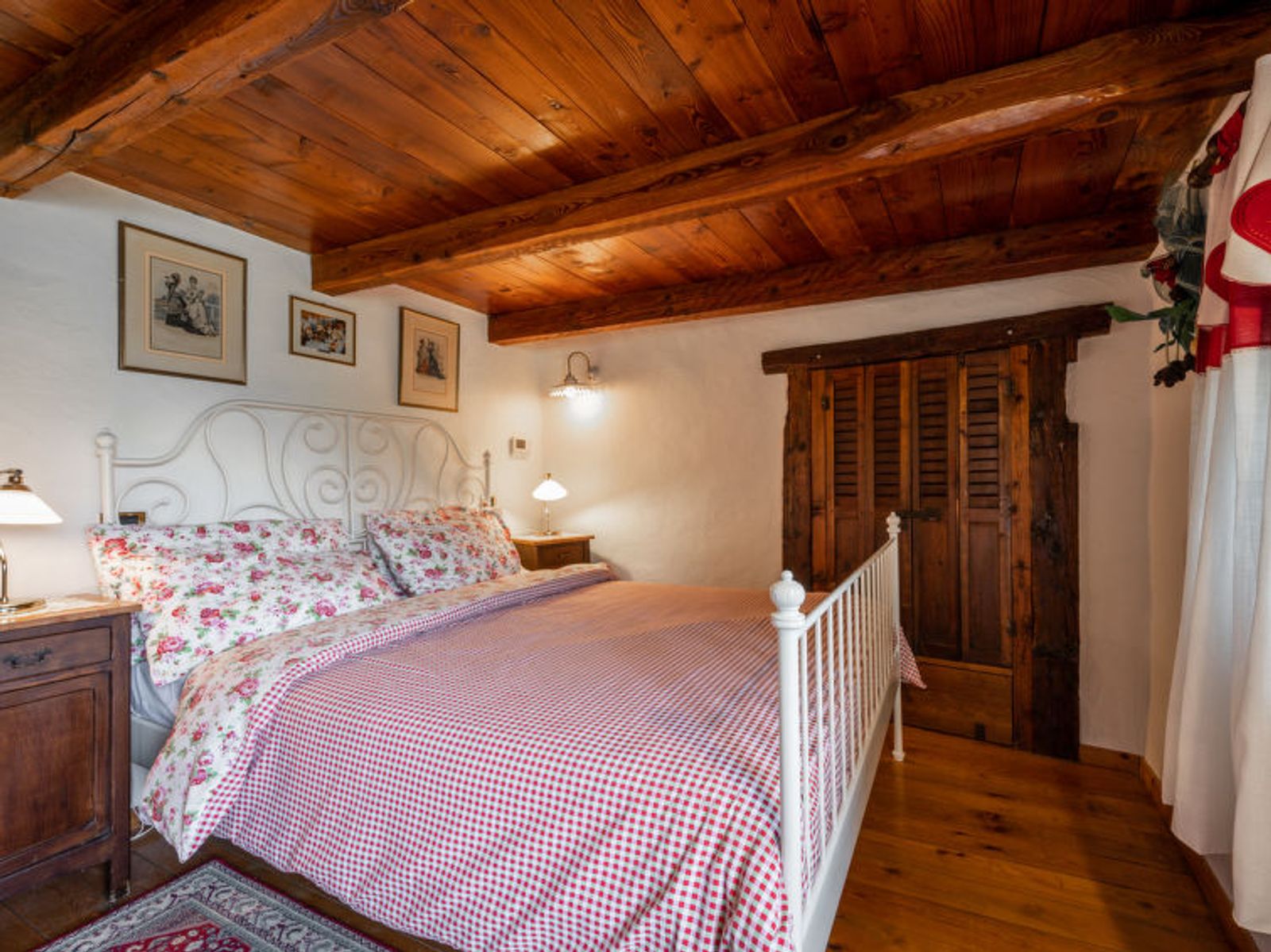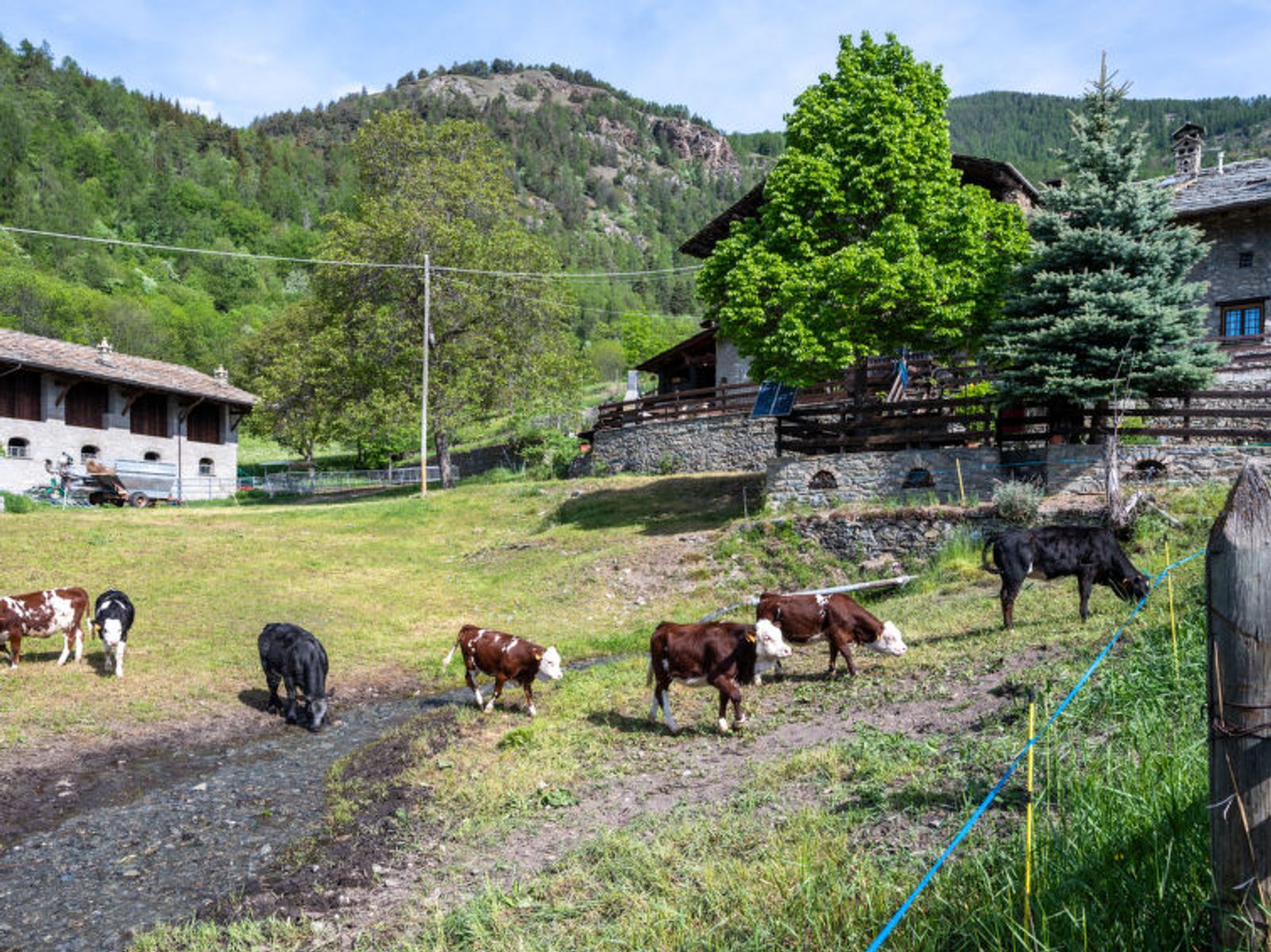 Rustic, historical terraced house "Maison Meynet", 1'200 m a.s.l., 3 storeys, semi-detached. In the hamlet Ville sur Sarre 8 km from the centre of Sarre, in a quiet position, south-east facing position. Private: garden (fenced) with lawn. Garden furniture, barbecue. In the house: storage room for bicycles, storage room for skis. In Winter: please take snow chains. Parking, public parking on the road. Supermarket 8 km, restaurant 8 km, bar 8 km, bus stop "Sarre" 8 km, thermal baths "Pre'-Saint-Didier" 36 km. Nearby attractions: Courmayeur Mont Blanc 36 km, Ovovia Aosta-Pila 12 km, pista di fondo Saint Nicholas 13 km. Please note: car recommended.