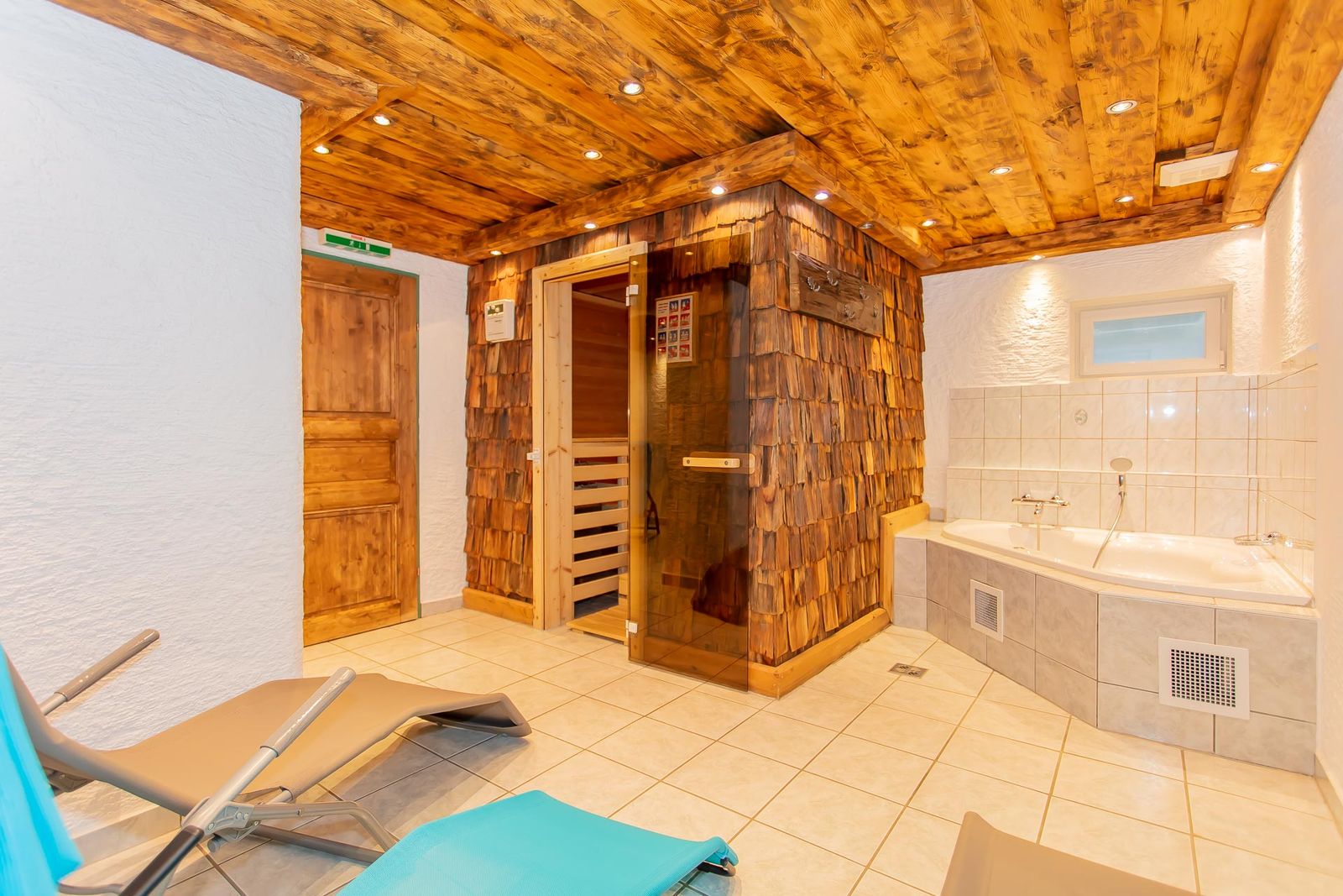 Sauna and bathtub available