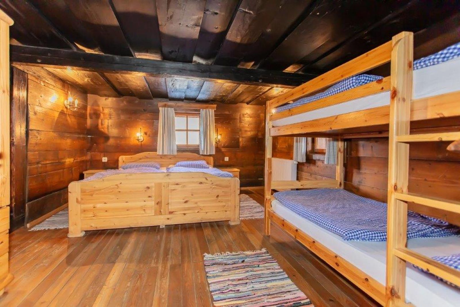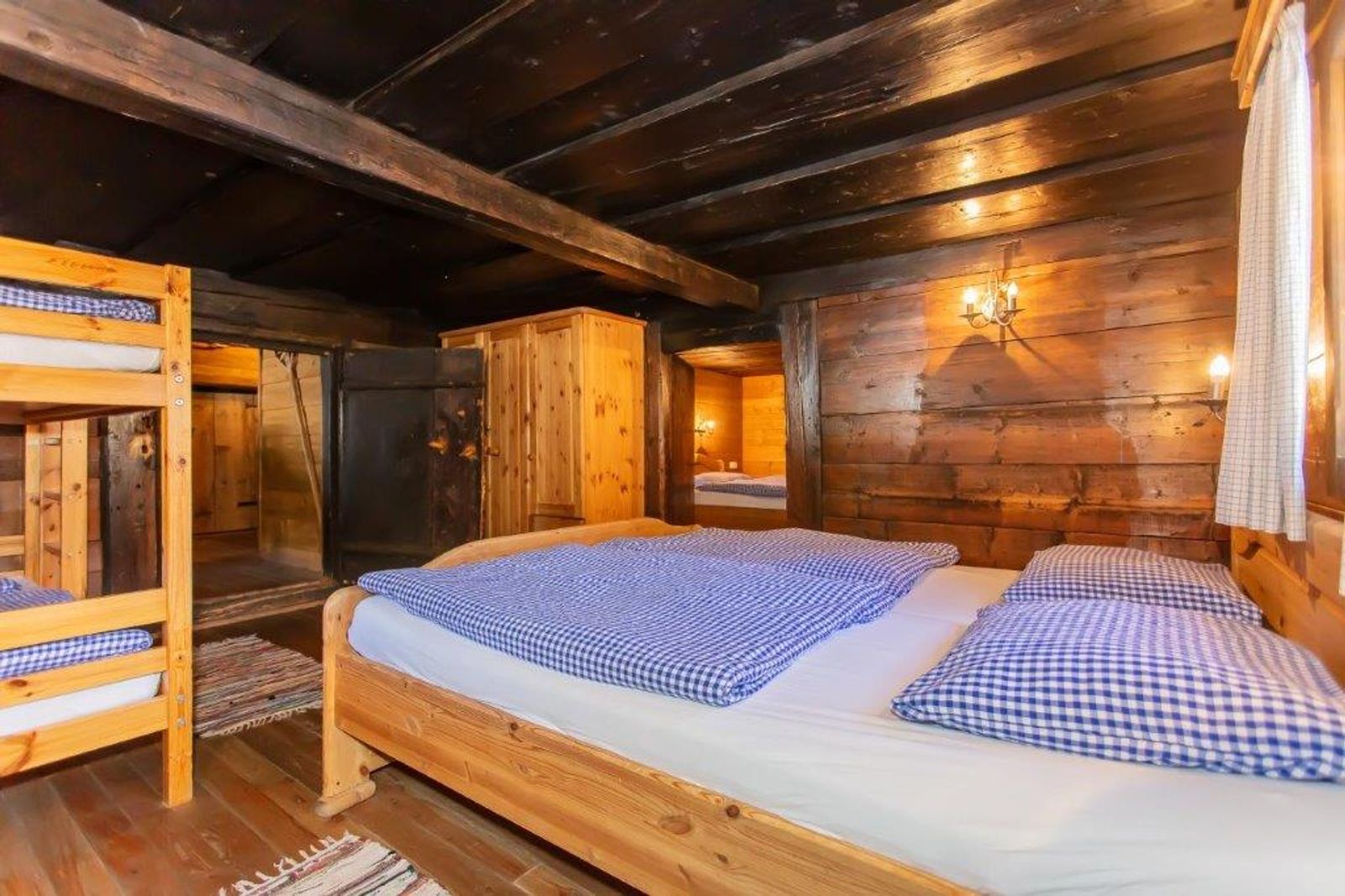 - 2x 4-bed rooms on the upper floor (1x double bed and pull-out couch for 2 people and 1x walk-through room with double bed and bunk bed) from the walk-through room you reach the bedroom with double bed and pull-out couch