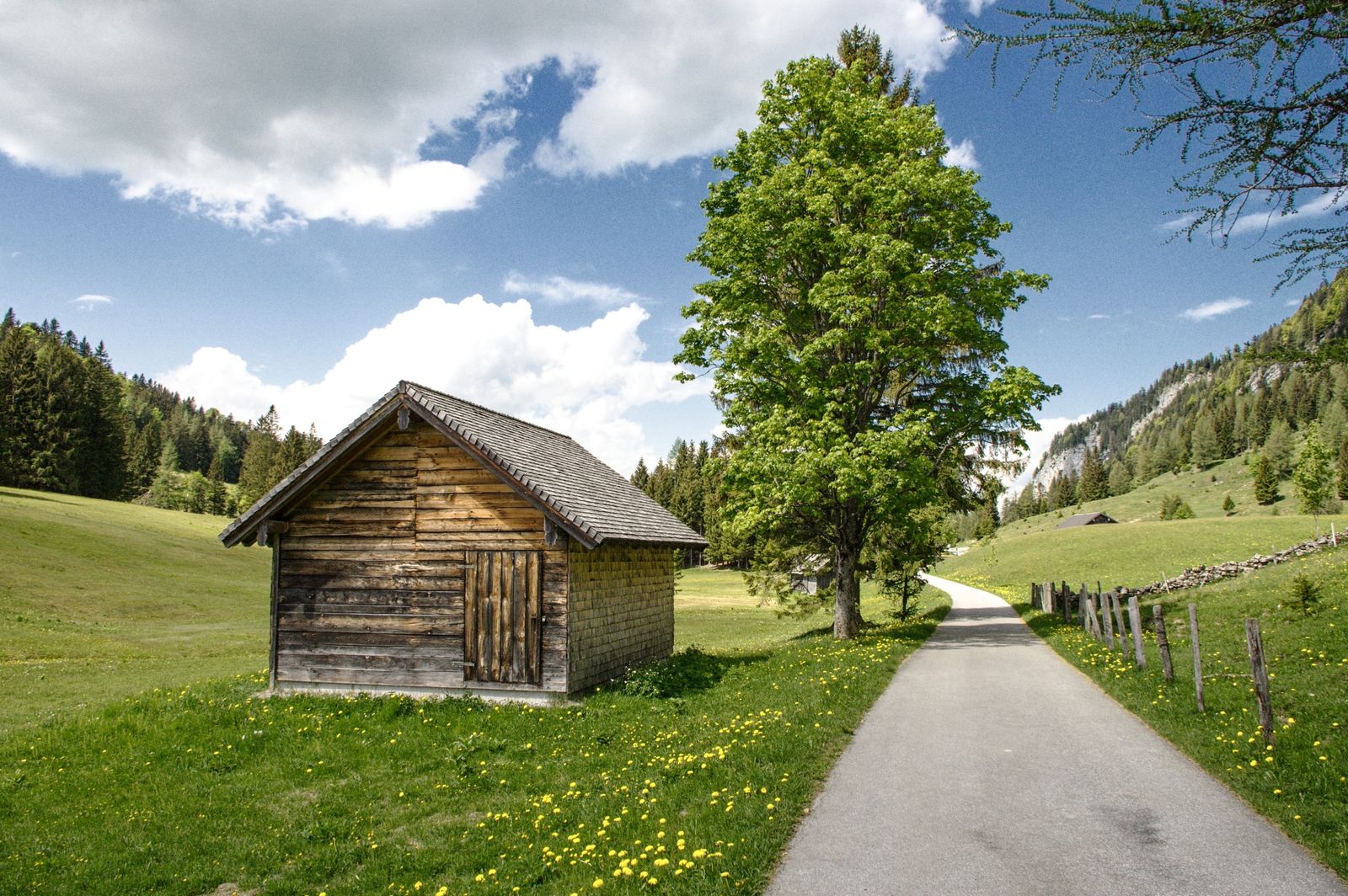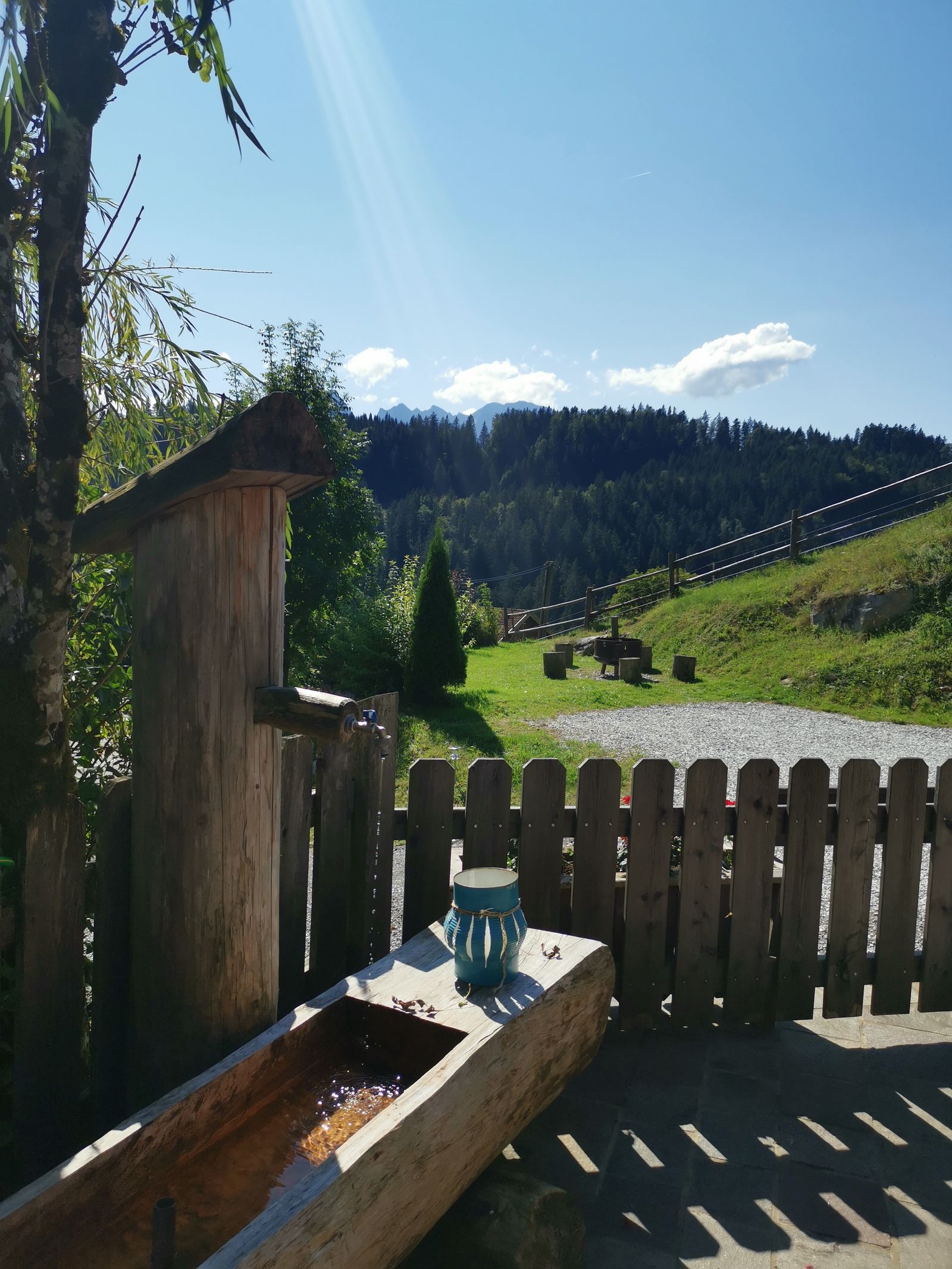 The beautifully and lovingly furnished Rengerberg Hütte located at an altitude of 700 meters above sea level. The spacious (fenced) terrace invites you to relax. In the terrace area there are various seating arrangements and deck chairs as well as a wooden fountain with fresh spring mountain water. A campfire and barbecue area is available for cozy evening. The nearest town is Bad Vigaun and can be reached in 6 kilometers. Bad Vigaun is a cozy place in the Salzburger Land with around 2,000 inhabitants. In Bad Vigaun guests will find smaller shops, restaurants and supermarkets. It is only 15 kilometers to the Mozart city of Salzburg. The cabin can be reached by car all year round. Snow chains are recommended in winter. Pets are welcome in the Rengerberg Hütte.