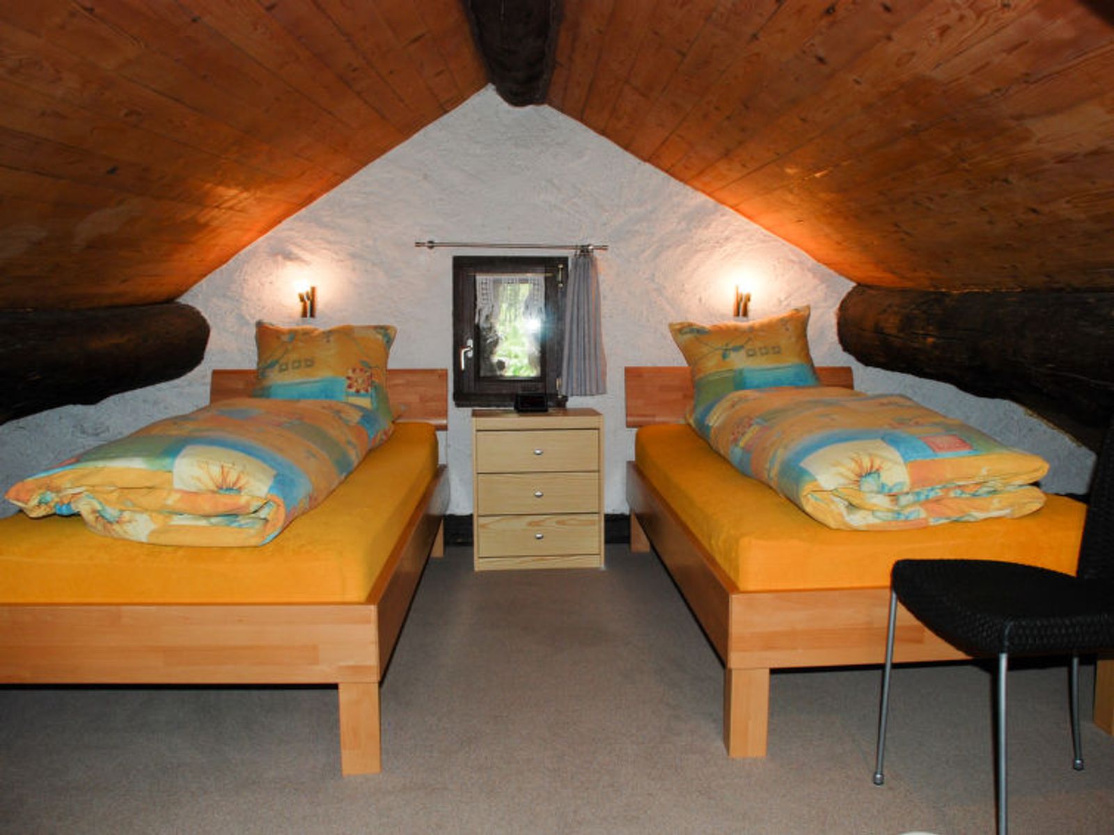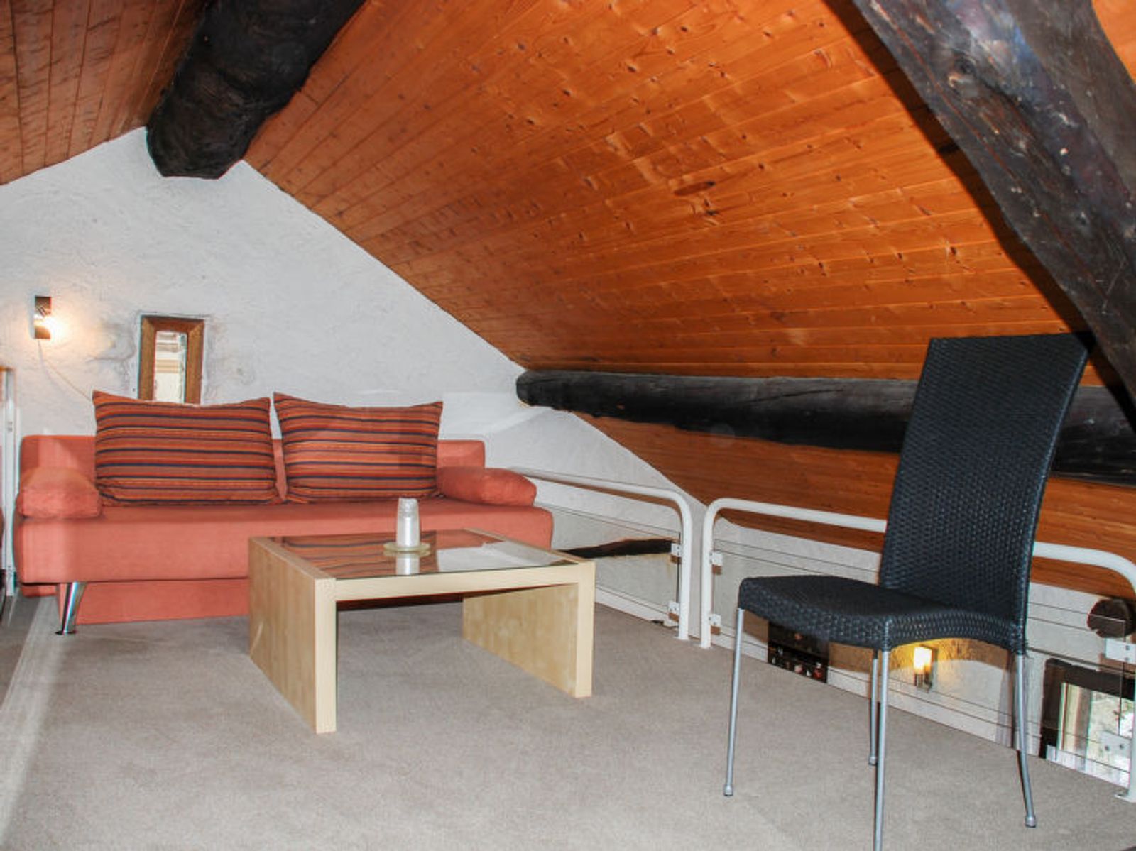 "Rustico Cristallo", 3-room house on 3 levels, south facing position. Bright, partly with sloping ceilings, comfortable and tasteful furnishings: large kitchen-/living room (oven, 4 ceramic glass hob hotplates, electric coffee machine, Capsules for coffee machine (Caffitaly) extra, raclette grill, fondue Set (cheese)) with open-hearth fireplace, dining table and radio. Exit to the patio. Shower/WC. Electric heating, wood heating. Upper floor: living room with satellite TV and flat screen. Exit to the garden, to the patio. 1 double bedroom with 1 double bed (2 x 80 cm, length 200 cm). Exit to the terrace. 2nd upper floor: (steep stair) open gallery with sloping ceilings, ceiling height 80 - 100 cm with 2 beds (90 cm, length 200 cm). Lounge. Terrace partly roofed, south facing position, patio. Terrace furniture, barbecue (portable), deck chairs (2), sitting area. Beautiful panoramic view of the mountains, the countryside and the resort. Facilities: children's high chair, baby cot for up to 2 year olds (extra), hair dryer, logs (extra). Internet (WiFi). Please note: not suitable for children under 6 years. Non-smoking house. Maximum 1 small pet/ dog allowed. Fire extinguisher. Attention- parents must strictly supervise the children because of the stairs without ramp. Any responsibility is strictly rejected. Instead of an enclosed bedroom, some sleeping areas are located in an open-plan area (gallery, alcove, etc.). NL-00001822