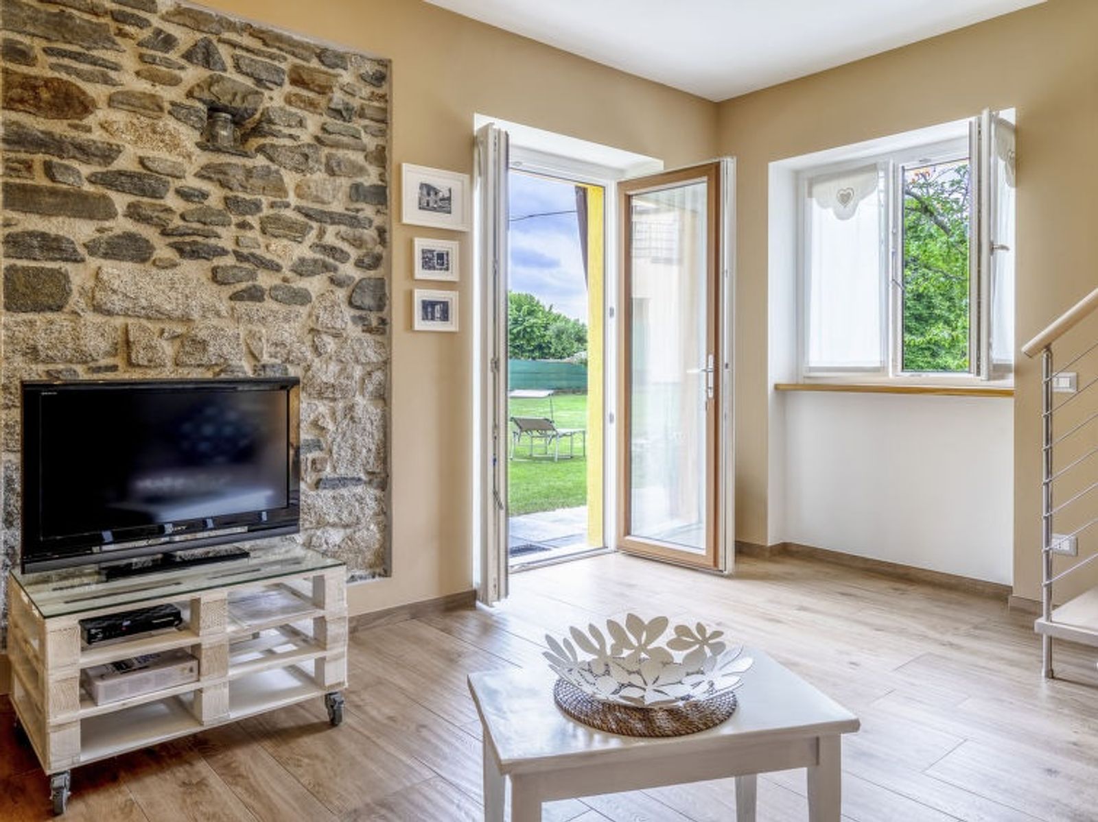 Pettenasco 3 km from Orta San Giulio: Single-family house, renovated in 2017. In the hamlet Pettenasco, on the outskirts, 600 m from the centre of Pettenasco, 8.3 km from the centre of Omegna, 100 m from the lake, direct access to the beach. For shared use: property 6'000 m2 (fenced), garden, meadow, orchard, parking (limited number of spaces) on the premises. Supermarket 100 m, bus stop 3.2 km, grass beach 100 m, indoor swimming pool 8.3 km. Please note: the owner lives on the same property. The owner has a dog.
