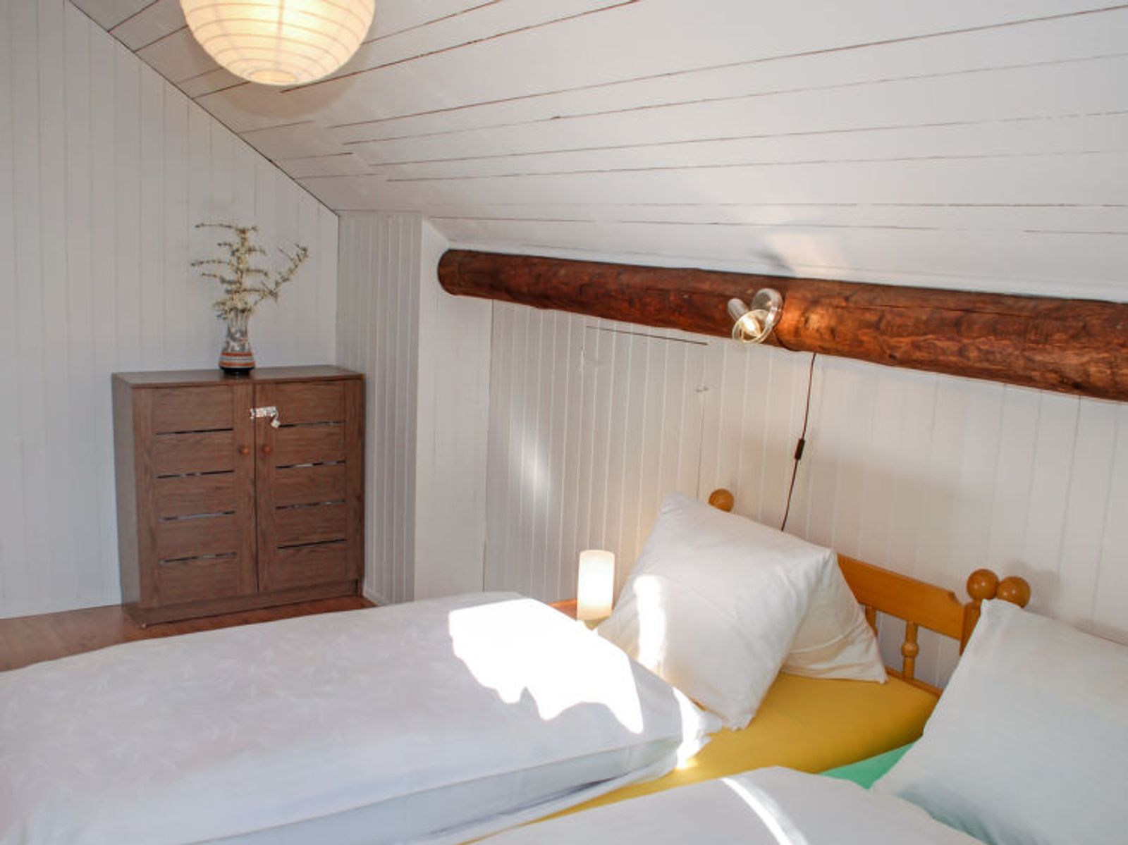"Marianne Plus", 3-room house 100 m2 on 2 levels, south facing position. Partly with sloping ceilings, partly renovated in 2017, comfortable and cosy furnishings: open living/dining room with 1 sofabed (140 cm, length 190 cm), open-hearth fireplace, satellite TV, flat screen and radio. Exit to the patio. Open kitchen (oven, dishwasher, 4 ceramic glass hob hotplates, electric coffee machine, raclette grill, fondue Set (cheese)). Exit to the terrace. Upper floor: (steep stair), 1 double bedroom with sloping ceilings with 2 beds (90 cm, length 200 cm). 1 room with sloping ceilings with 1 bed (90 cm, length 200 cm), 1 x 2 bunk beds (90 cm, length 200 cm). Shower/WC. Electric heating. Natural stone floors. Small patio 10 m2, partly roofed. Barbecue, sitting area. Partial view of the mountains and the countryside. Facilities: children's high chair, baby cot for up to 3 year olds (extra), hair dryer, logs (extra). Please note: non-smoking house. Maximum 3 pets/ dogs allowed. Idyllic setting in the middle of nature, for nature lovers and long walks with dogs. Very calm ! You just have to relax and enjoy. NL-00003835