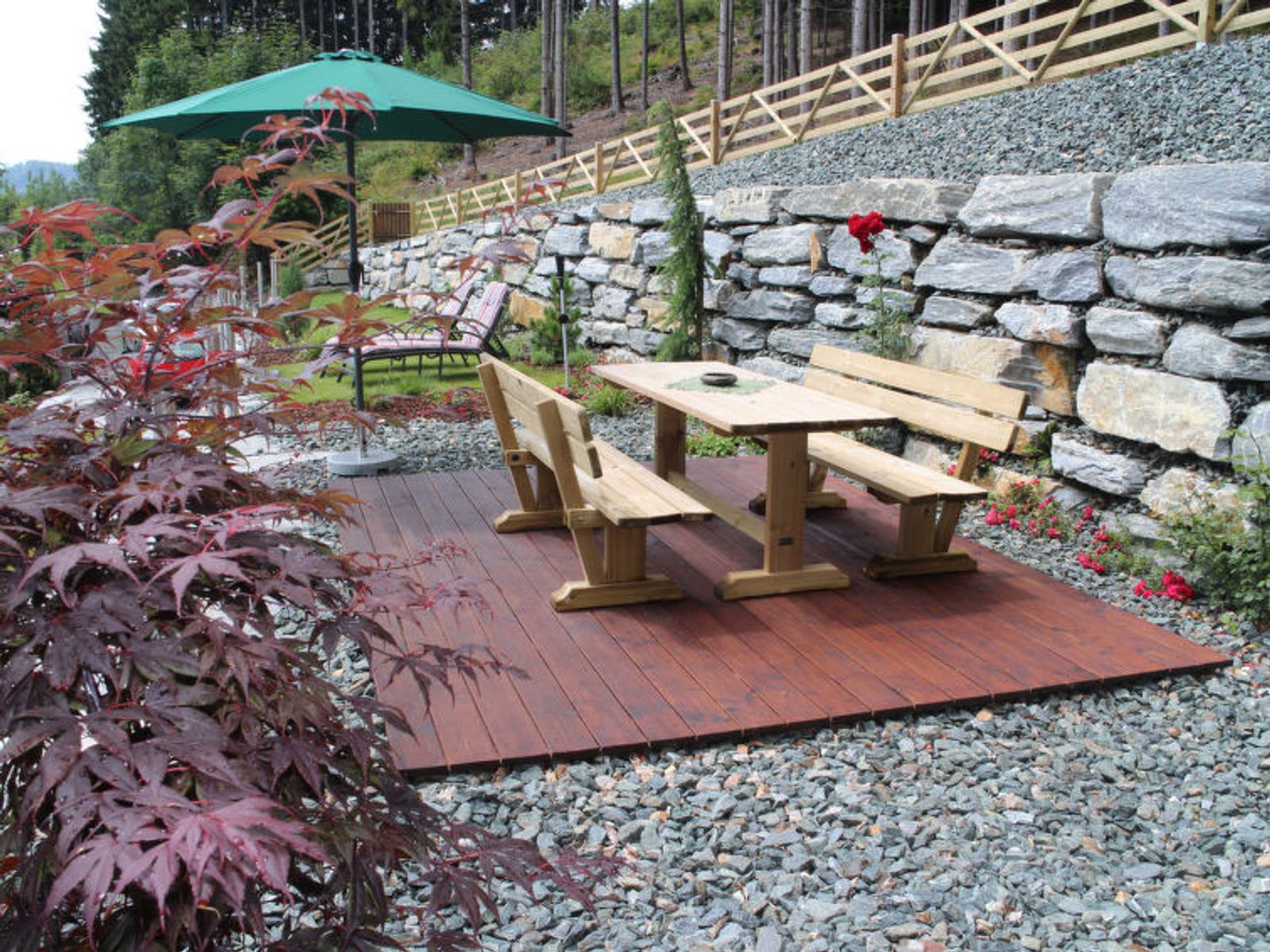 Timber house "Saurachberghütte", 1'000 m a.s.l.. Property composed of main house and outbuilding 7 km from the centre of Feldkirchen, 32 km from the centre of Klagenfurt, 33 km from the centre of Villach, 7 km from the lake. Private: terraced garden, 600 m2 with lawn, lawn for sunbathing, parking (for 3 cars) at the house. Shop 7 km, bus stop 6 km, railway station 15 km, lake Ossiacher 15 km.